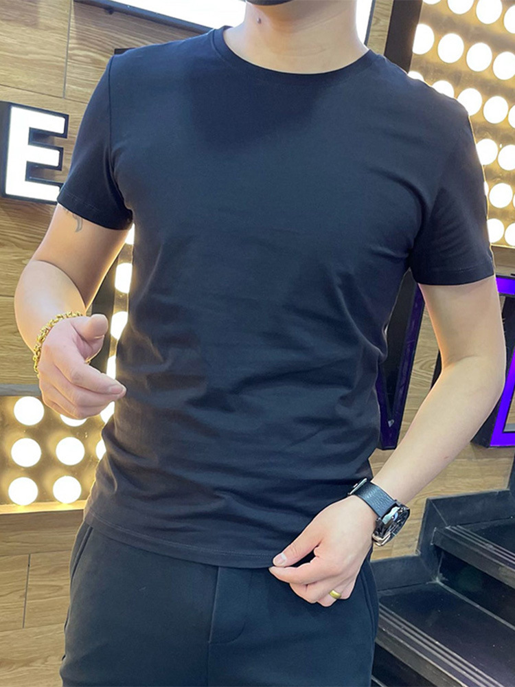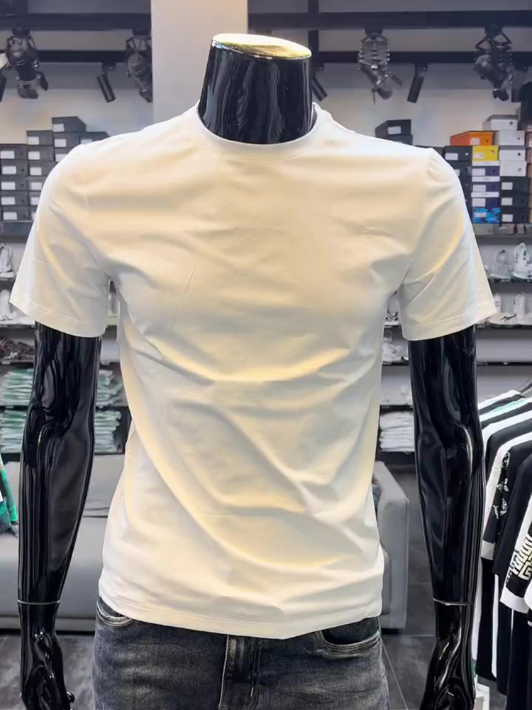 2025 남자 헤비 솔리드 컬러베이스 에디션 슬림 핏 스트레치 캐주얼 올 매치 라운드 넥베이스 셔츠 반팔 티셔츠스토어 가기