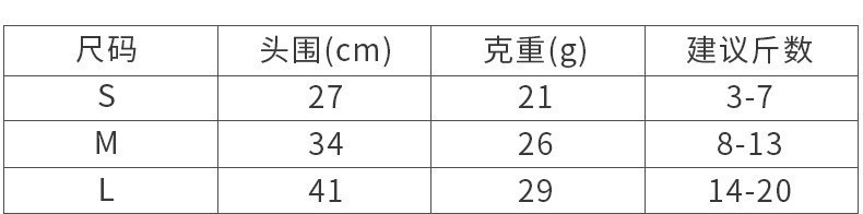 • S (머리둘레 27cm, 애완동물 1.5-3.5kg마리 정도에게 적합)