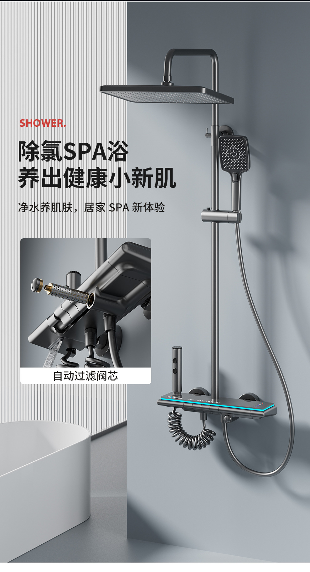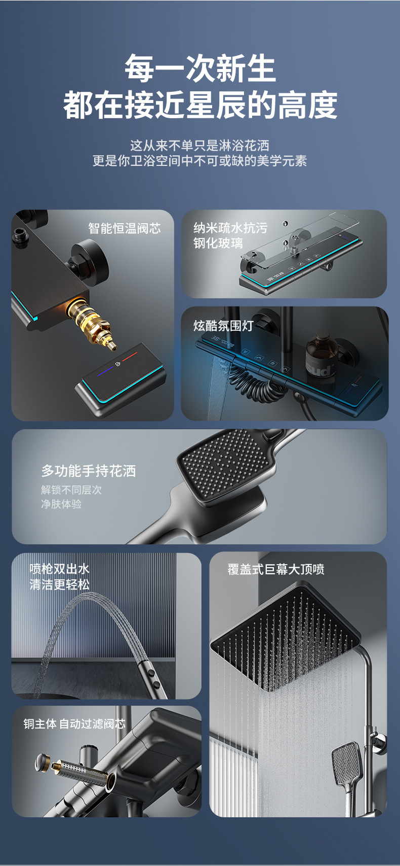 Jiumu JOMOO 총 회색 일정한 온도 샤워 세트 가정용 욕조 샤워 세트 모든 구리 가압 노즐