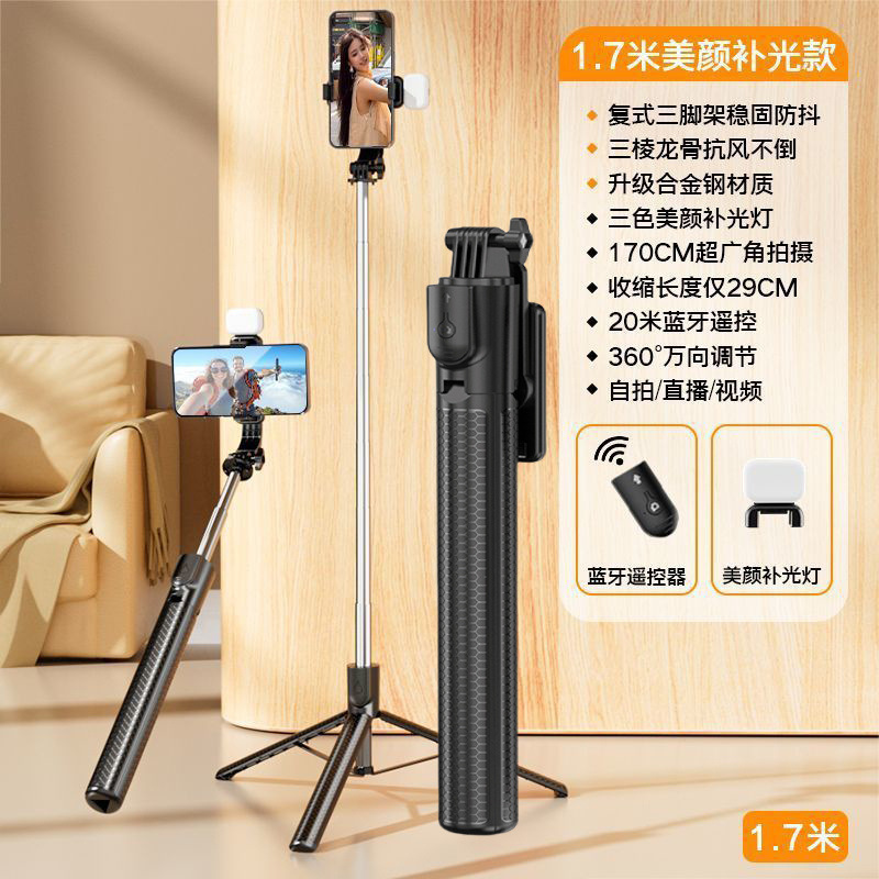 • 향기로운 가루 [특히 시원하고 편리함 | 안정적이고 흔들리지 않음] - 1.70m [수축 삼각대 | 블루투스 컨트롤러] 조명 없음 모델