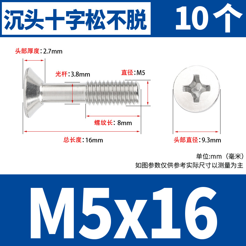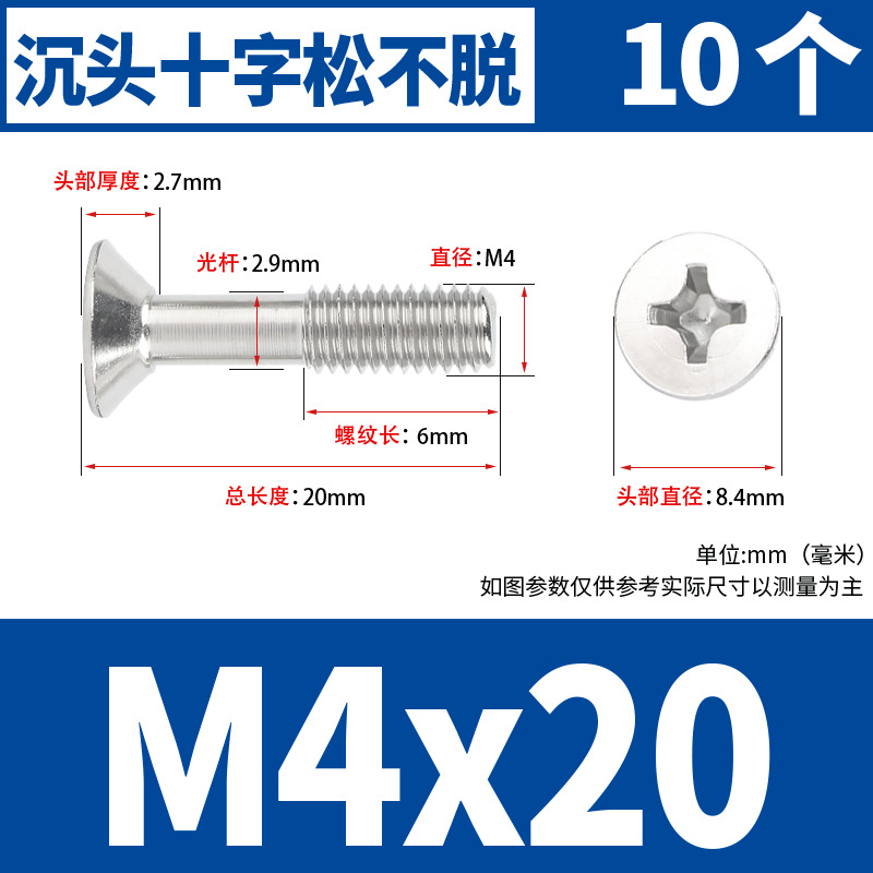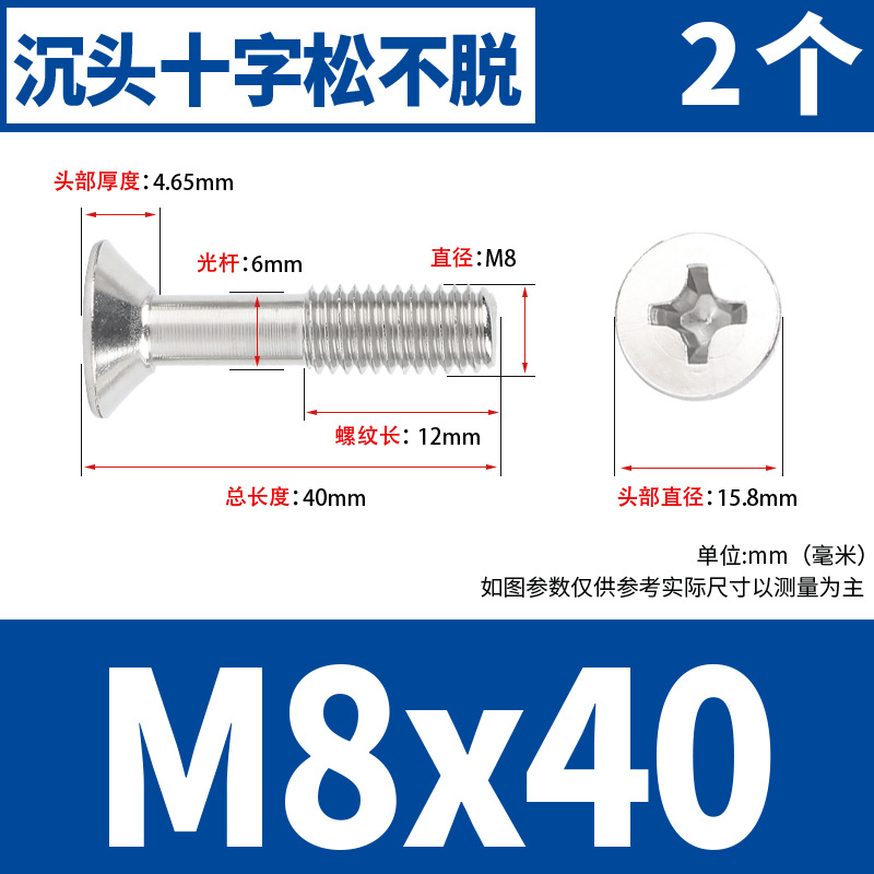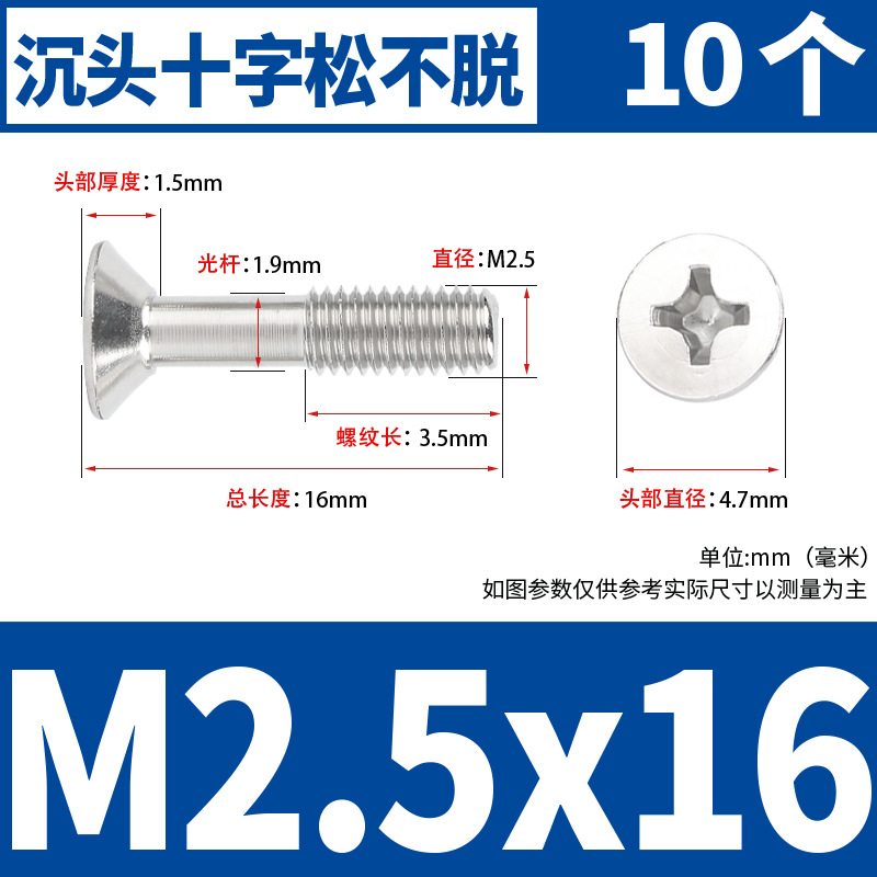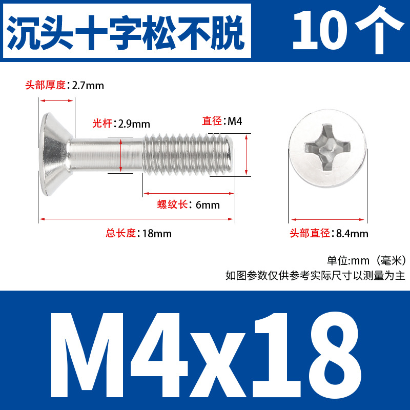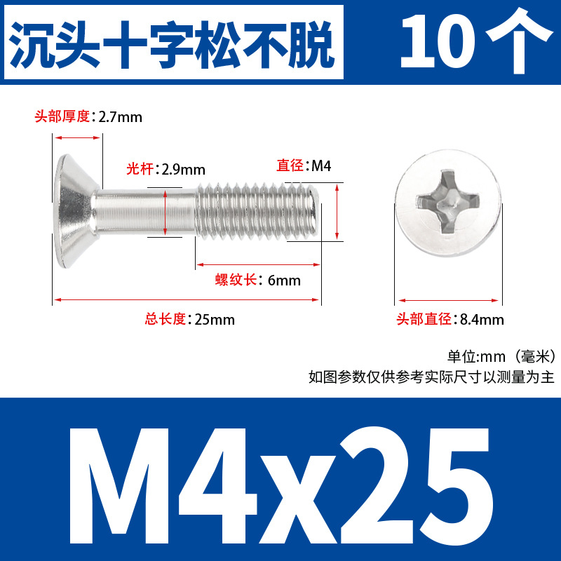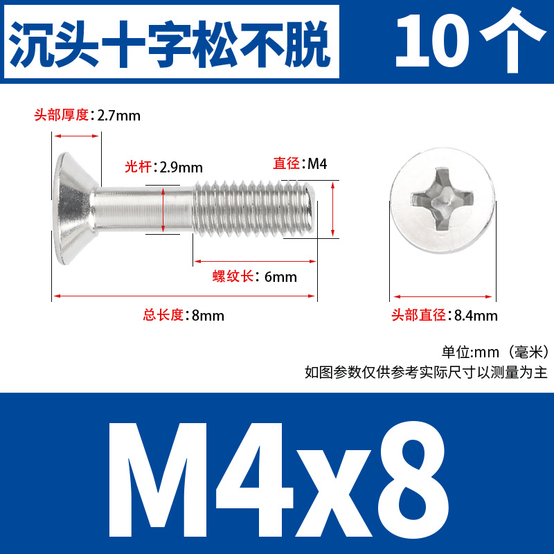 304 스테인레스 스틸 카운터 침몰 헤드 크로스 스크류 플랫 헤드가 나사 절반 치아에서 떨어지지 않습니다. M2.5M3M4M5M6M8스토어 가기