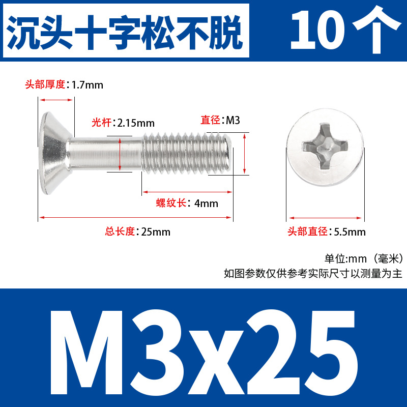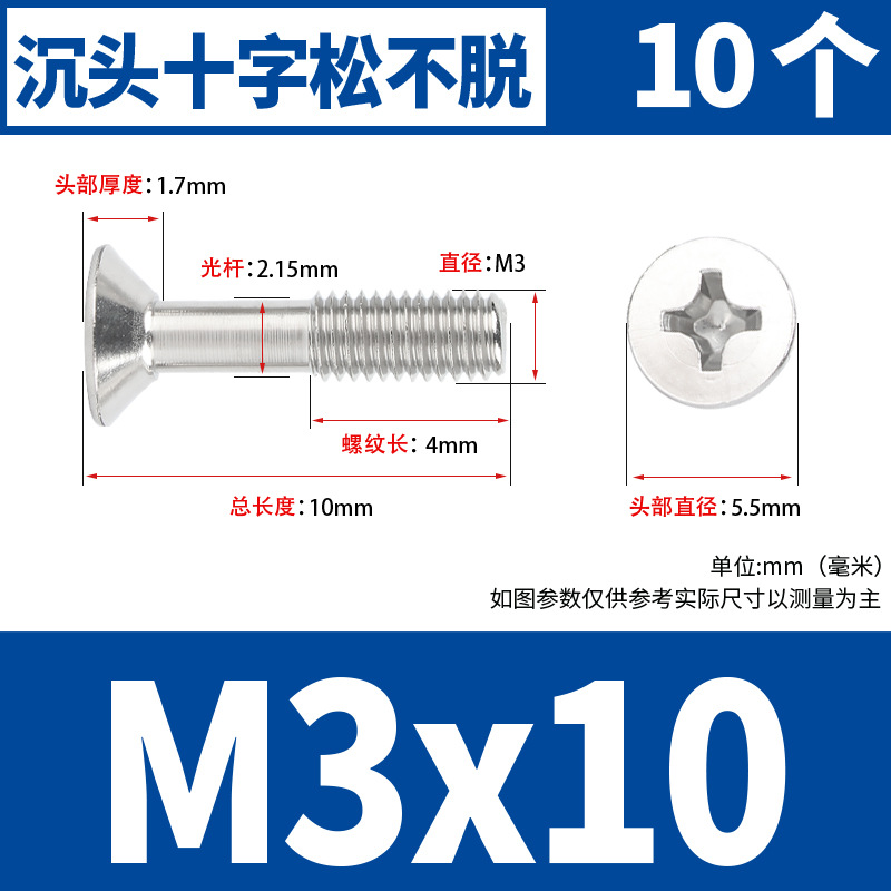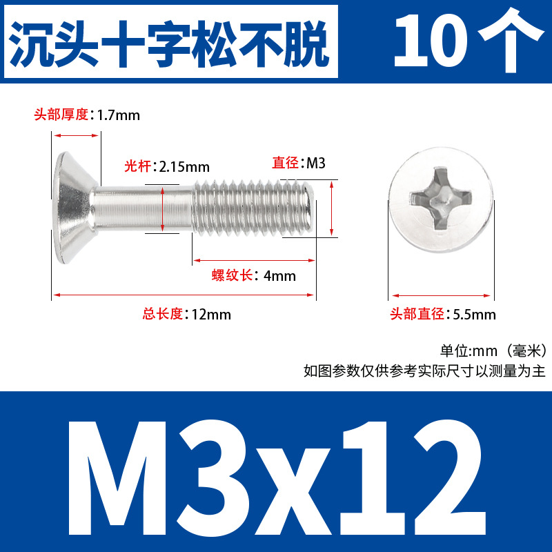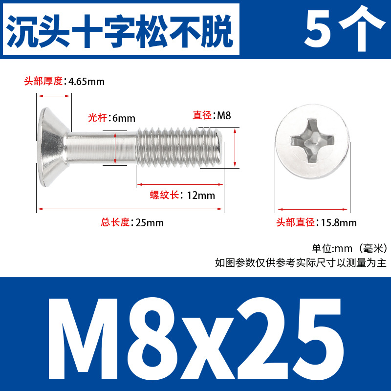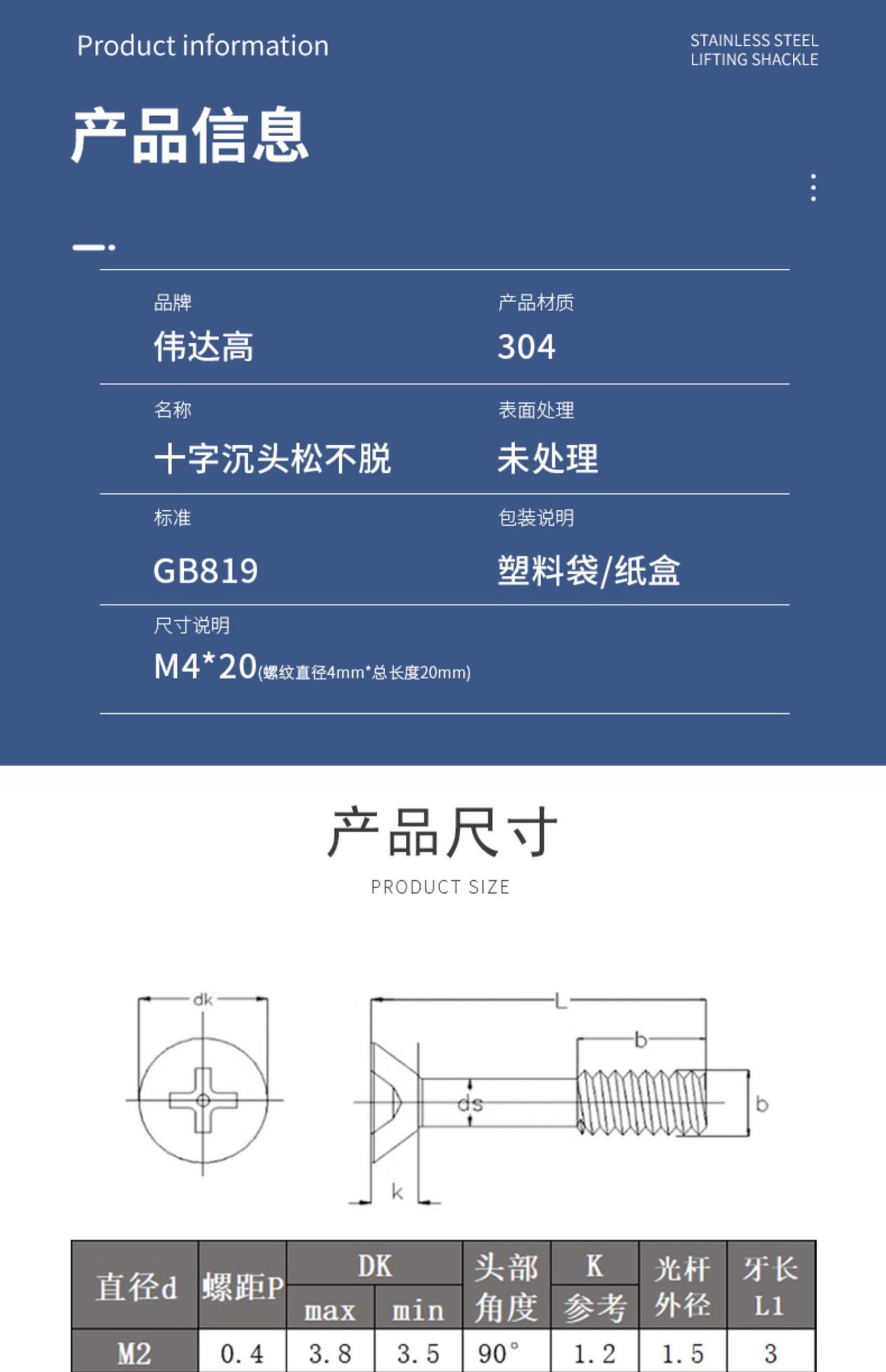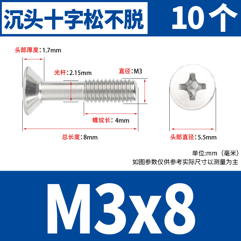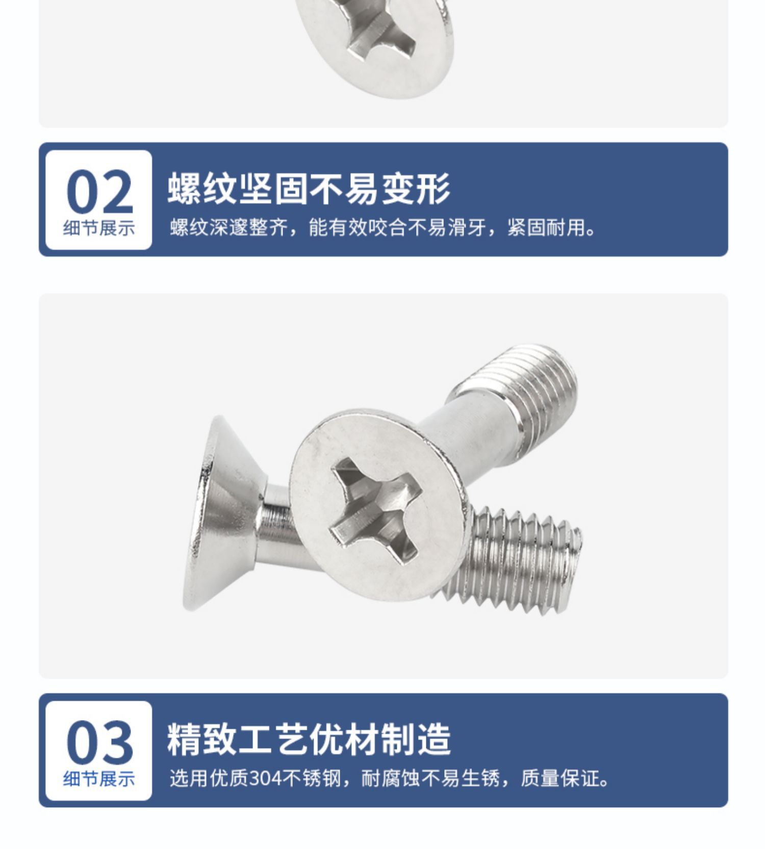 304 스테인레스 스틸 카운터 침몰 헤드 크로스 스크류 플랫 헤드가 나사 절반 치아에서 떨어지지 않습니다. M2.5M3M4M5M6M8스토어 가기