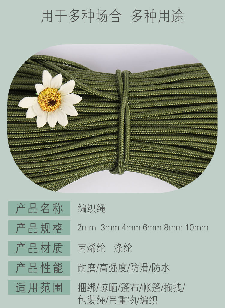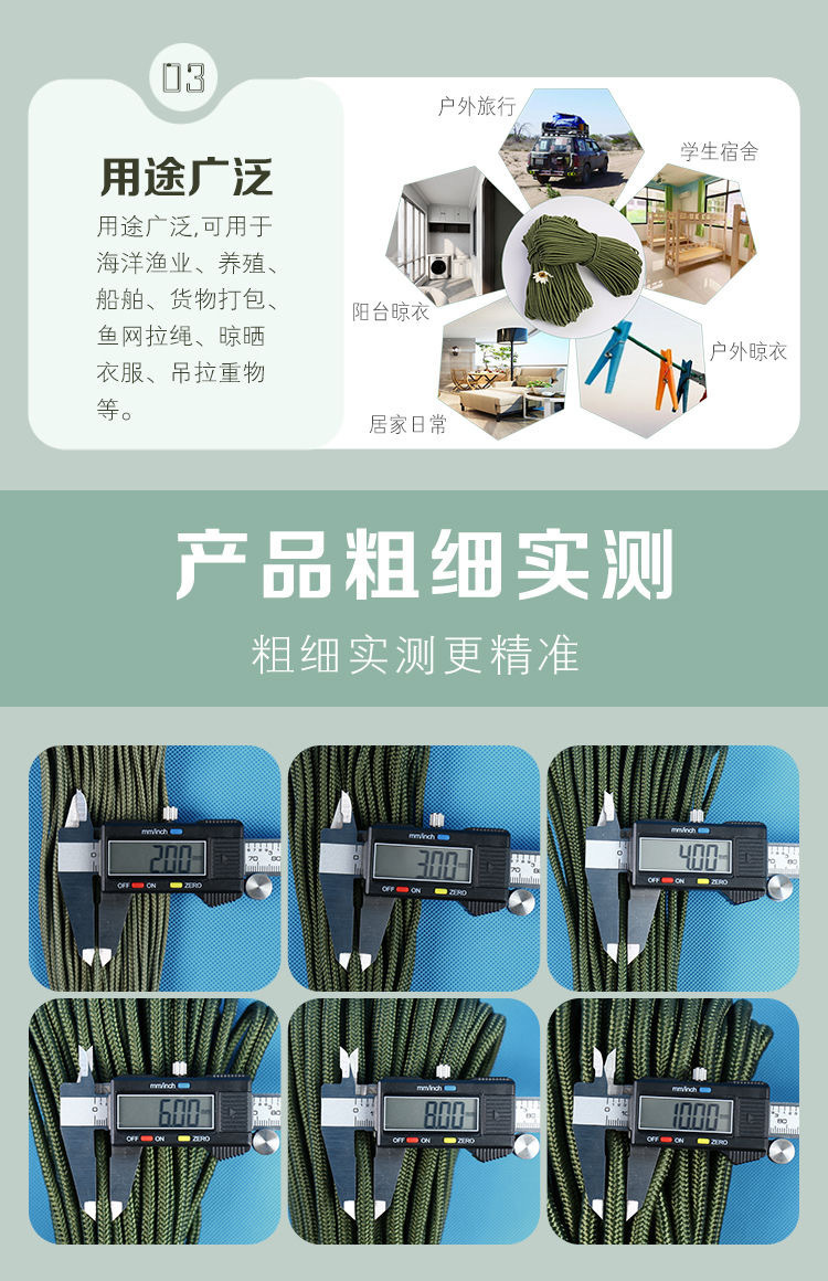카키 로프 내구성 내마모성 나일론 로프 바인딩 로프 꼰 로프 타포린 브레이크 광고 로프 클로스라인
