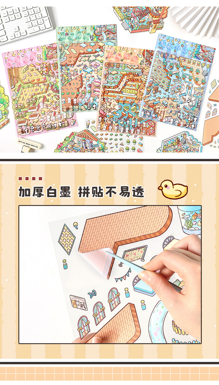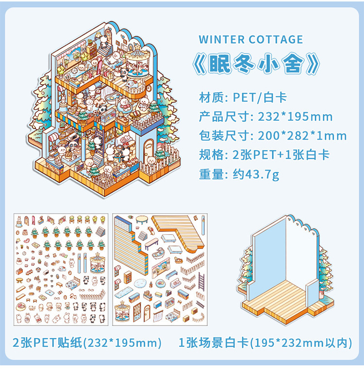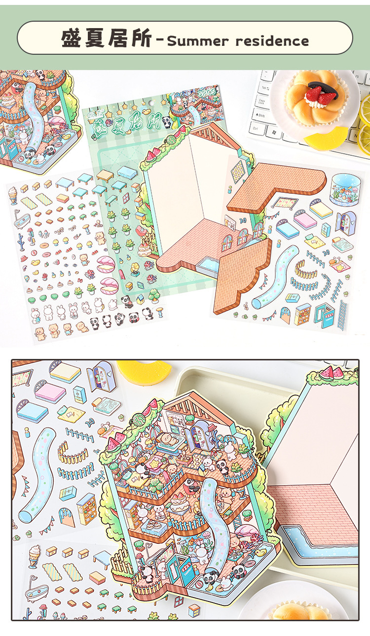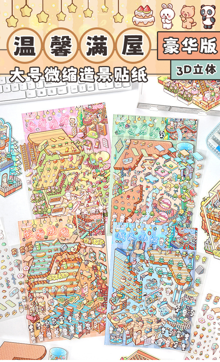 새로운 봄, 여름, 가을 및 겨울 조경 스티커 3D 대형 3 차원 장면 콜라주 소형 장면 손 계정 스티커 도매스토어 가기
