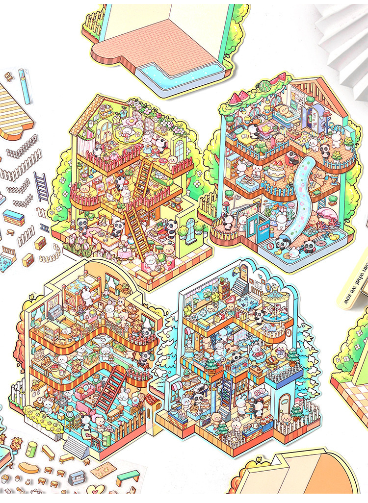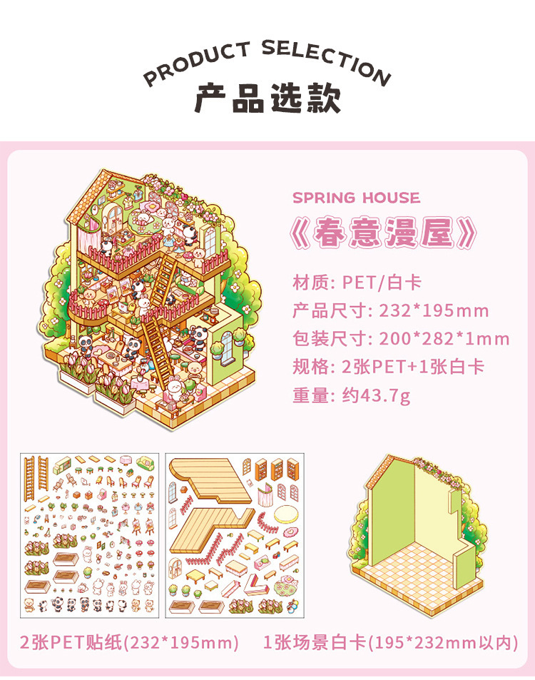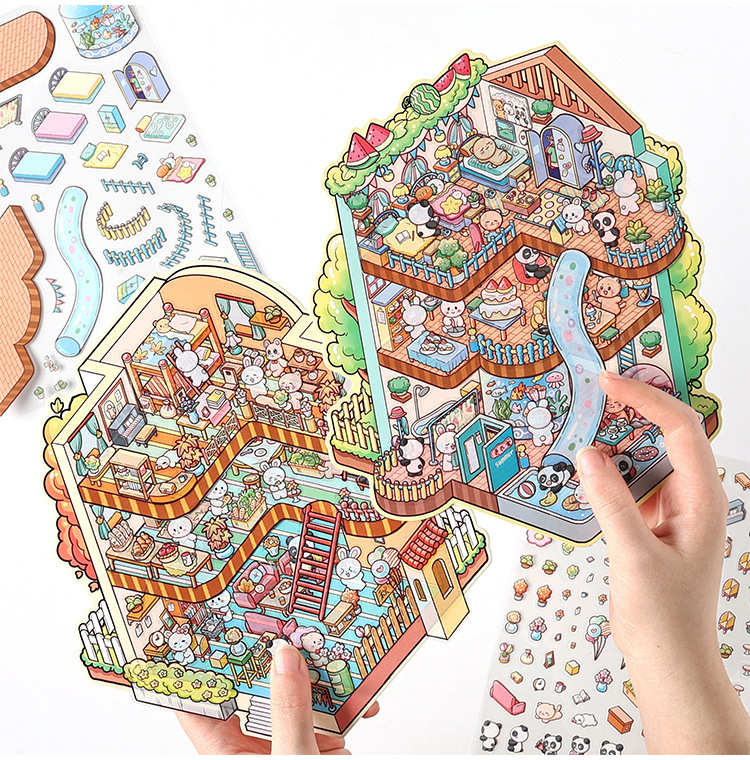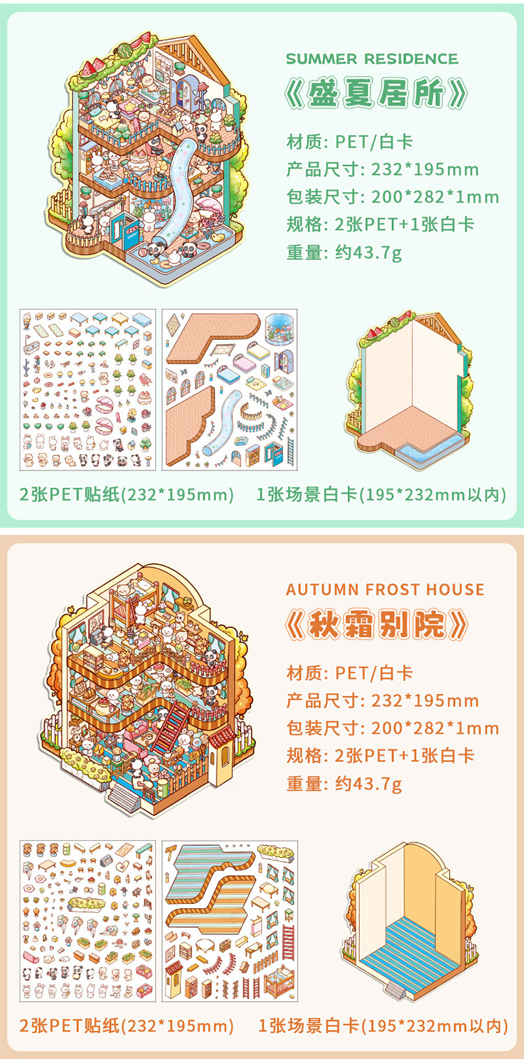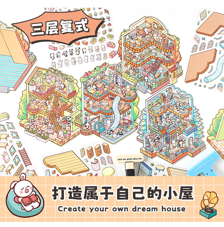 새로운 봄, 여름, 가을 및 겨울 조경 스티커 3D 대형 3 차원 장면 콜라주 소형 장면 손 계정 스티커 도매스토어 가기