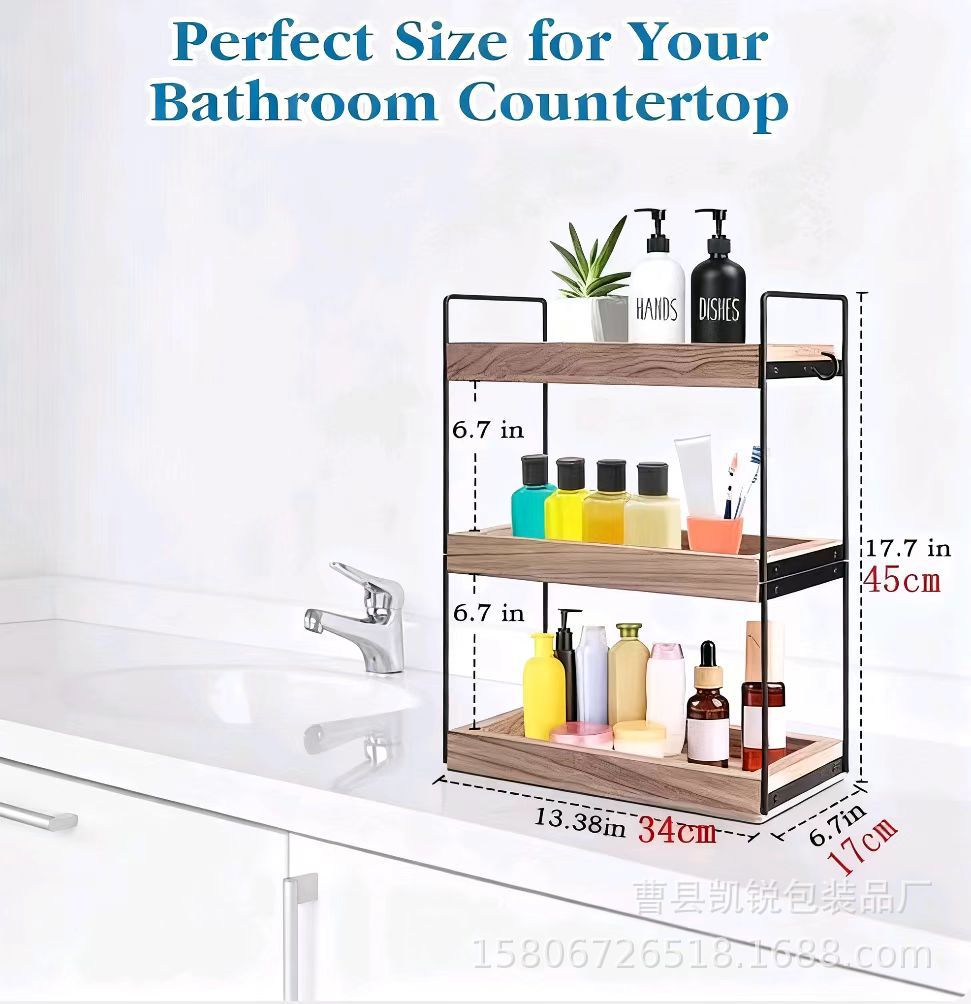 나무 테이블 탑 더블 레이어 저장 랙 철 욕실 가정용 다목적 주방 보관 랙 바닥 테이블 최고 양념 랙