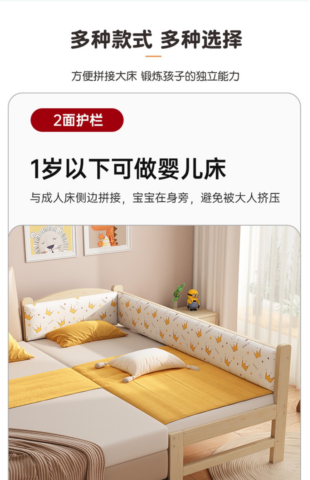 단단한 나무 어린이 접합 침대 가드 레일 침대 싱글 작은 침대 접합 큰 침대 넓은 침대 접합 침대