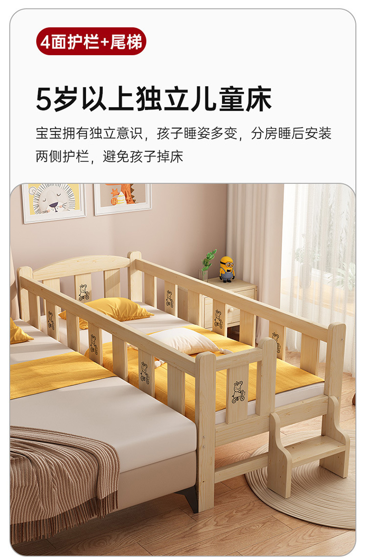 단단한 나무 어린이 접합 침대 가드 레일 침대 싱글 작은 침대 접합 큰 침대 넓은 침대 접합 침대스토어 가기