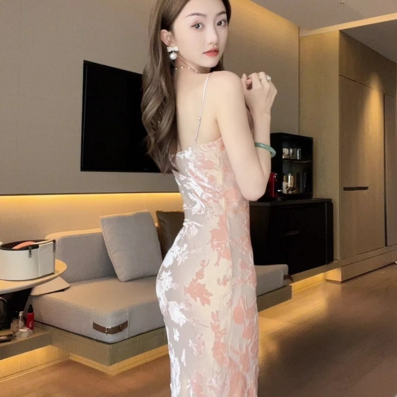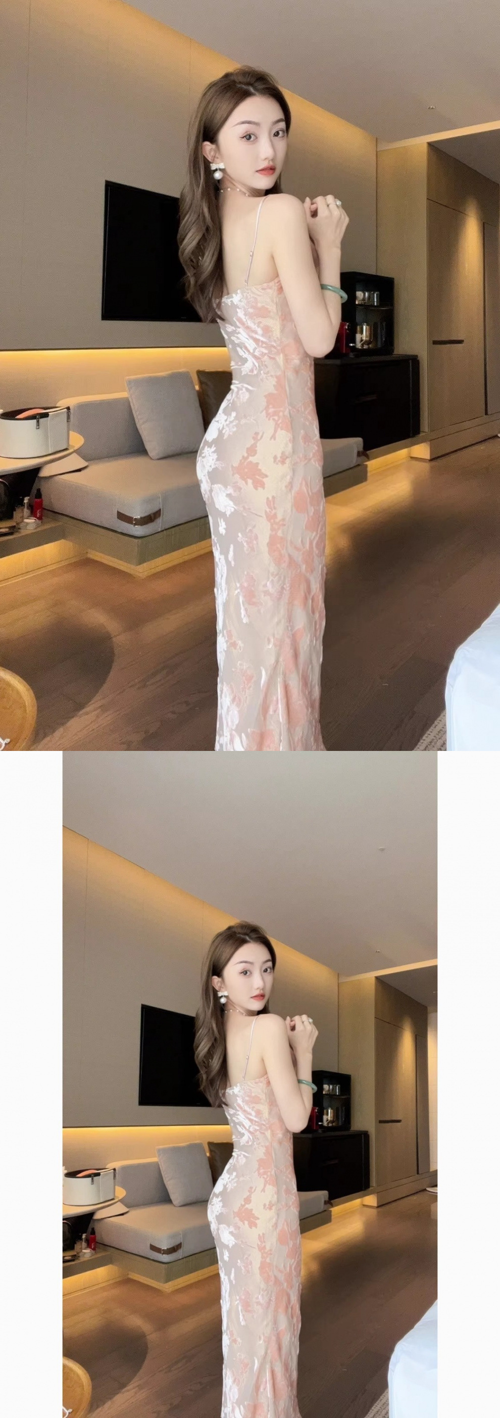 슬리밍 우아한 프랑스 슬림 핏 벨벳 슬링 원피스 여성 2025 년 봄과 가을 새로운베이스 연예인 원피스 여성 트렌디스토어 가기