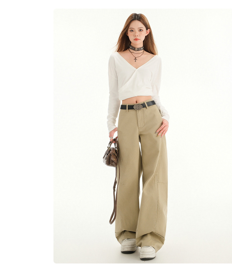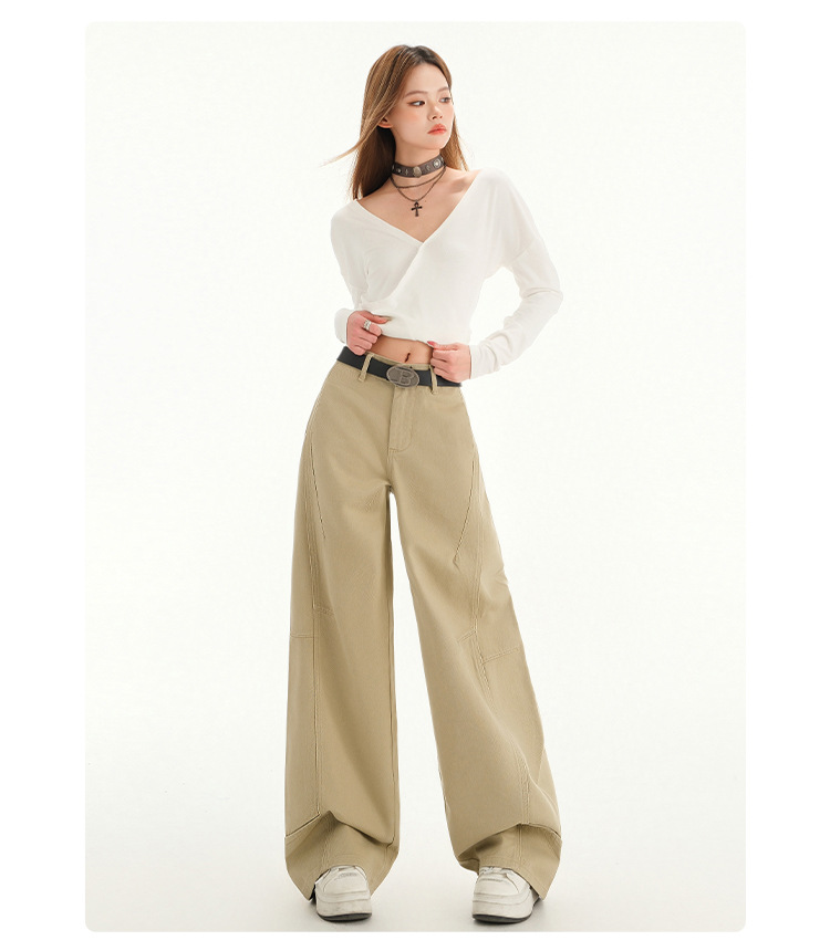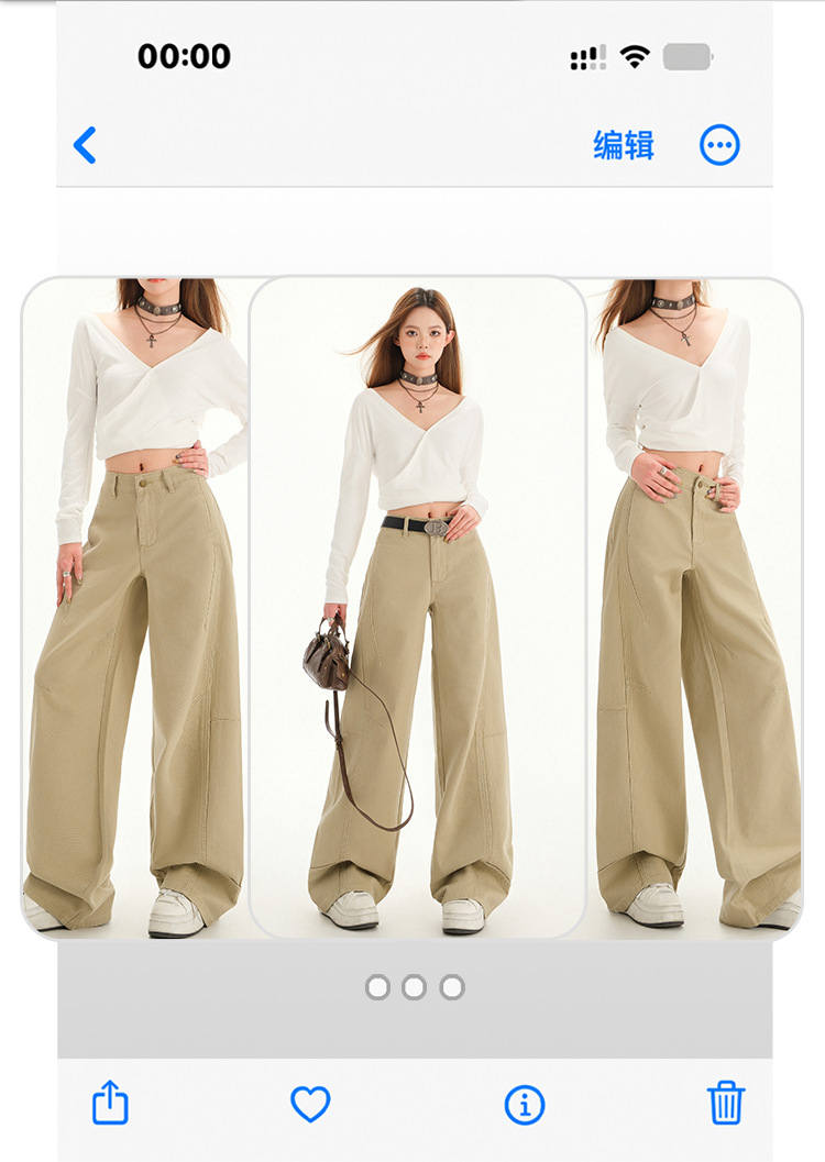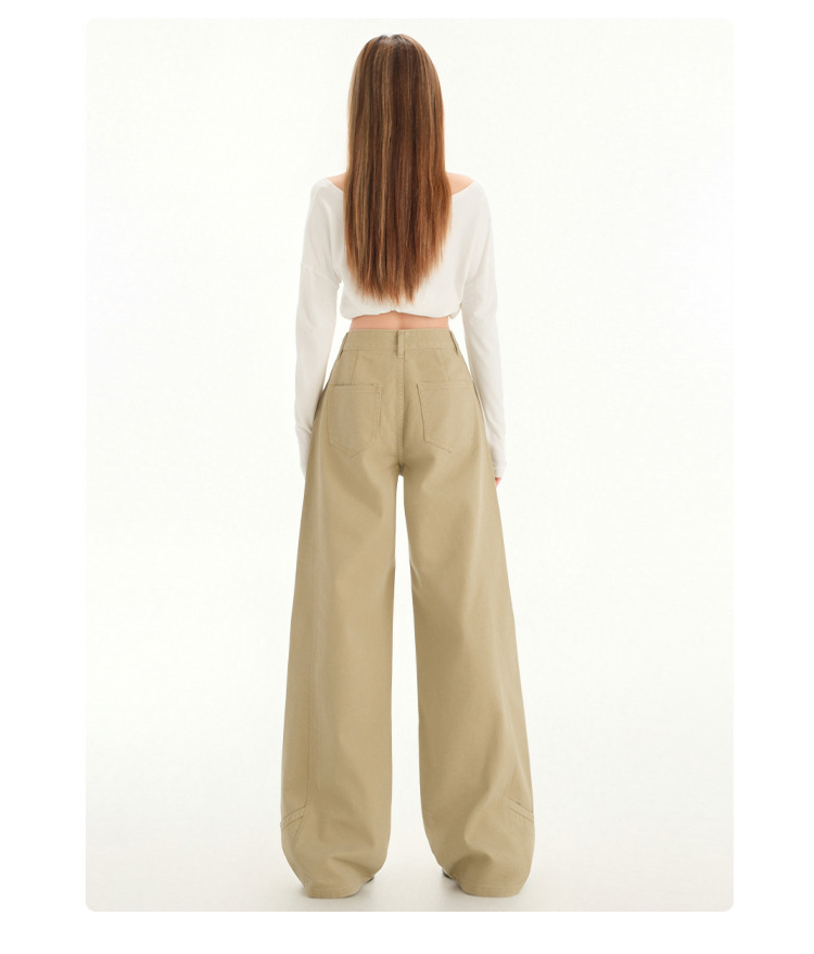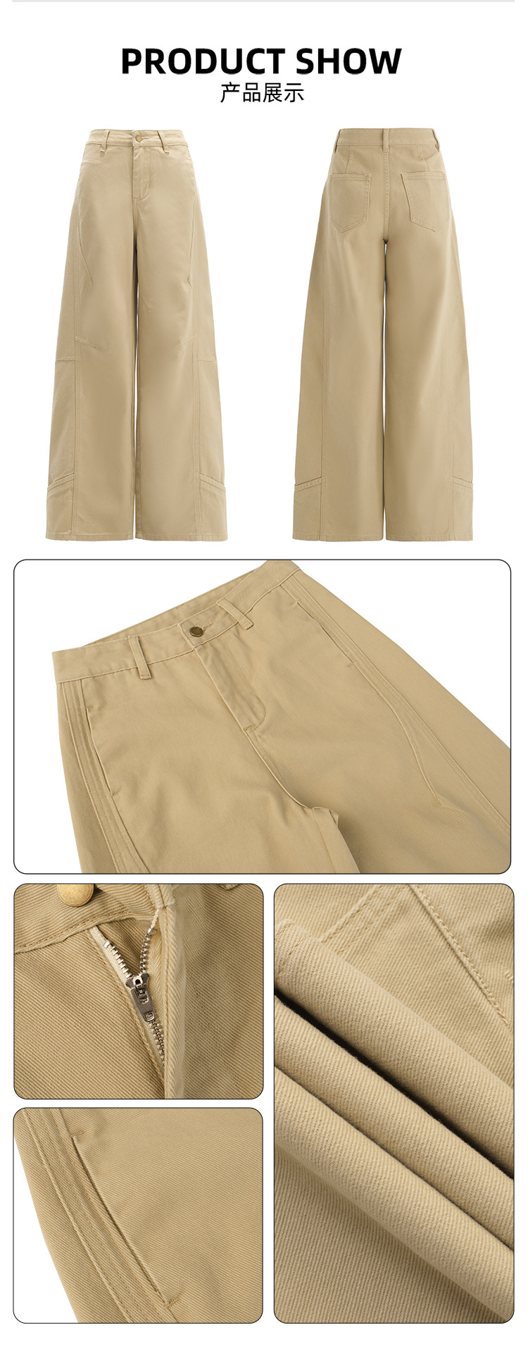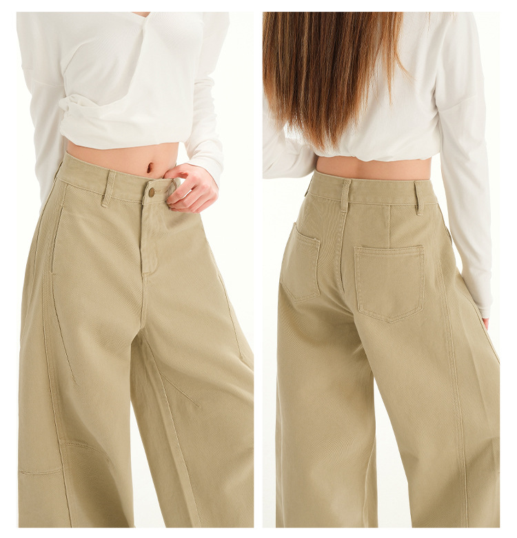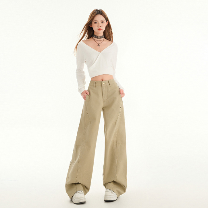 SY7609 새로운 미국 스타일 레트로 청바지 여성 디자인 감각 카키 느슨한 넓은 다리 스트레이트 바지스토어 가기