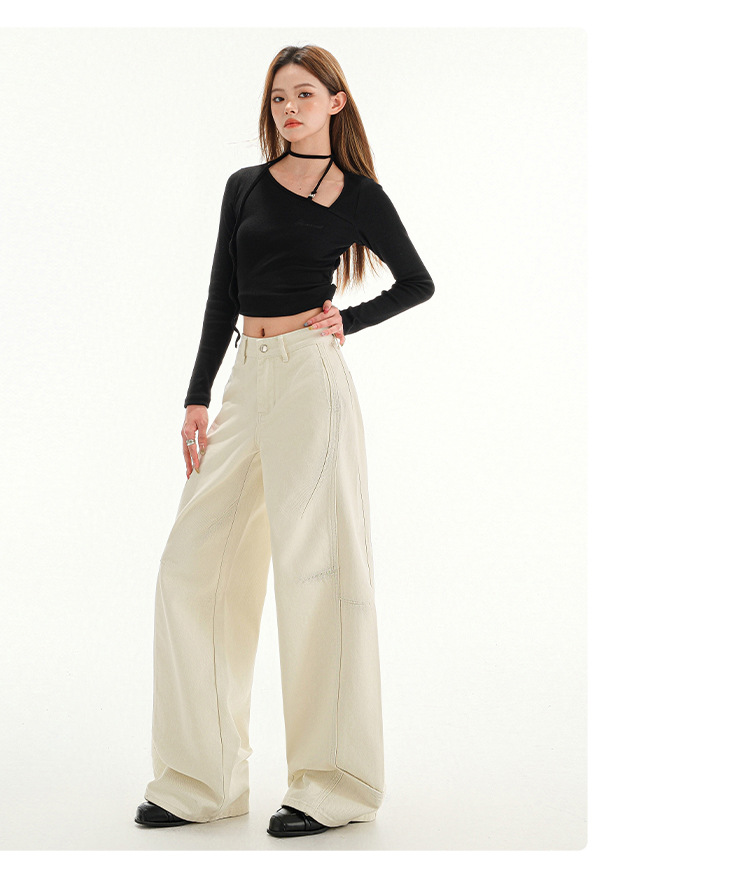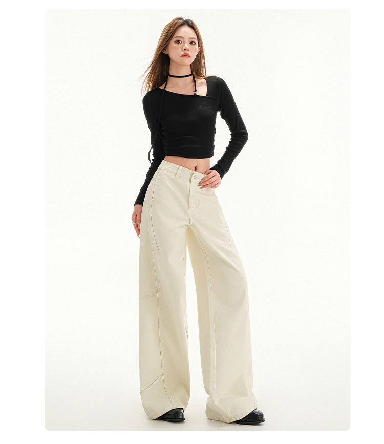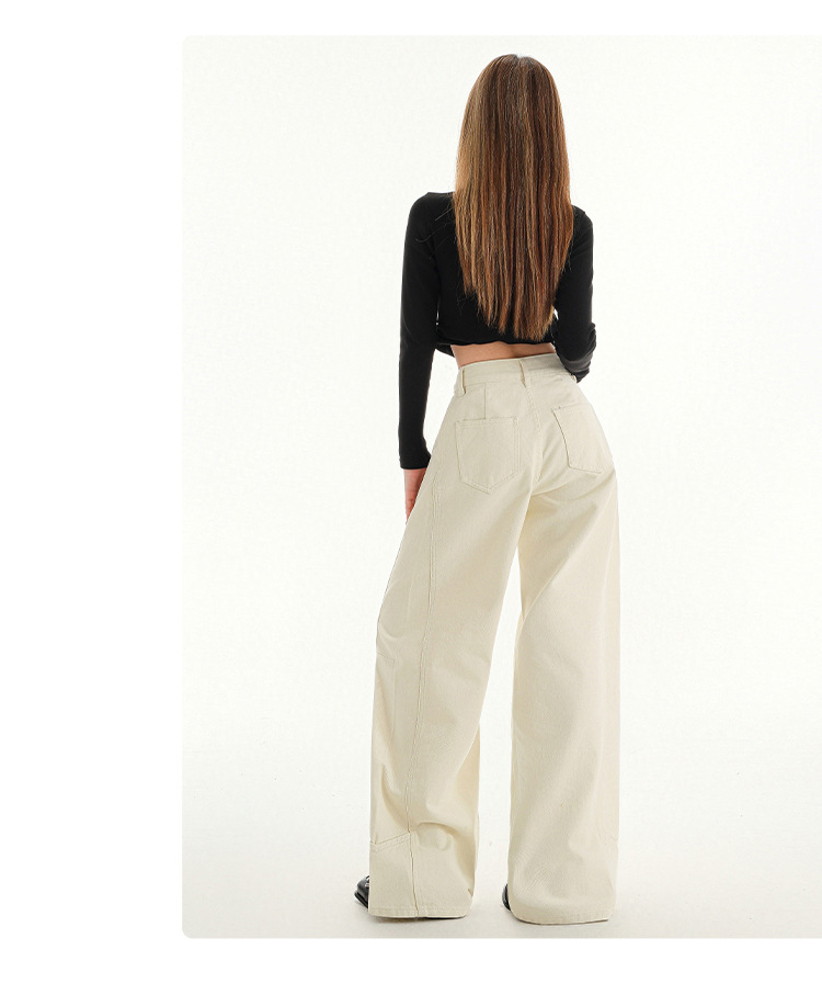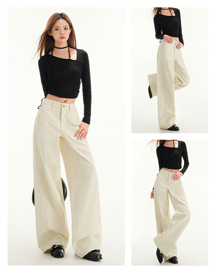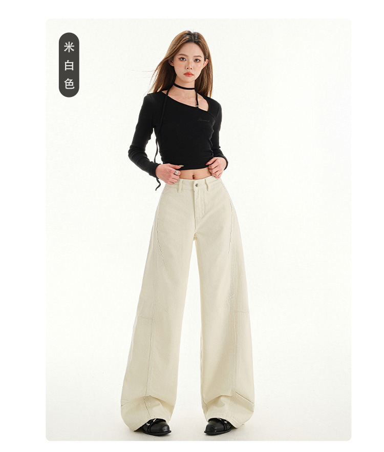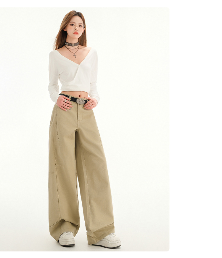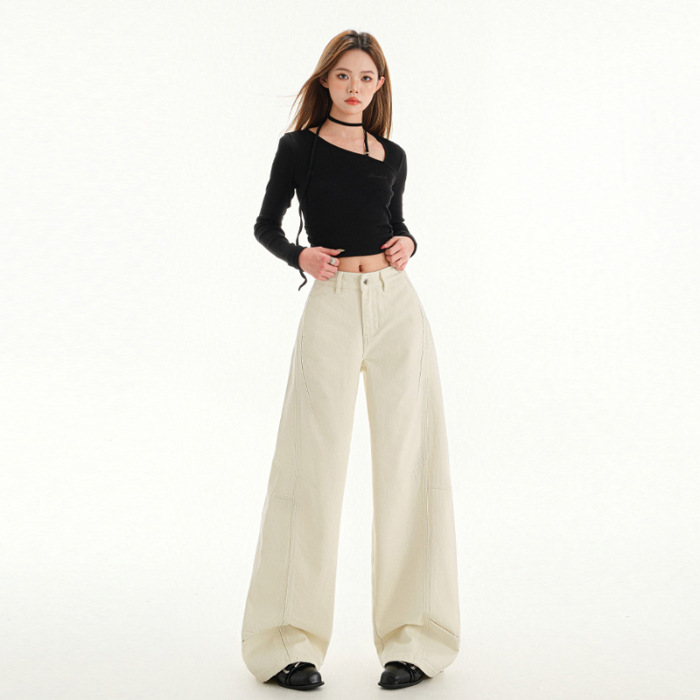 SY7609 새로운 미국 스타일 레트로 청바지 여성 디자인 감각 카키 느슨한 넓은 다리 스트레이트 바지스토어 가기