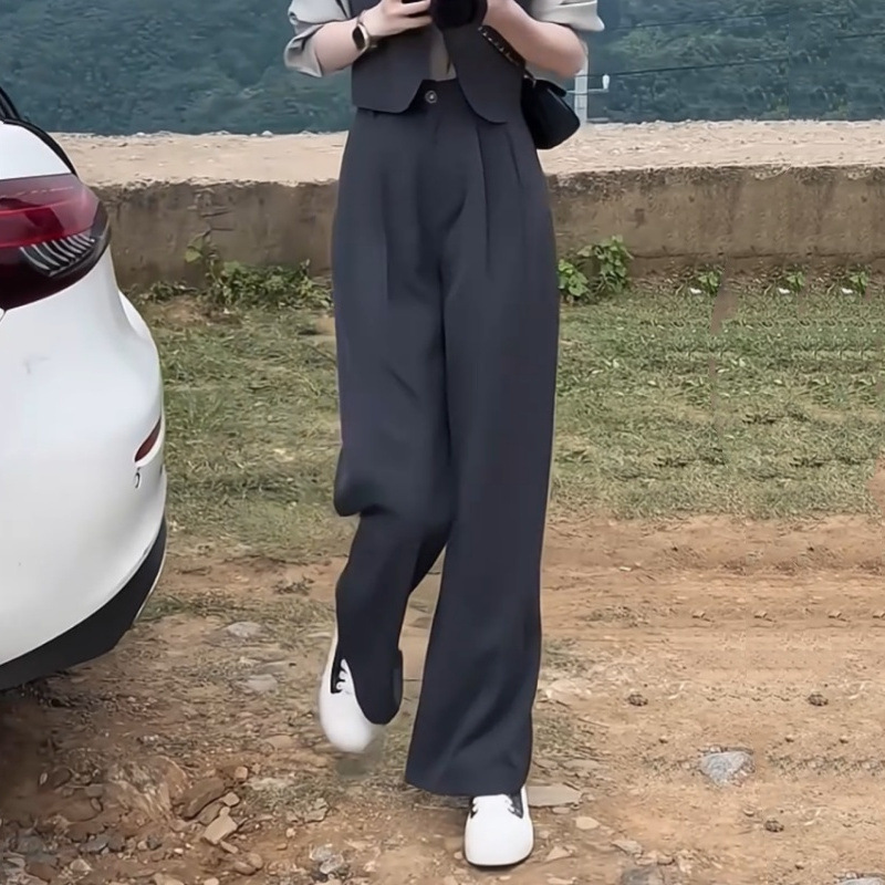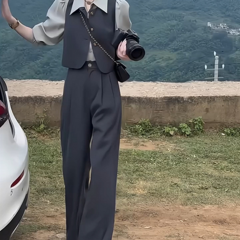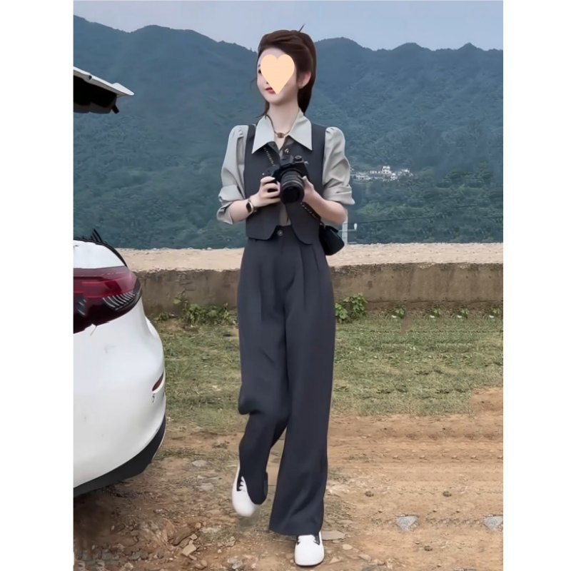 작은 나이를 줄이는 우아한 세트 여성의 2025 봄 새로운 긴팔 셔츠 조끼 바지 슬리밍 3 피스 세트스토어 가기