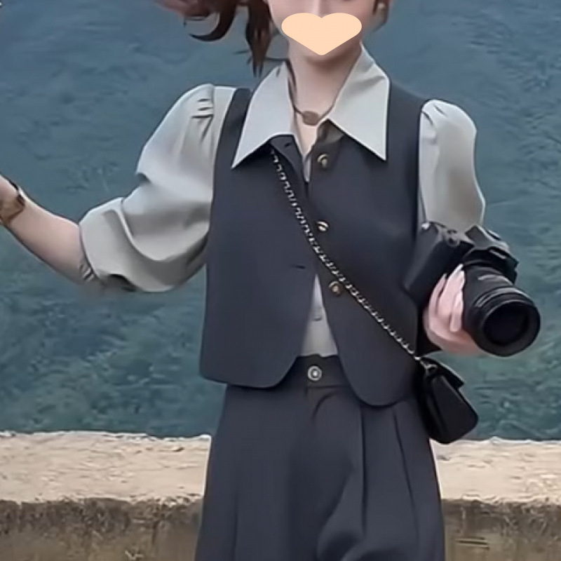 작은 나이를 줄이는 우아한 세트 여성의 2025 봄 새로운 긴팔 셔츠 조끼 바지 슬리밍 3 피스 세트