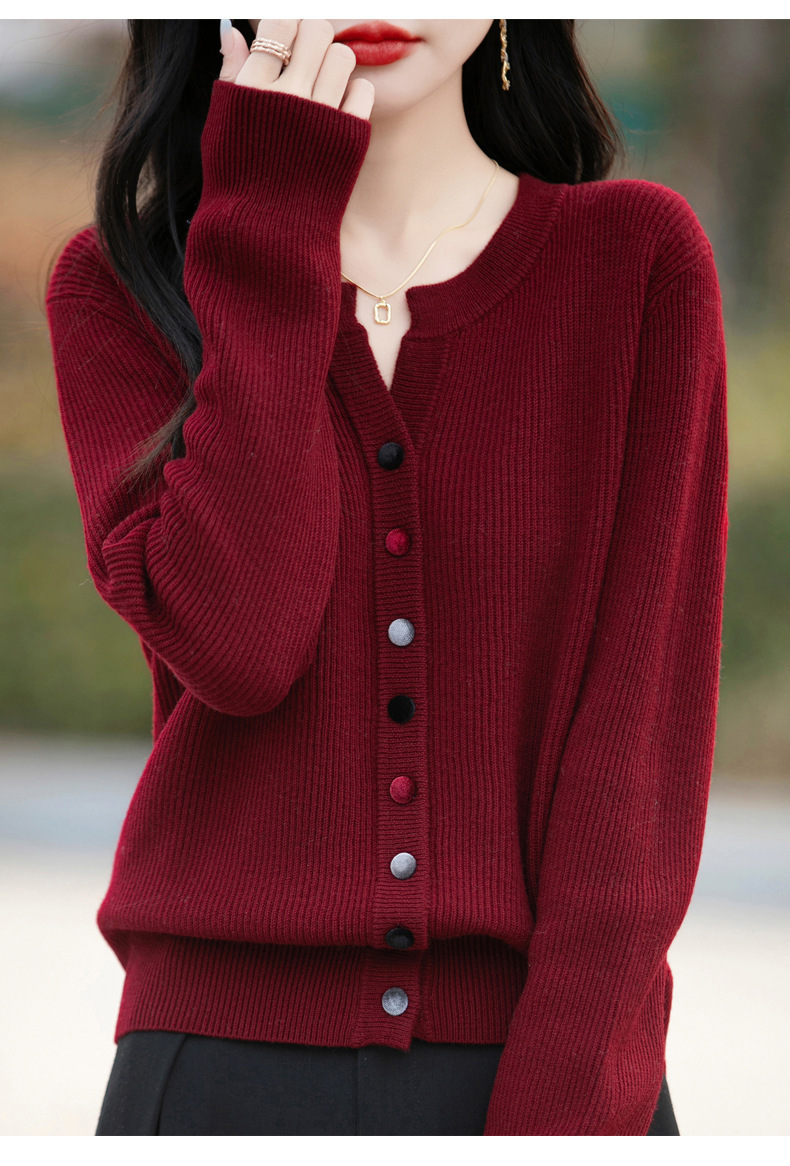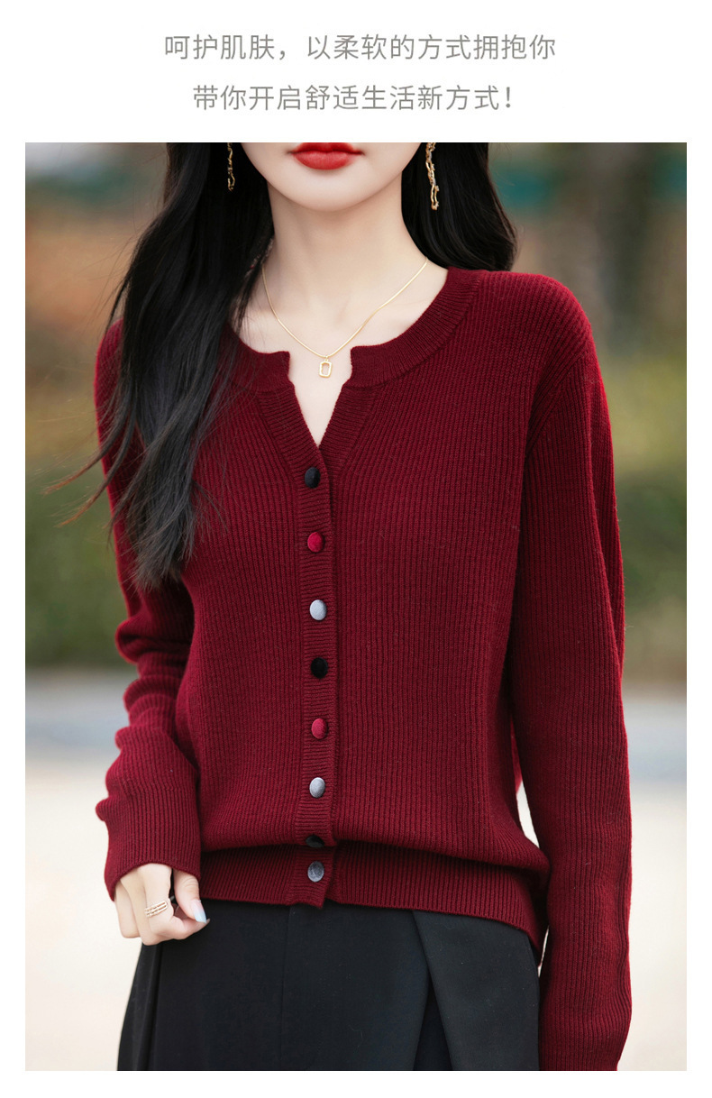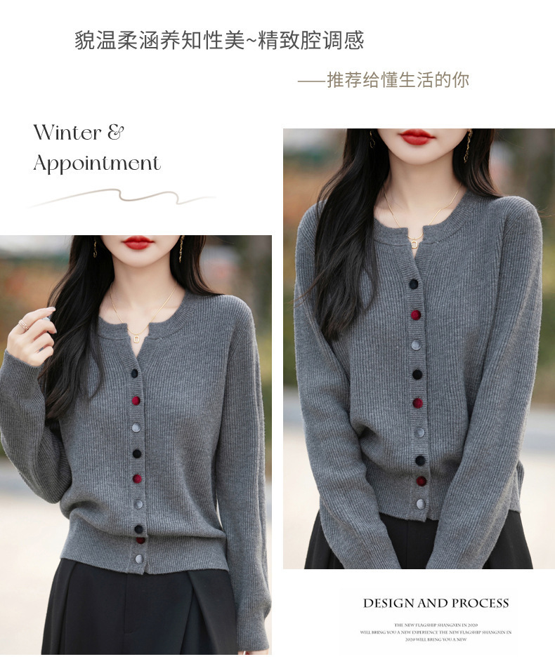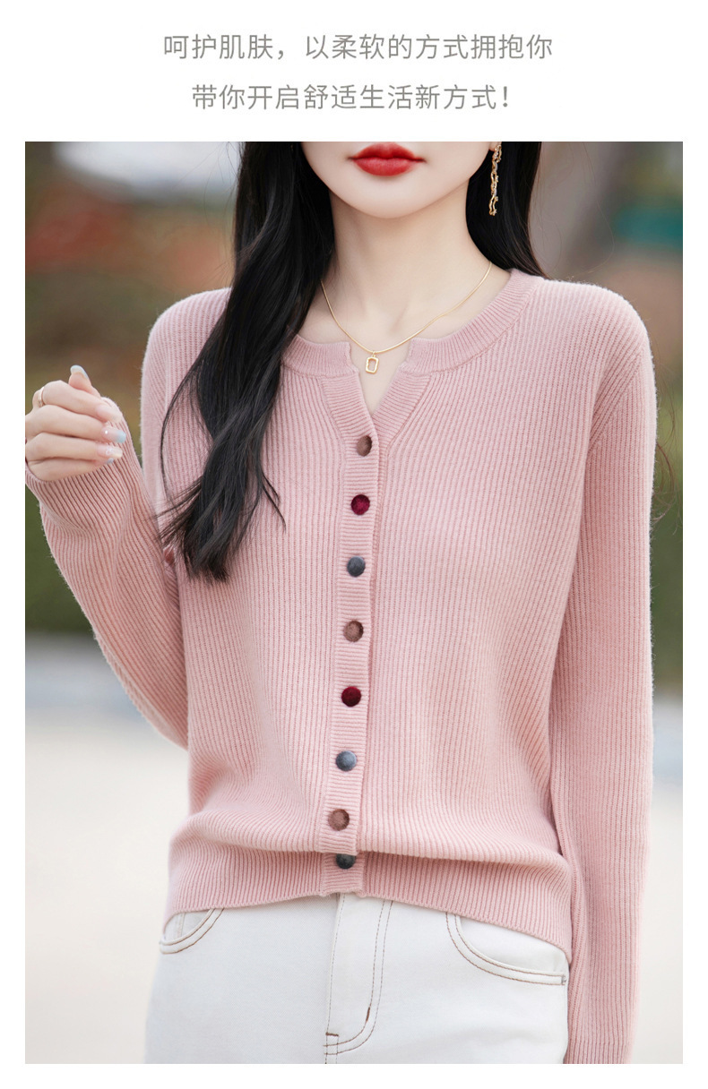 도매 봄 새로운 앤디 벨벳 V 넥 니트 카디건 솔리드 컬러 스트립 컬러 버클 루즈 조커 탑 대외 무역스토어 가기