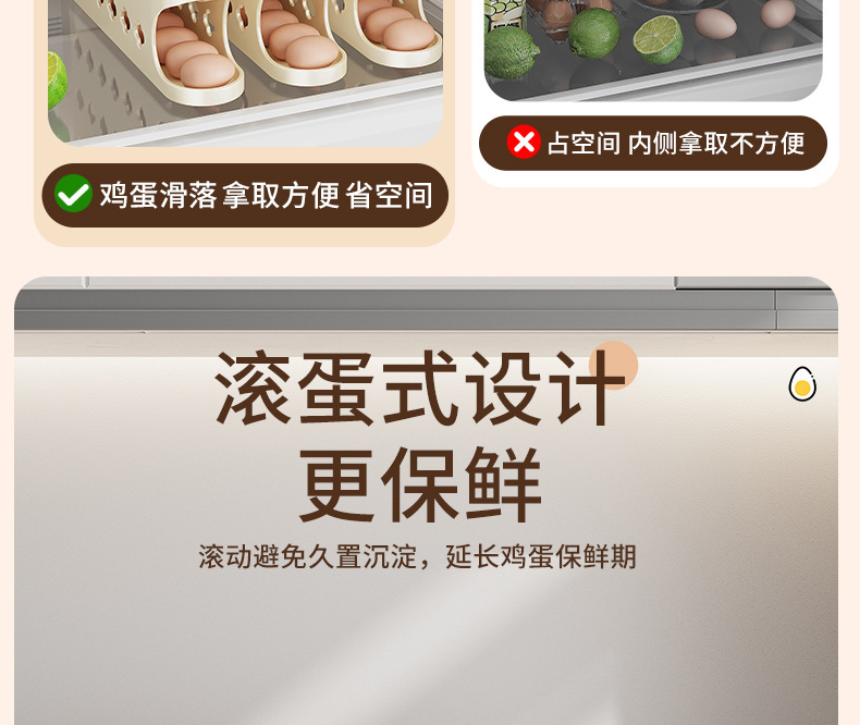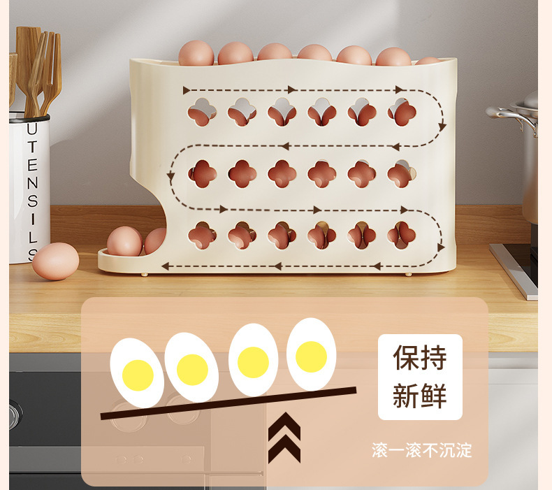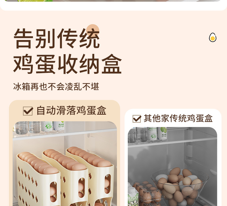 자동 계란 롤링 슬라이드 계란 저장 상자 냉장고 사이드 도어 저장 상자 계란 롤링 식품 등급 계란 랙 계란 상자스토어 가기