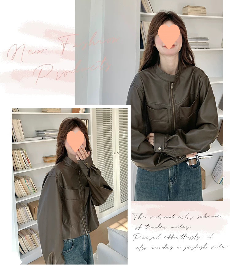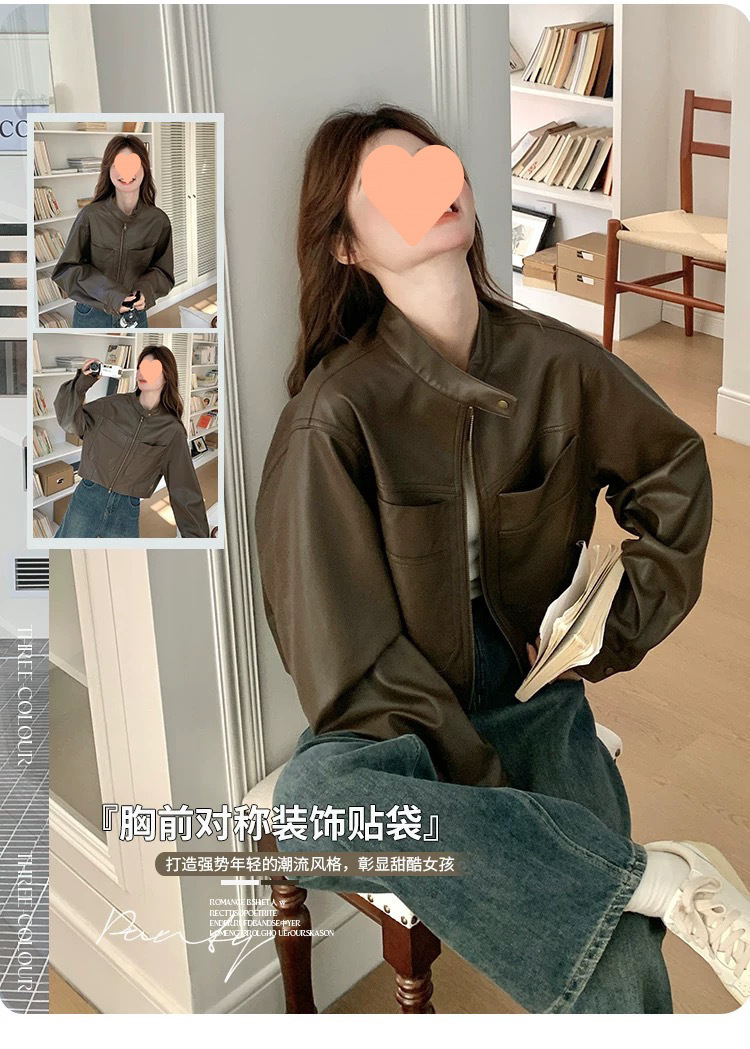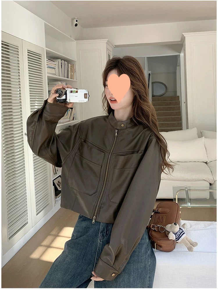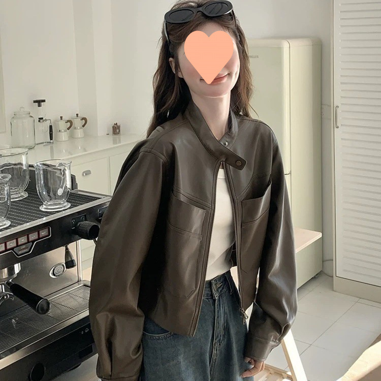 [점포 판매] 다크 브라운 가죽 자켓 여성 봄 · 가을 2025 년 새 미국산 복고풍 가죽 자켓스토어 가기