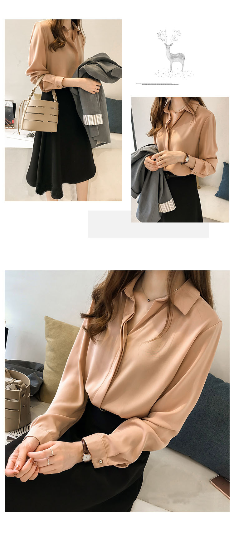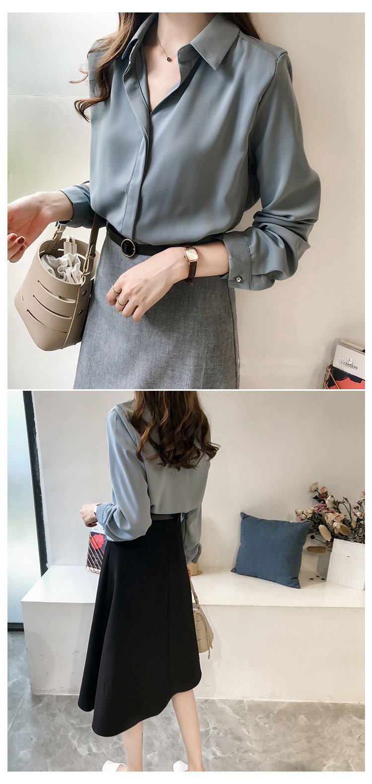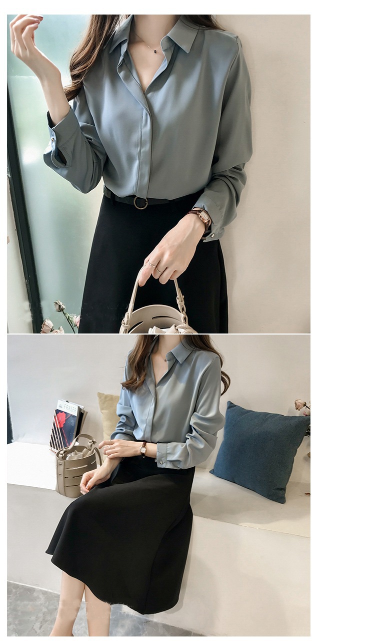 2025 봄과 가을 새로운 올 매치 학생 한국식 단색 셔츠 여성 긴 소매 느슨한 한국식 플러스 사이즈 셔츠 톱 여성스토어 가기