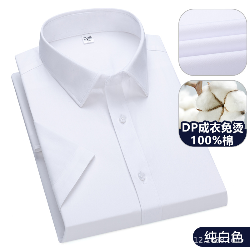 DP 비 다림질 면 남성용 반소매 셔츠 사업 원피스 캐주얼 반소매 화이트 셔츠 여름면 작업복스토어 가기