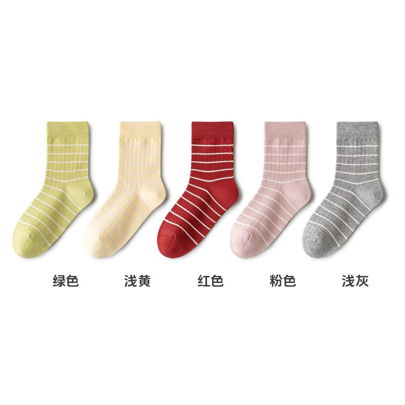 • 봄 여아 스트라이프 종아리 양말 조합 ② (그린+라이트옐로우+레드+핑크+라이트그레이)