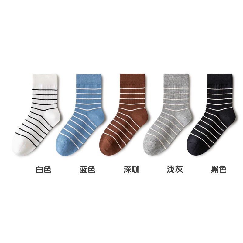 • 봄 남아 스트라이프 종아리 양말 콤비네이션 ① (화이트+블루+다크커피+라이트그레이+블랙)