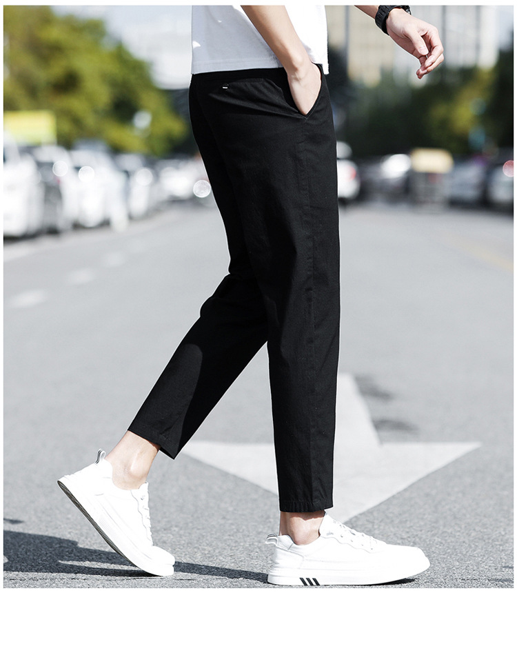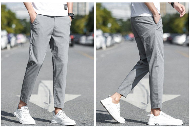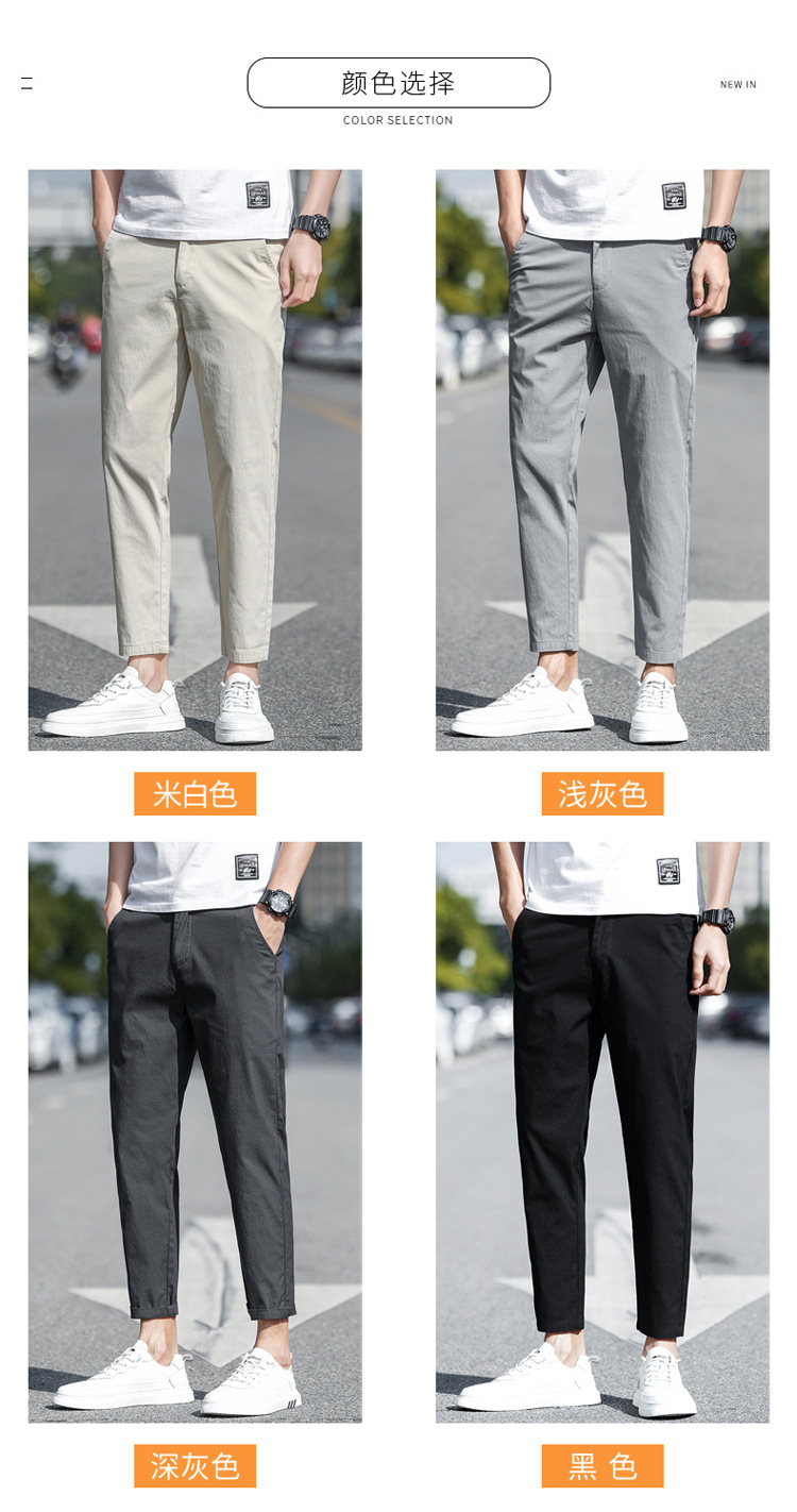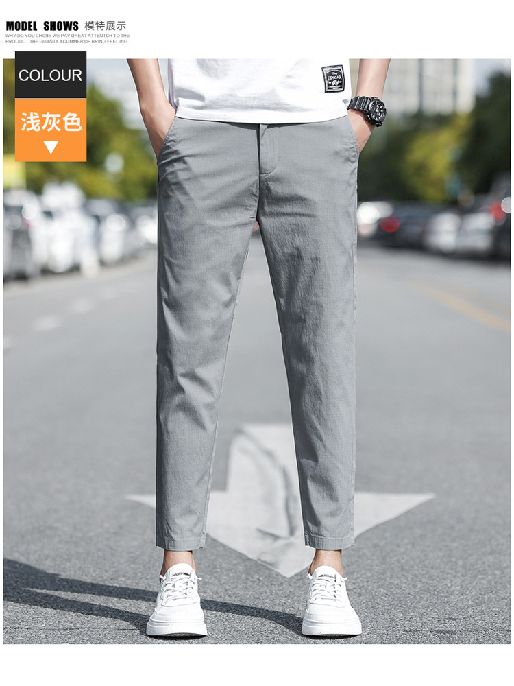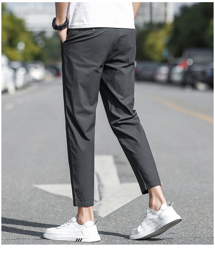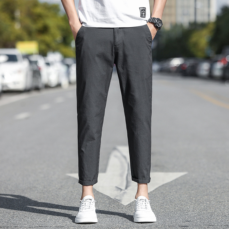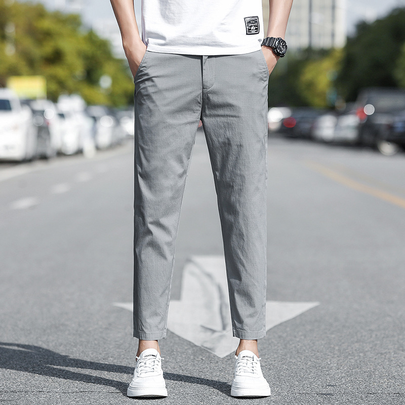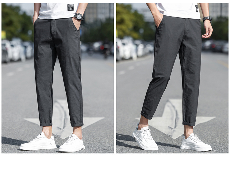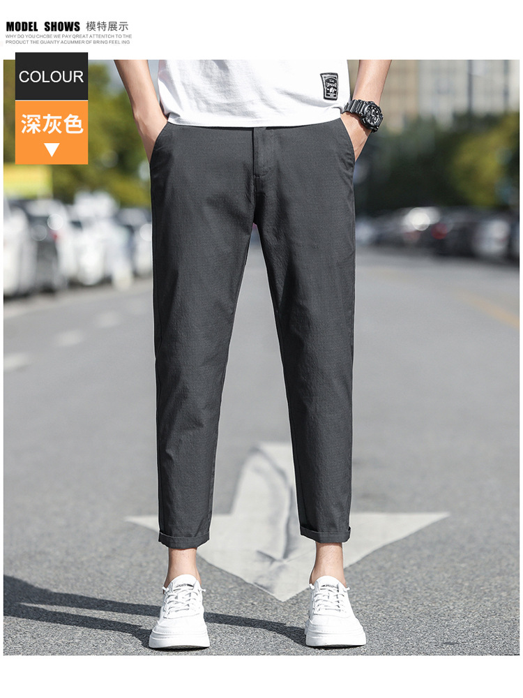 여름 아이스 실크 청소년 캐주얼 팬츠 얇은 남성용 팬츠 9부 팬츠 슬림핏 스트레이트 남성 스포츠 팬츠 남성용스토어 가기