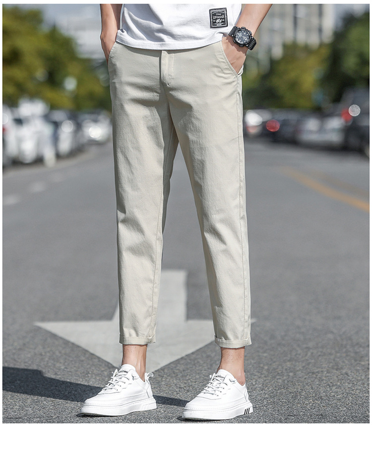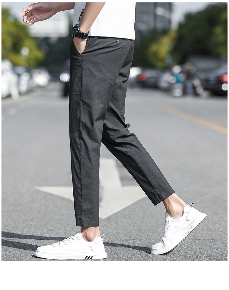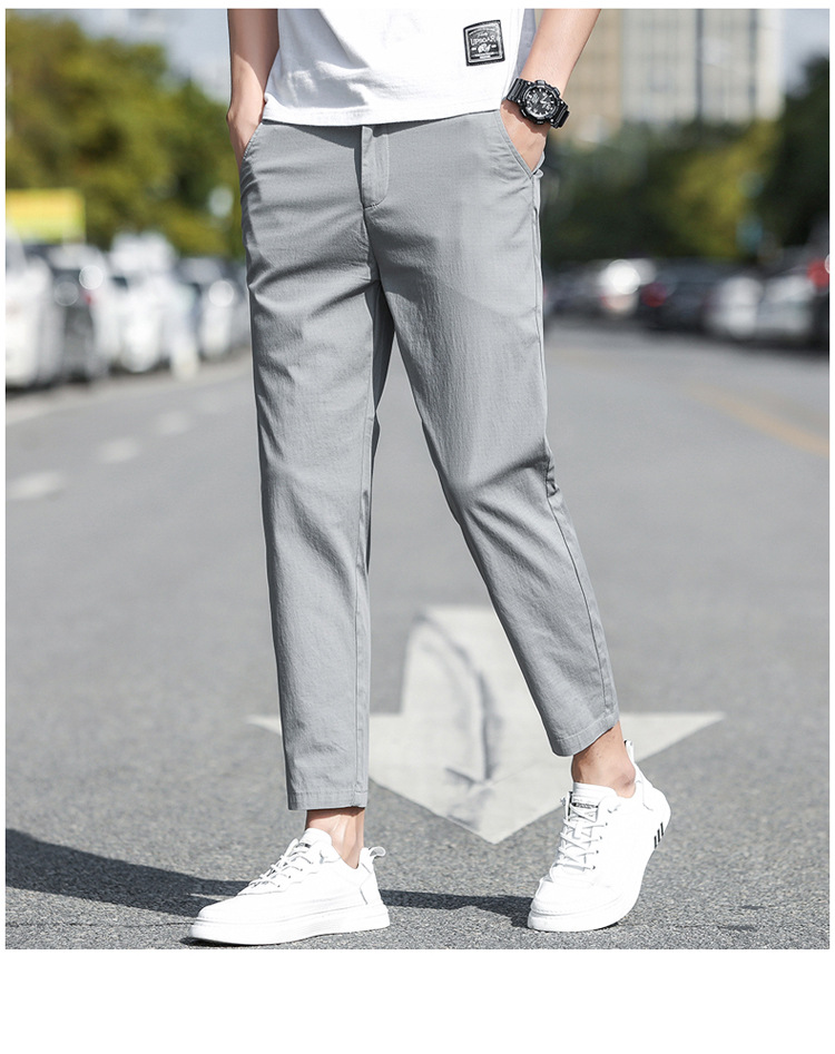 여름 아이스 실크 청소년 캐주얼 팬츠 얇은 남성용 팬츠 9부 팬츠 슬림핏 스트레이트 남성 스포츠 팬츠 남성용