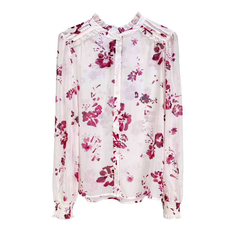 프랑스 우아한 2025 이른 봄 도시 패션 트윈 로즈 프린트 시폰 텍스트 스루 올 매치 셔츠스토어 가기