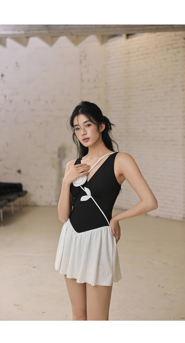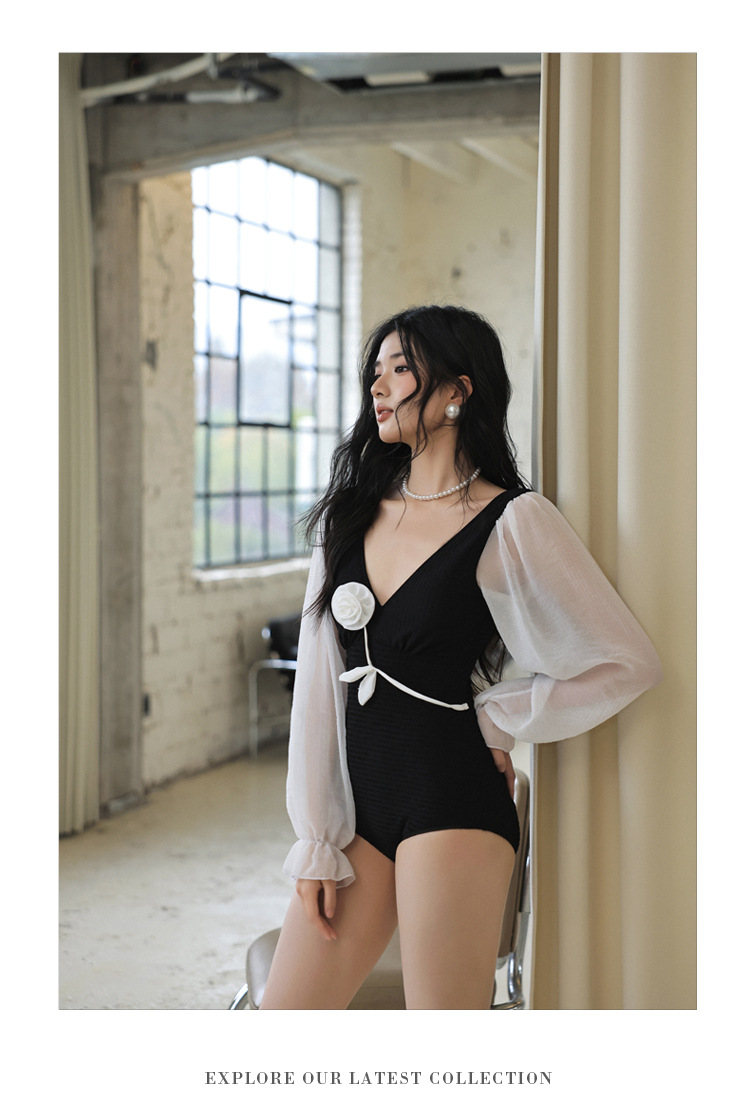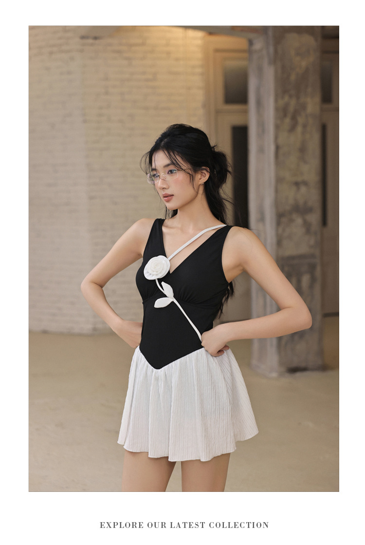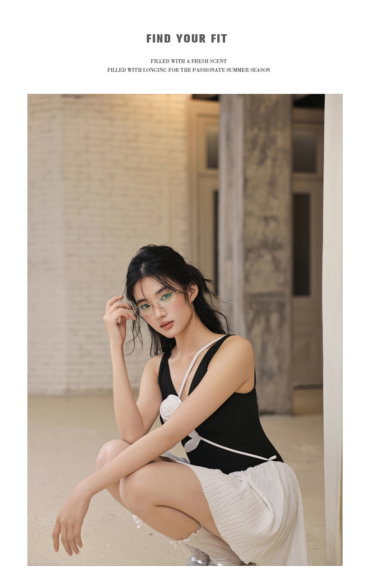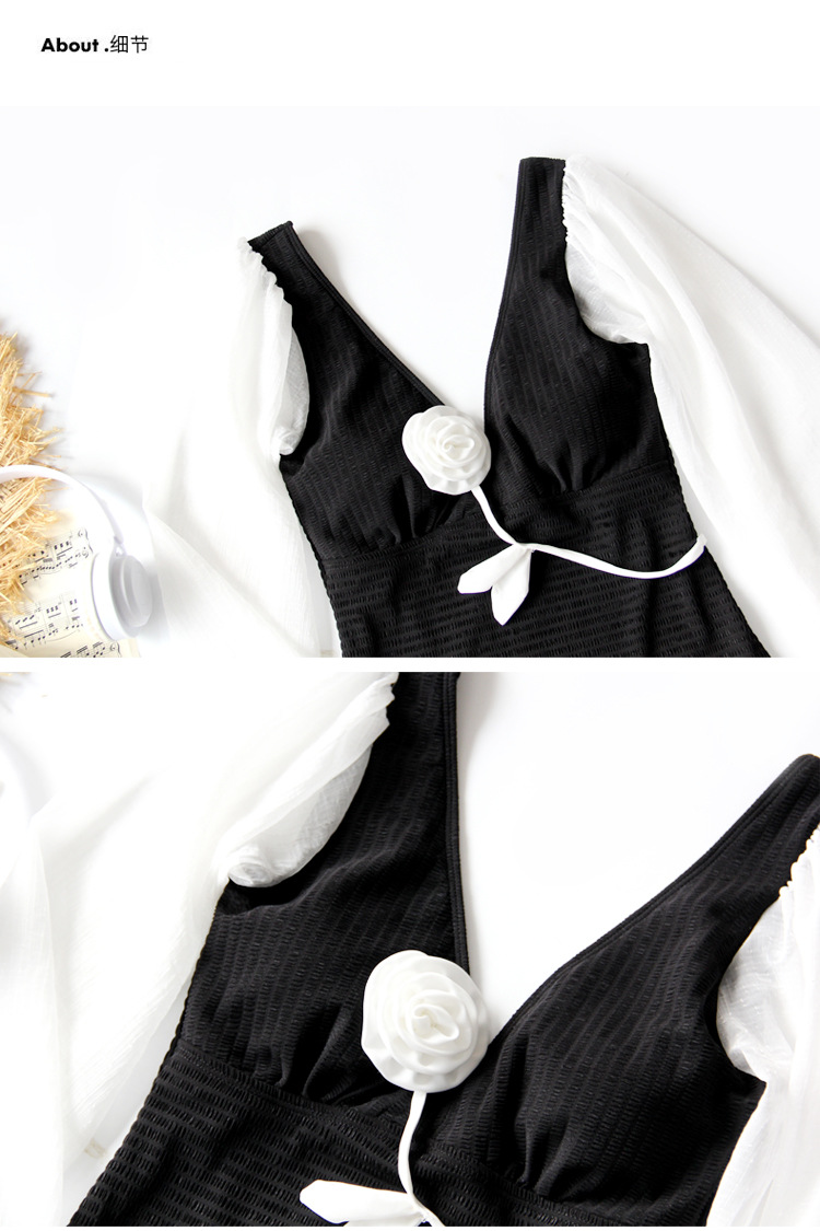 수영복 여성의 새로운 하이 엔드 틈새 디자인 3 차원 화이트 로즈 섹시한 V 넥 시아만 뜨거운 소녀 수영복스토어 가기