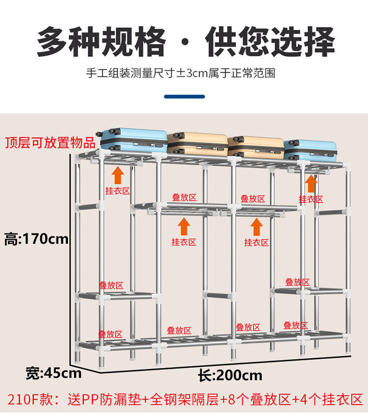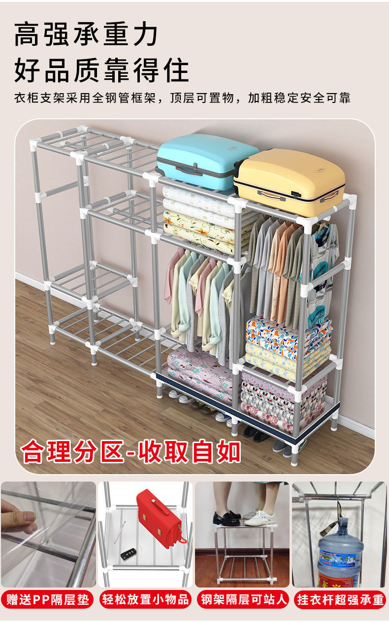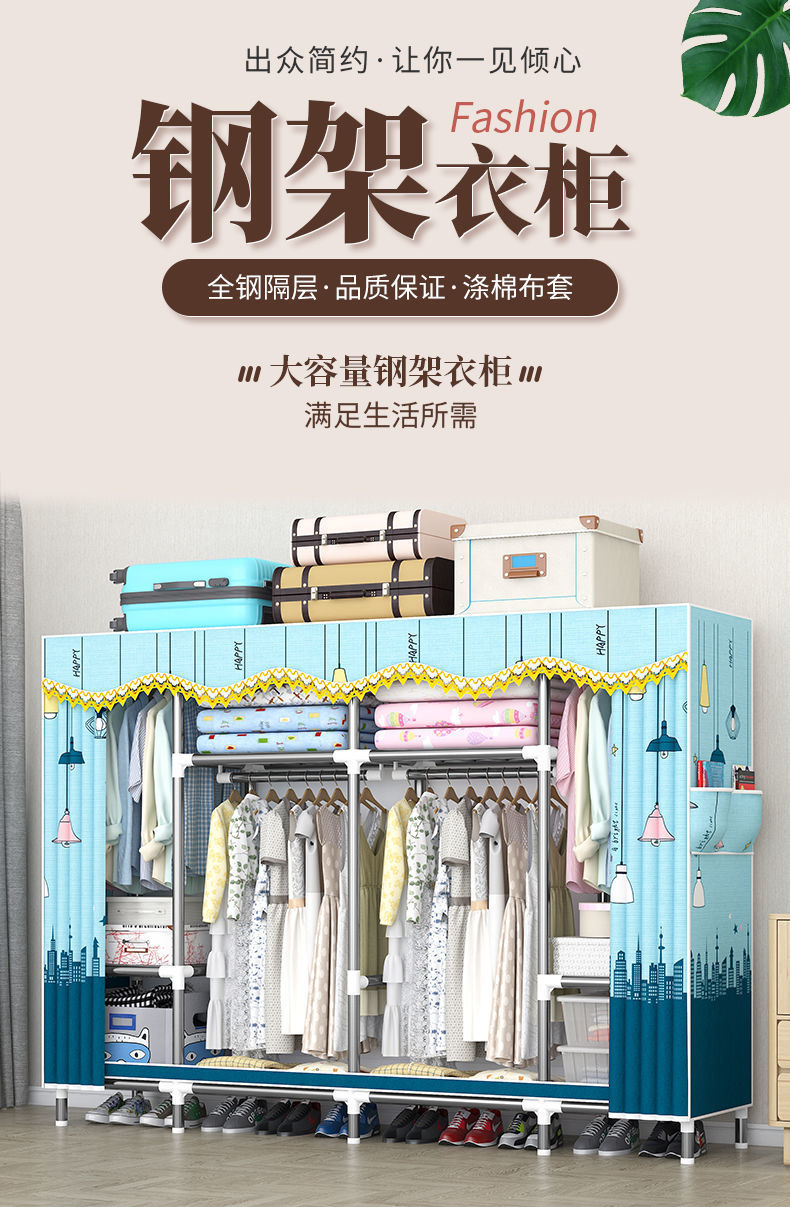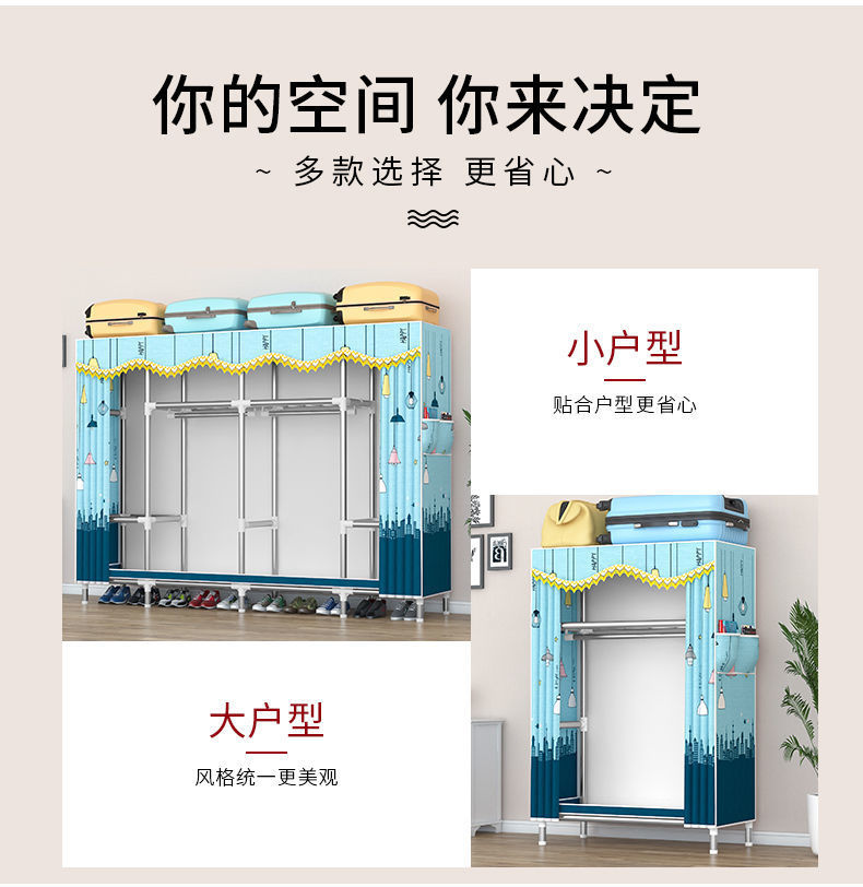 2023 침실 가정용 천 옷장 강화 두꺼운 강관 강하고 튼튼한 간단한 저장 캐비닛 임대 룸 캐비닛스토어 가기