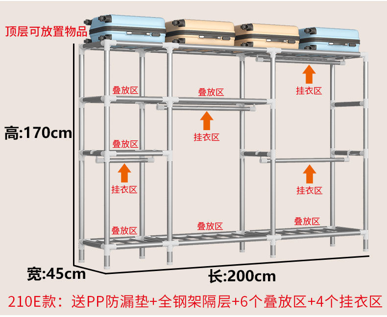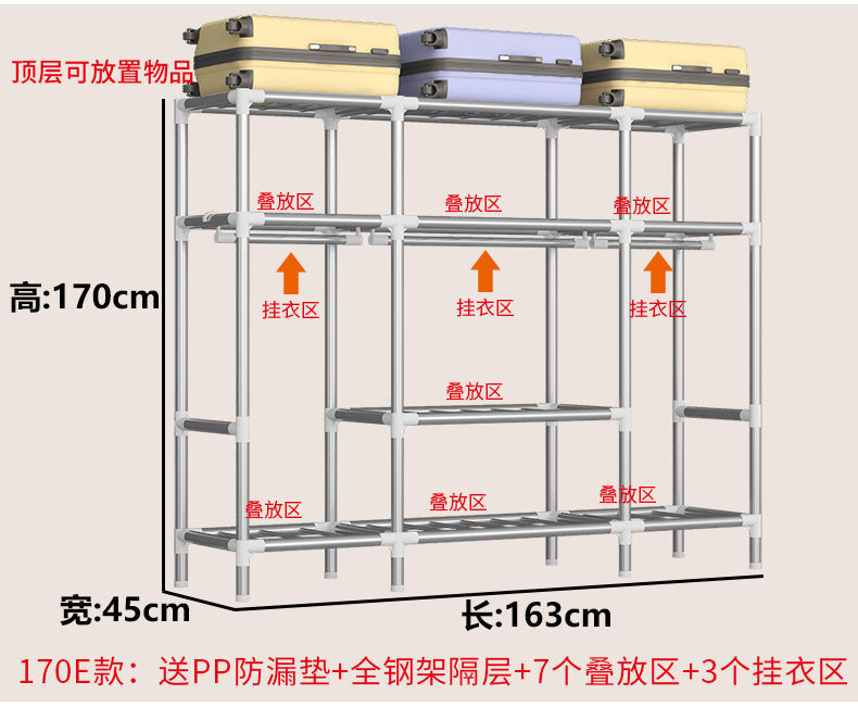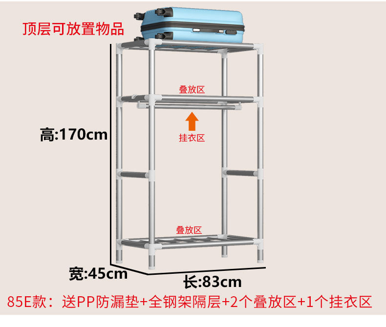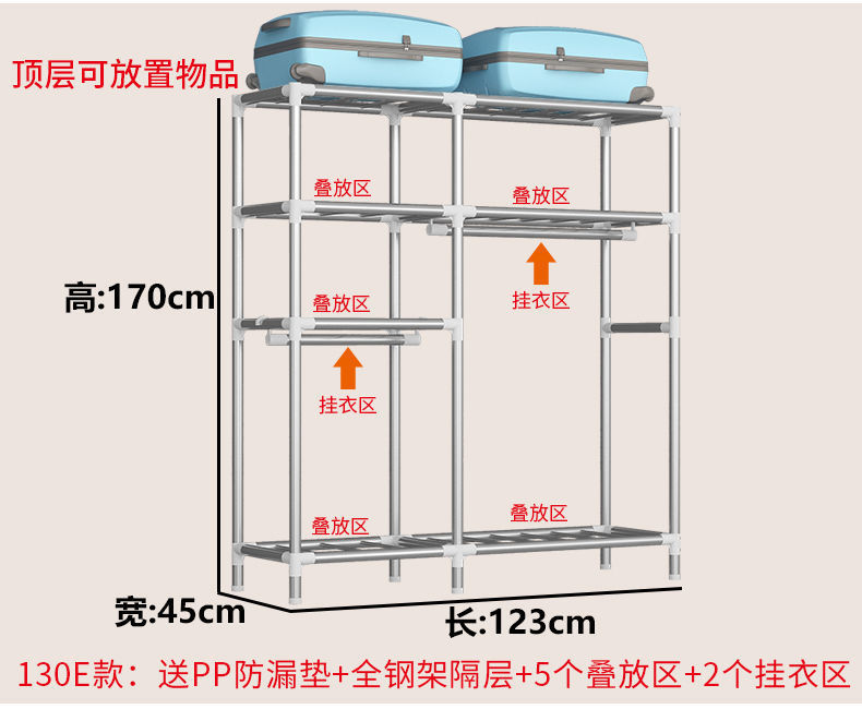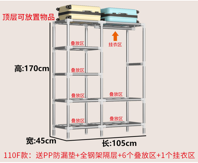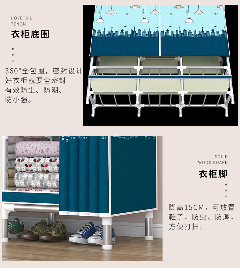 2023 침실 가정용 천 옷장 강화 두꺼운 강관 강하고 튼튼한 간단한 저장 캐비닛 임대 룸 캐비닛스토어 가기