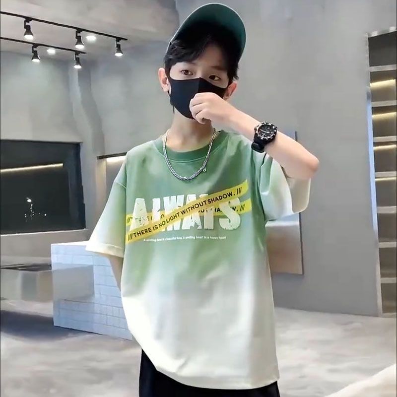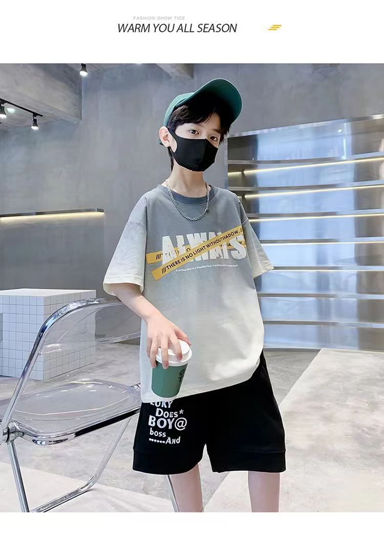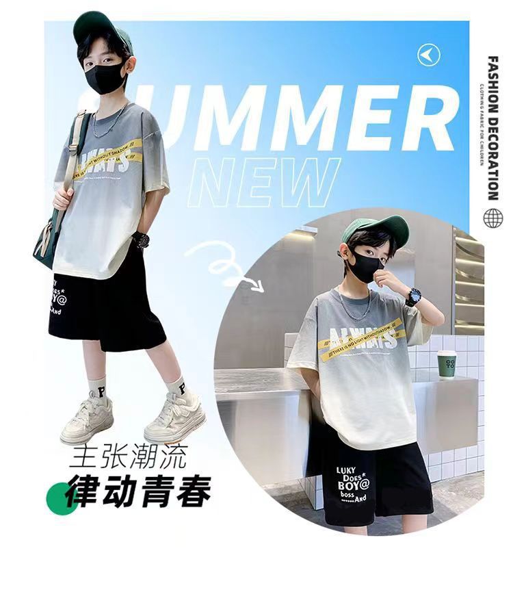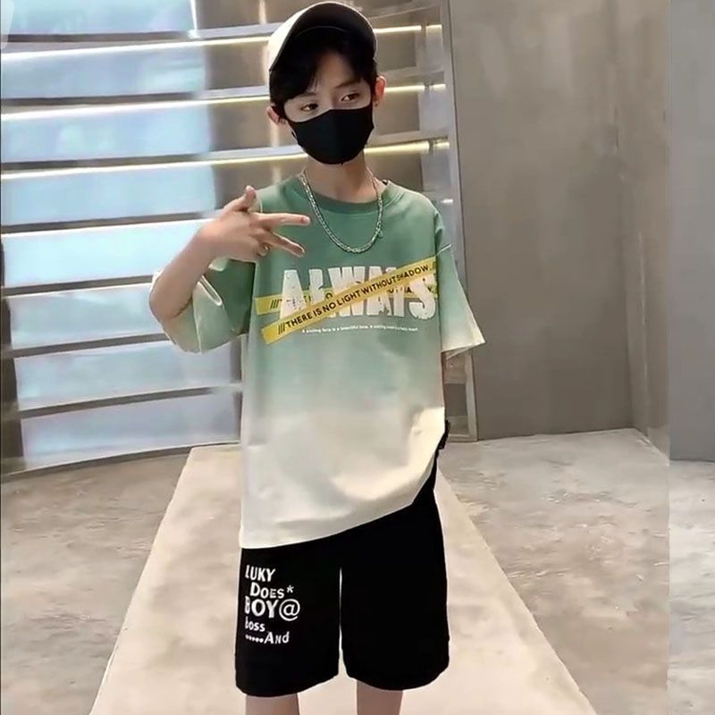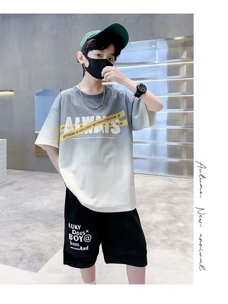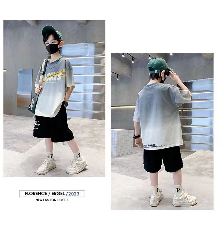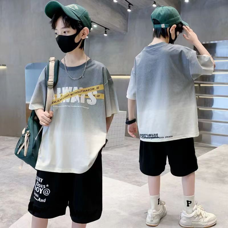 남학생 여름 의류 그라디언트 스포츠 세트 2025 새로운 큰 소년 한국 러피 잘 생긴 재킷 티셔츠 바지 투피스 세트스토어 가기