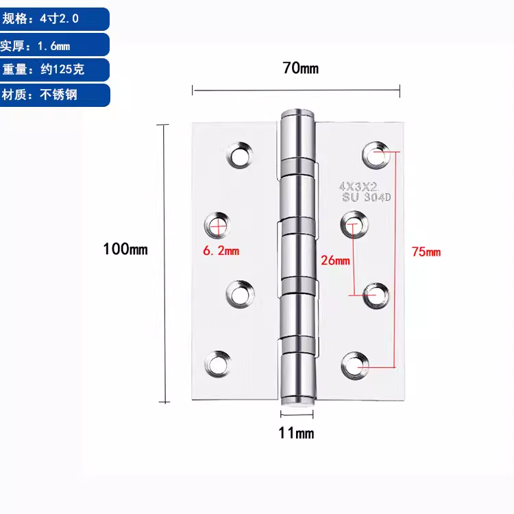 도어 4 인치 스테인레스 스틸 304 플랫 오픈 베어링 힌지 두꺼운 5 인치 나무 문 느슨한 잎 음소거스토어 가기