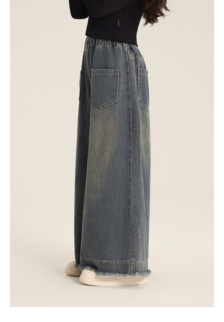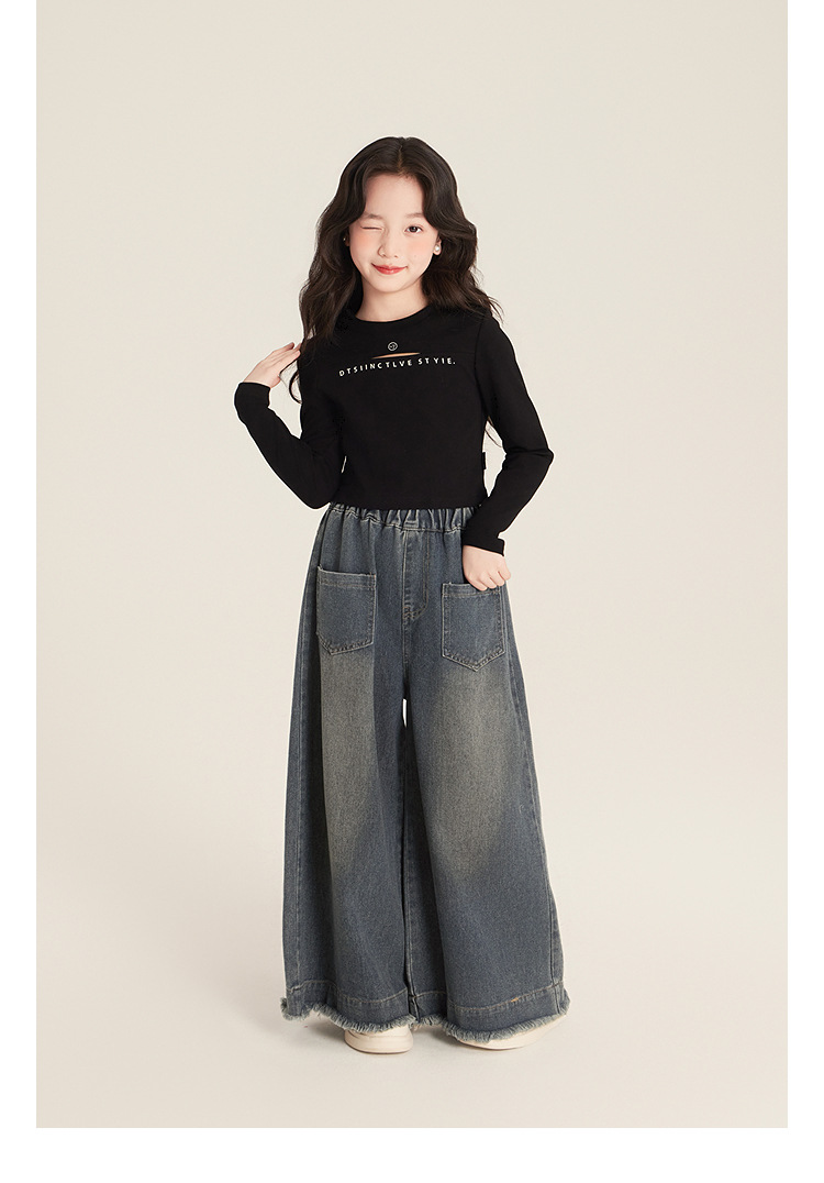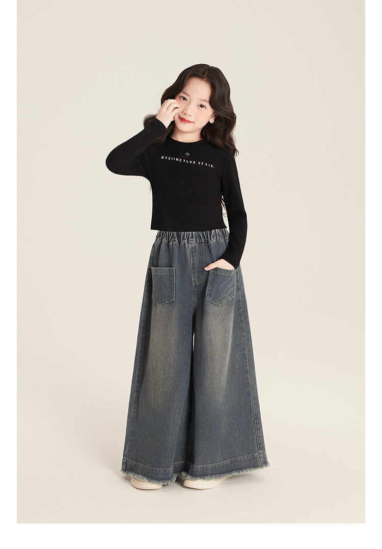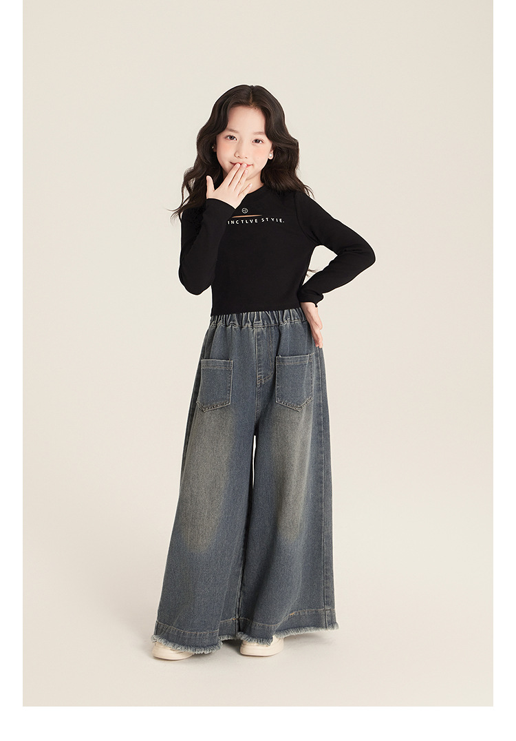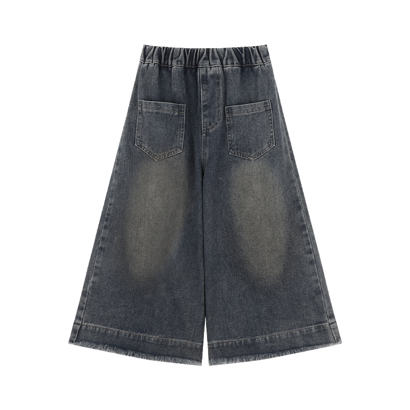 Amybaby 소녀 바지 봄 2025 새로운 우아한 한국 스타일 간단한 스트레이트 랩 와이드 레그 바지스토어 가기