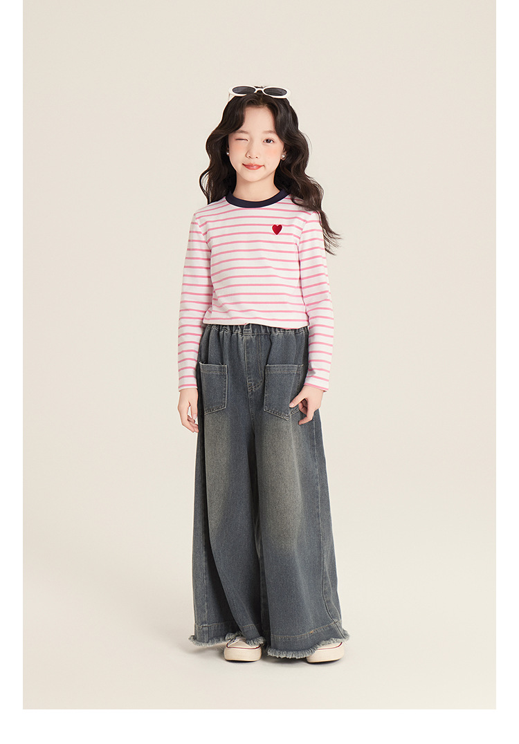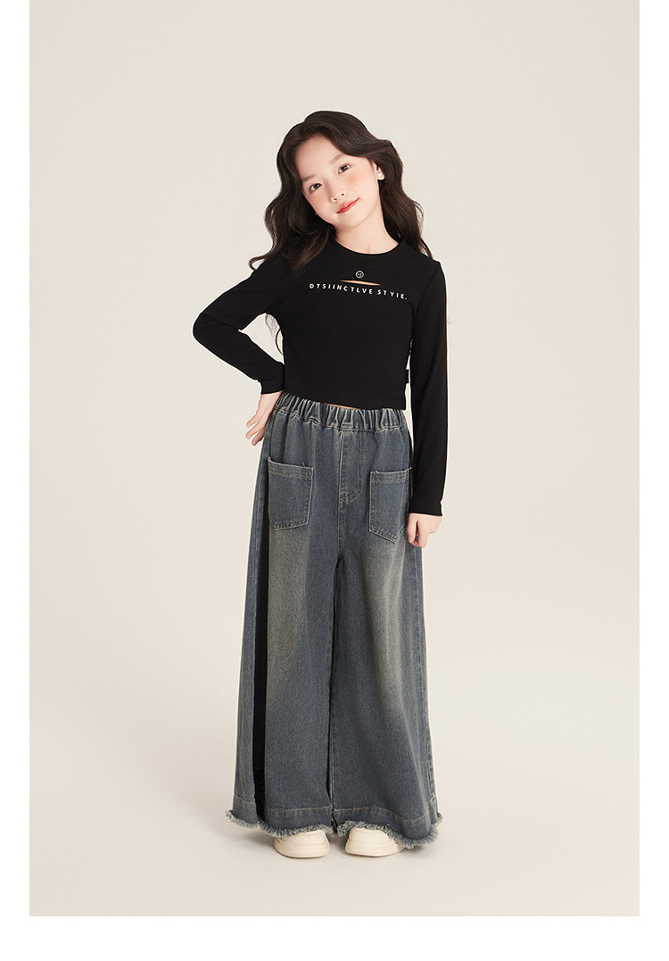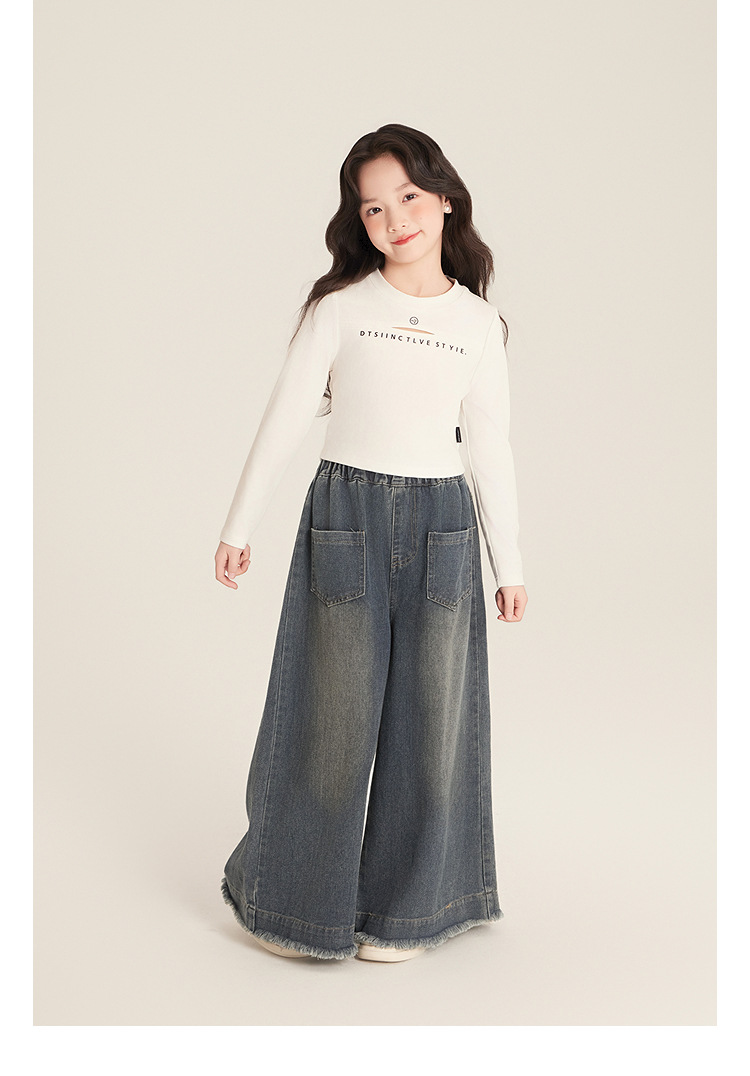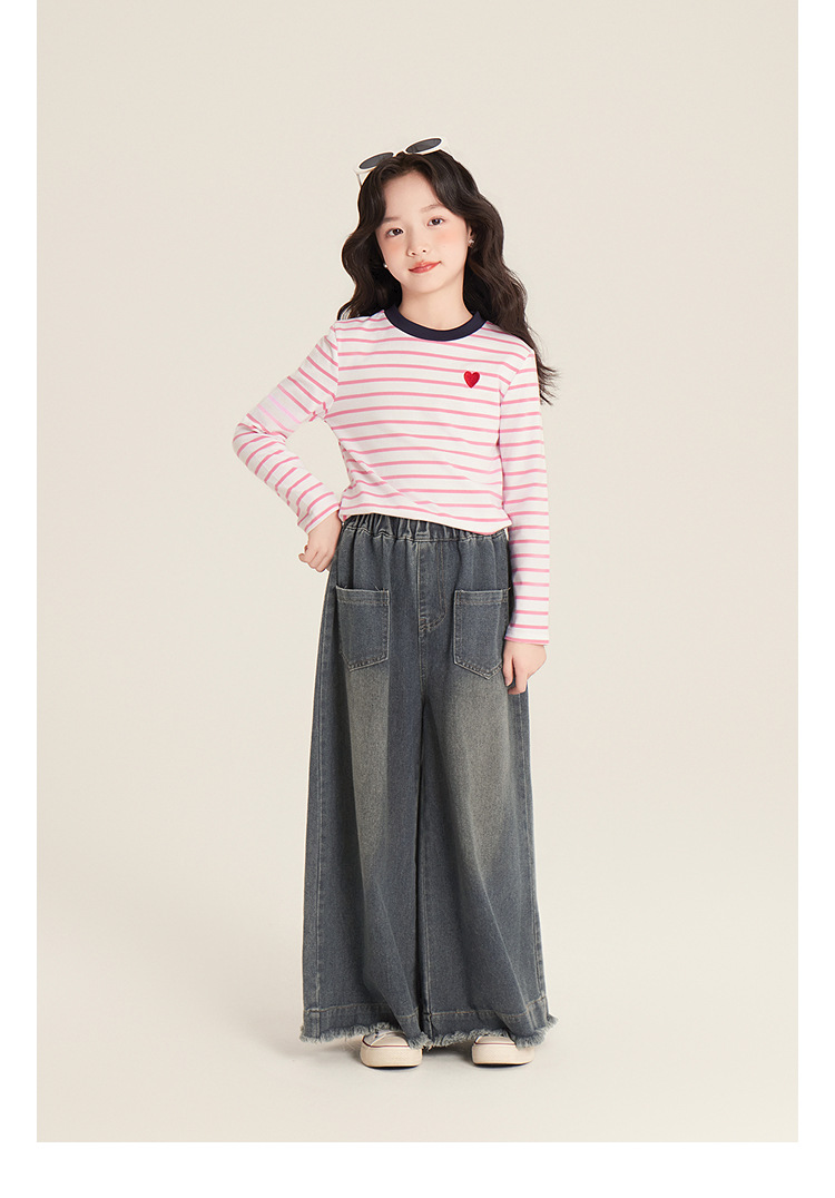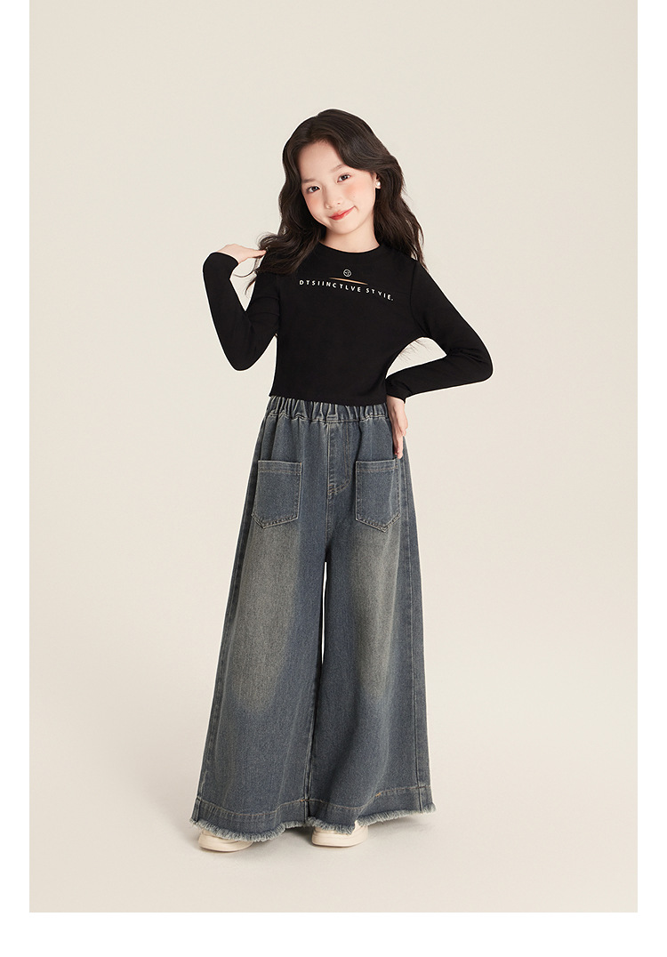 Amybaby 소녀 바지 봄 2025 새로운 우아한 한국 스타일 간단한 스트레이트 랩 와이드 레그 바지