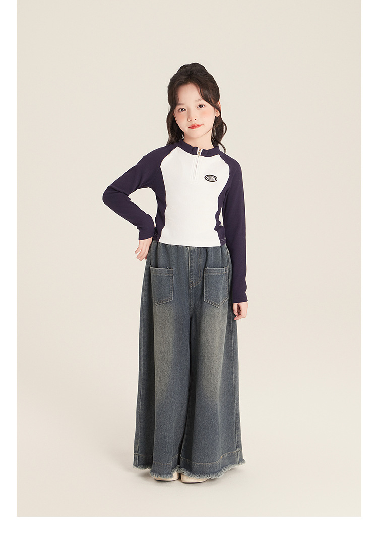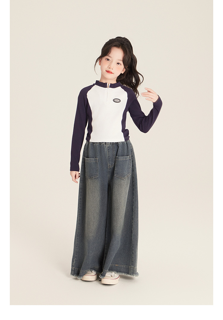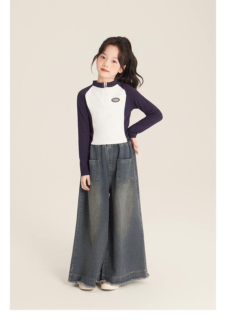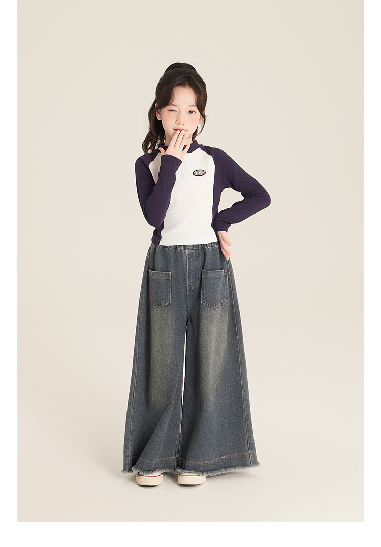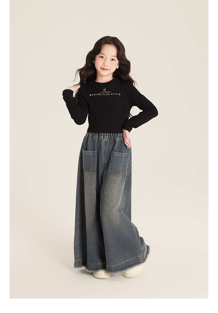 Amybaby 소녀 바지 봄 2025 새로운 우아한 한국 스타일 간단한 스트레이트 랩 와이드 레그 바지