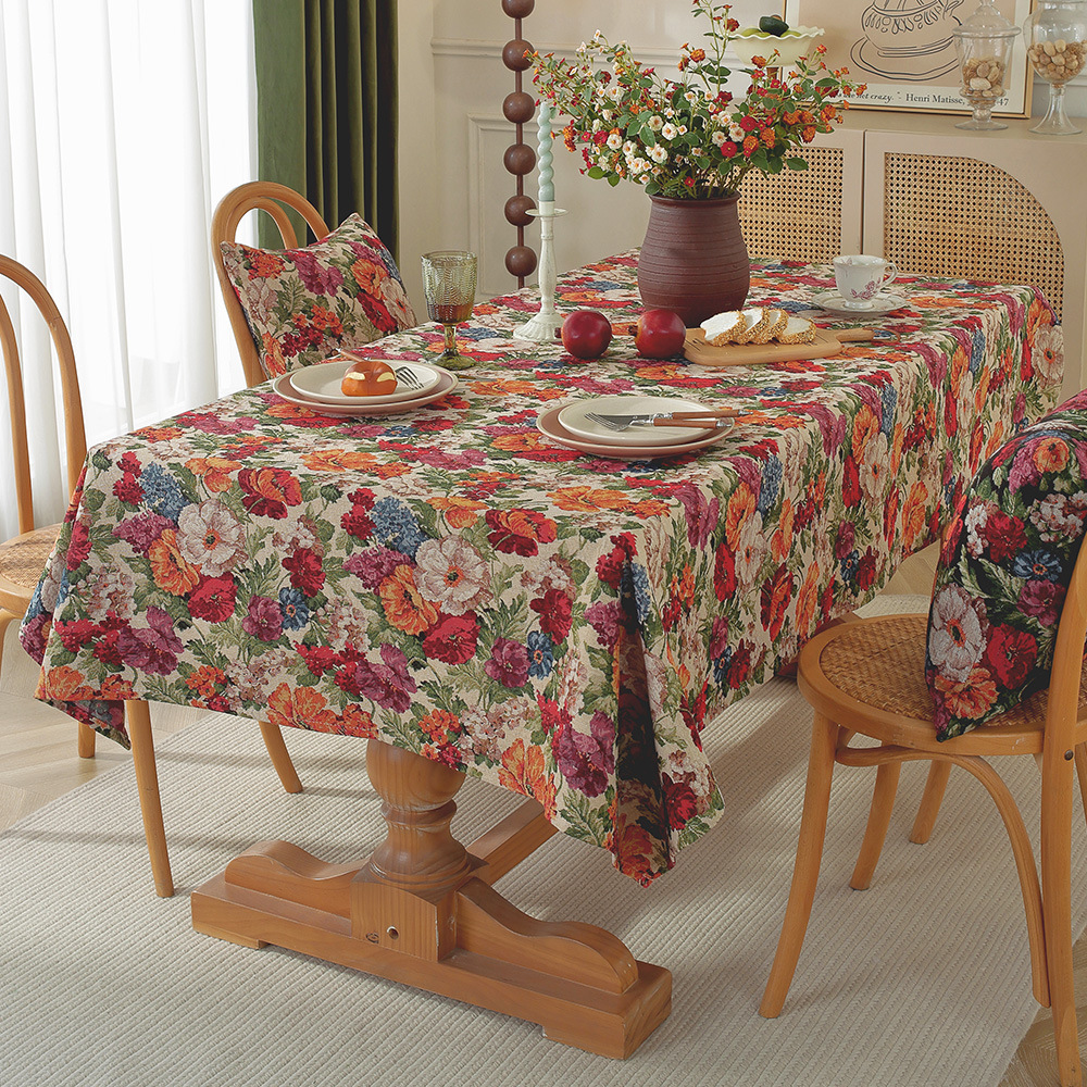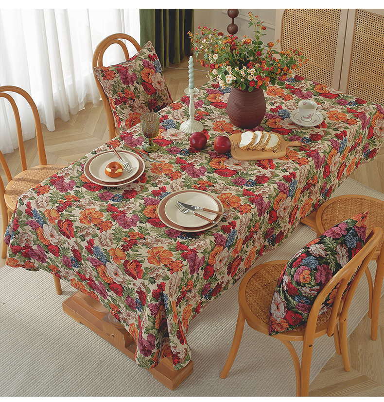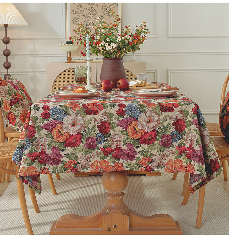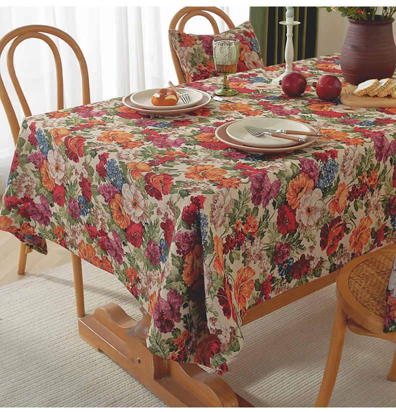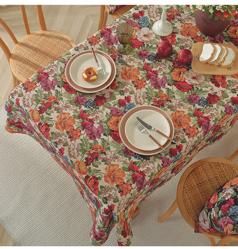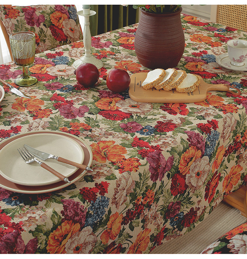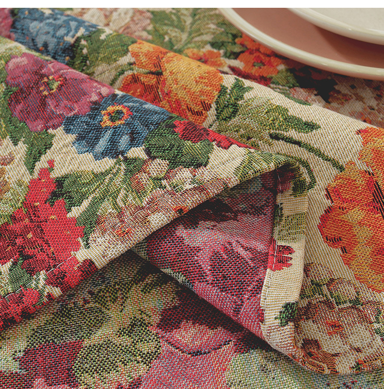 미국 자카드 식탁보 농촌 목가적 인 꽃면 리넨 스타일 식탁 직물 분위기 장식 식탁보 커피 테이블 테이블 식탁보