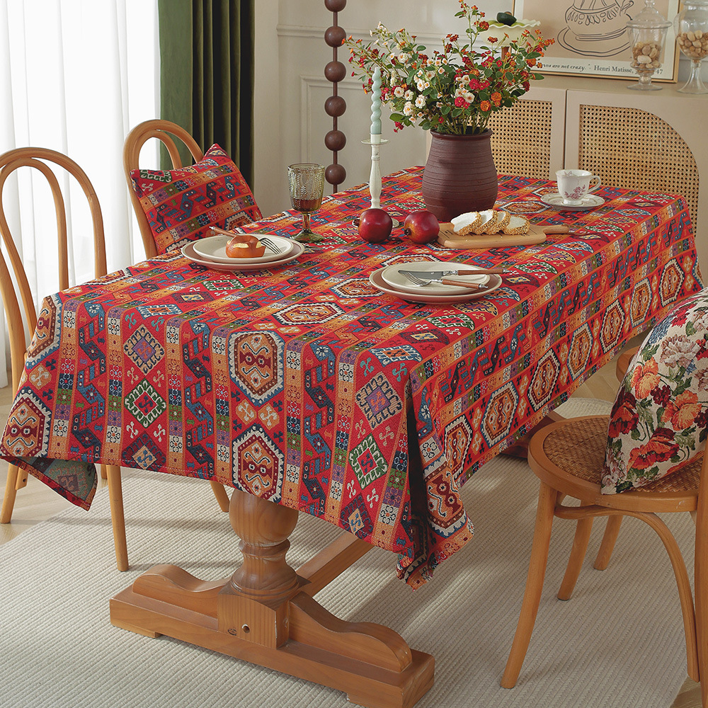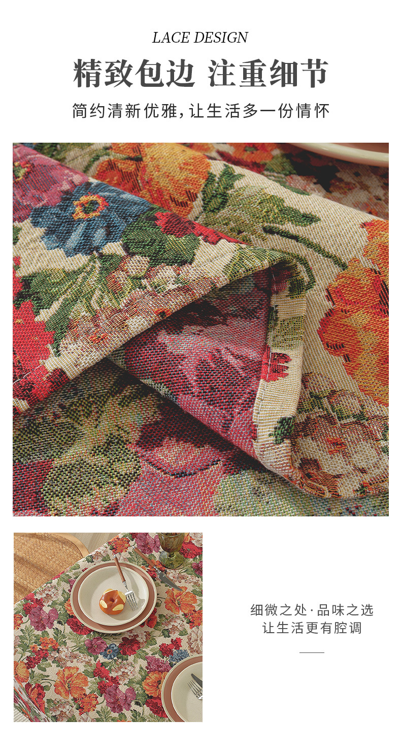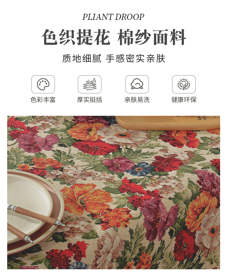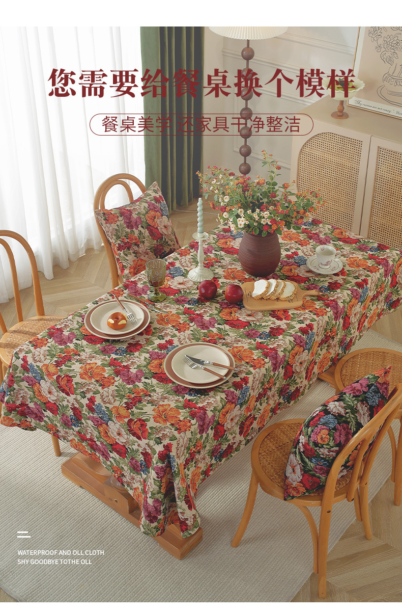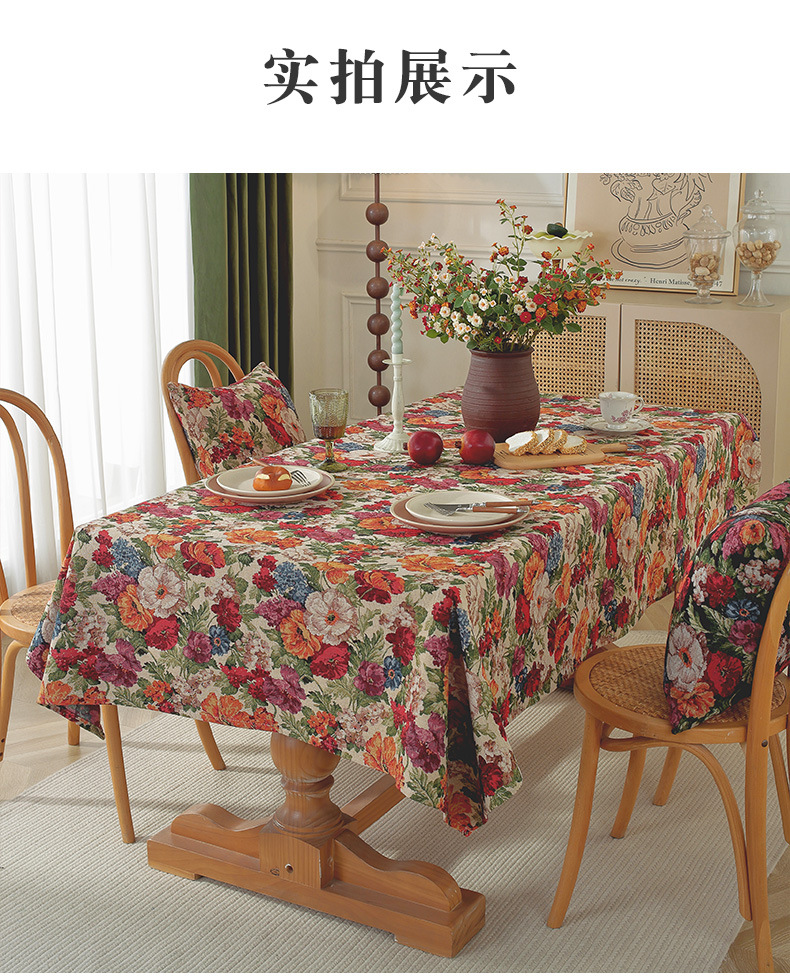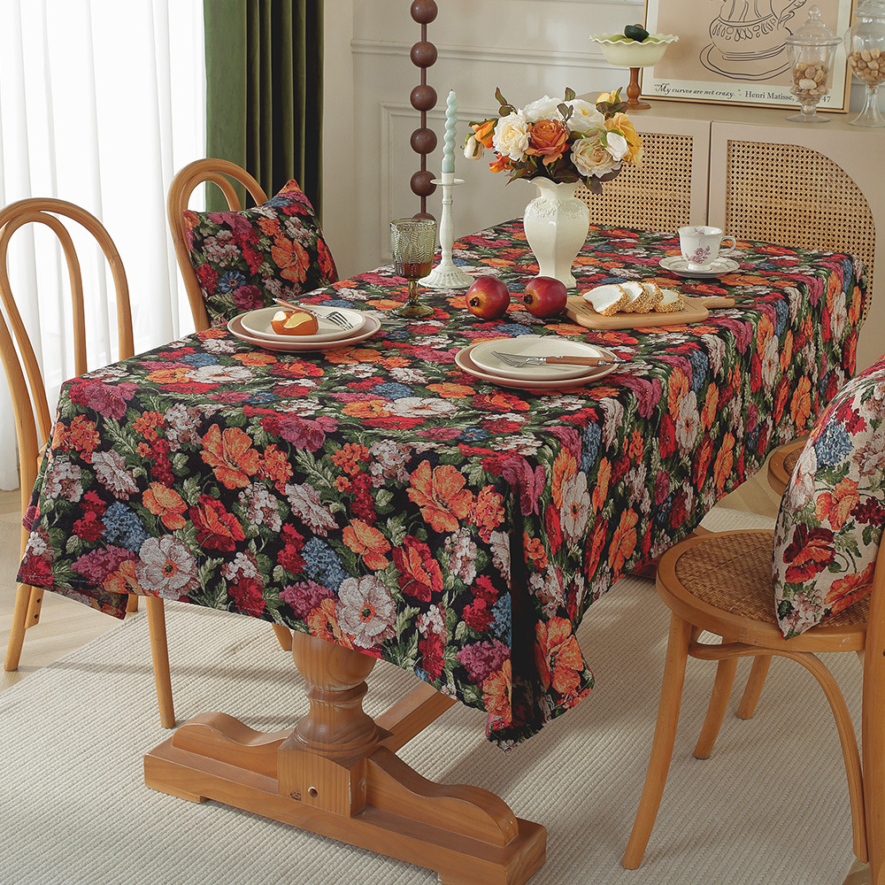 미국 자카드 식탁보 농촌 목가적 인 꽃면 리넨 스타일 식탁 직물 분위기 장식 식탁보 커피 테이블 테이블 식탁보