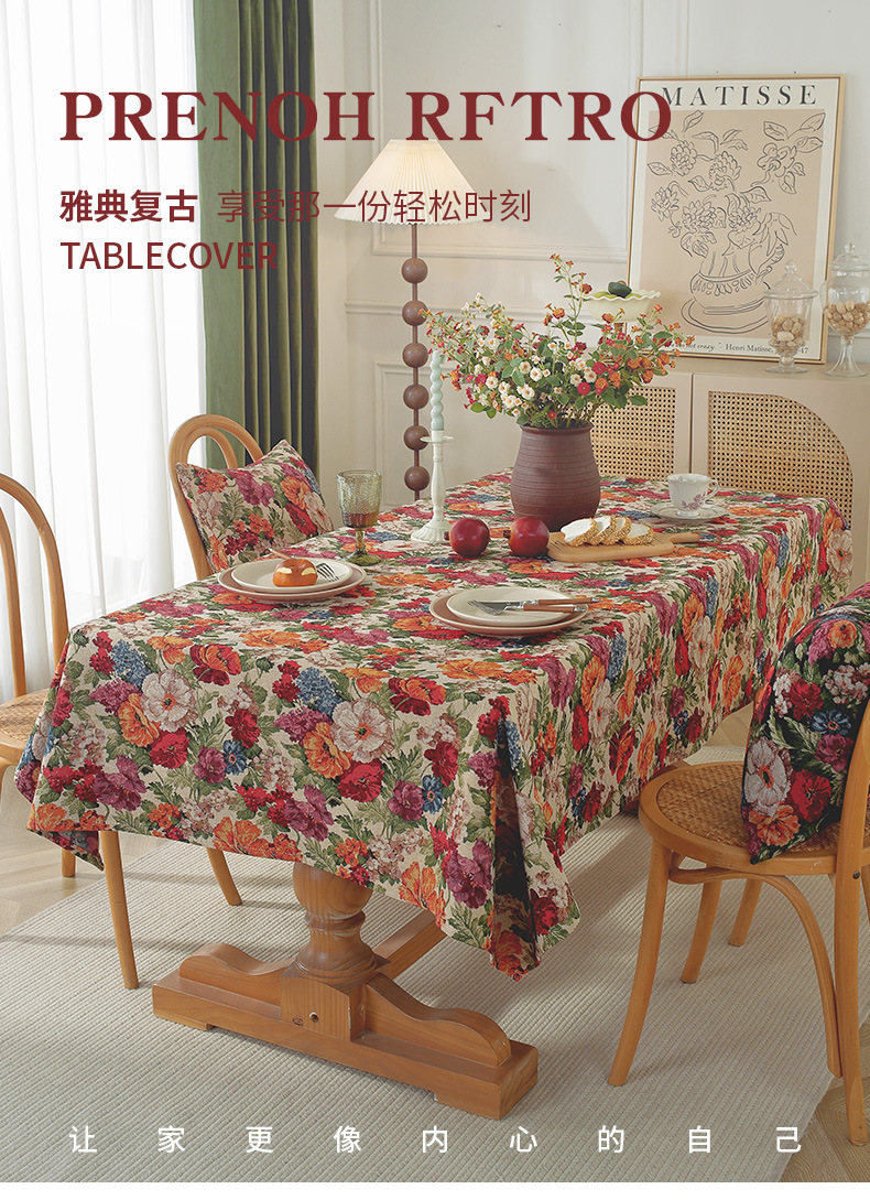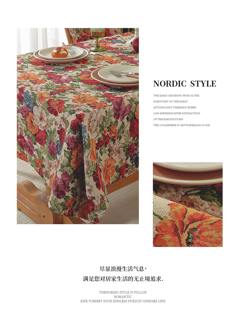 미국 자카드 식탁보 농촌 목가적 인 꽃면 리넨 스타일 식탁 직물 분위기 장식 식탁보 커피 테이블 테이블 식탁보스토어 가기