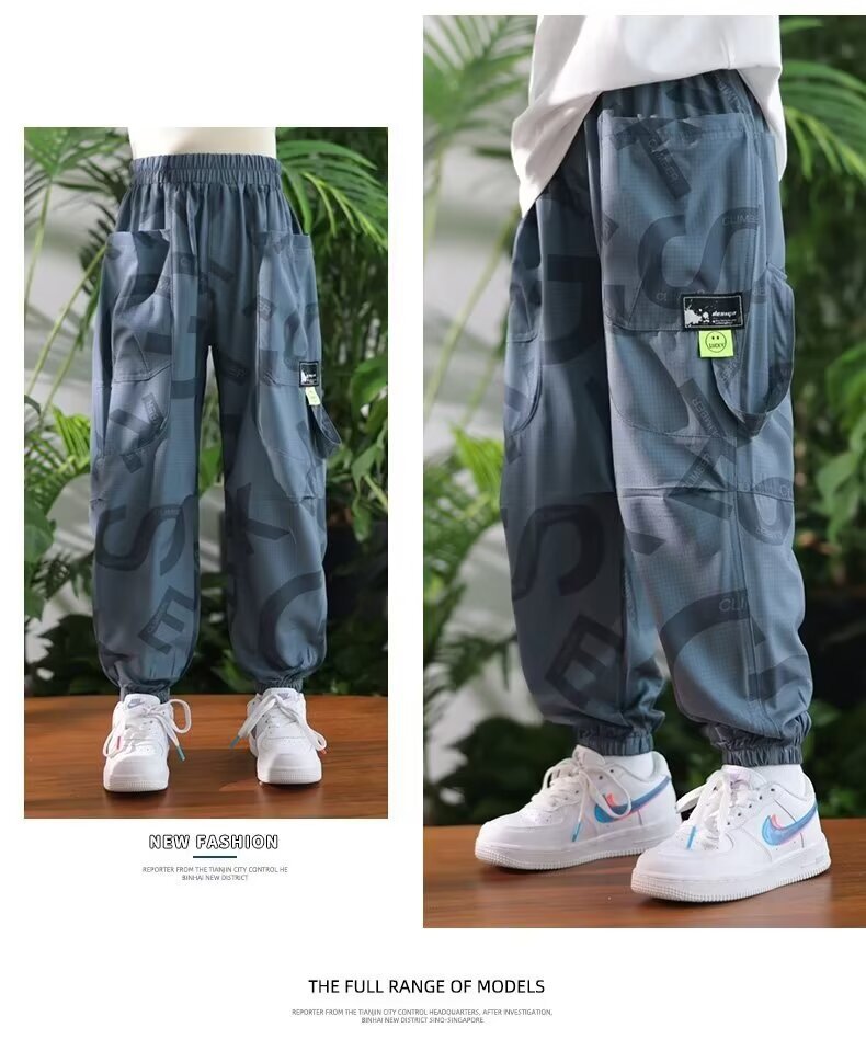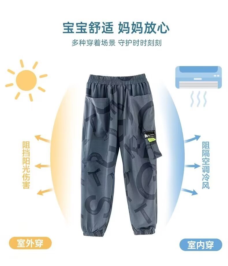 소년의 여름 새로운 느슨한 얼음 실크 모기 방지 바지 큰 어린이 바지 부드러운 피부 친화적 인 시원한 편안한 다리 바지스토어 가기