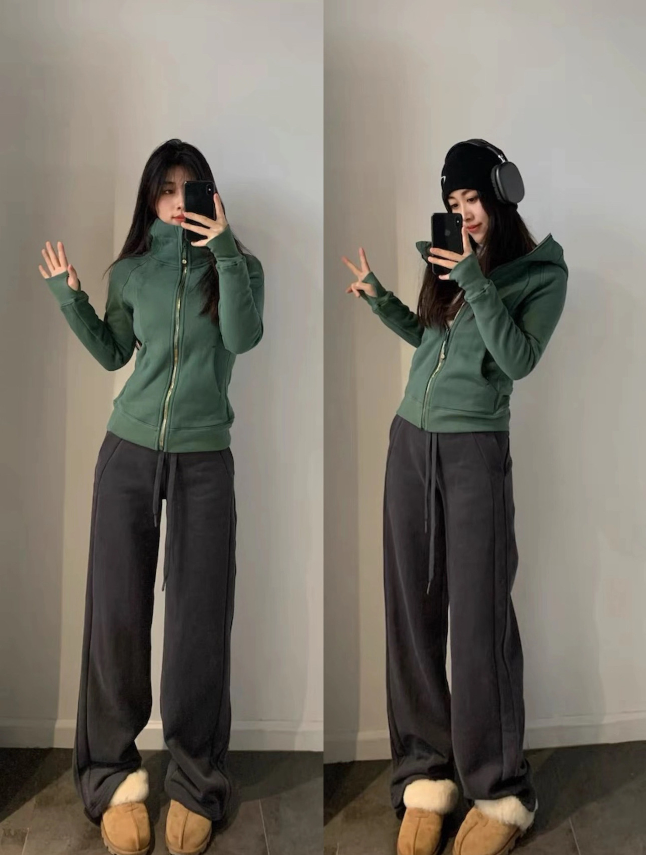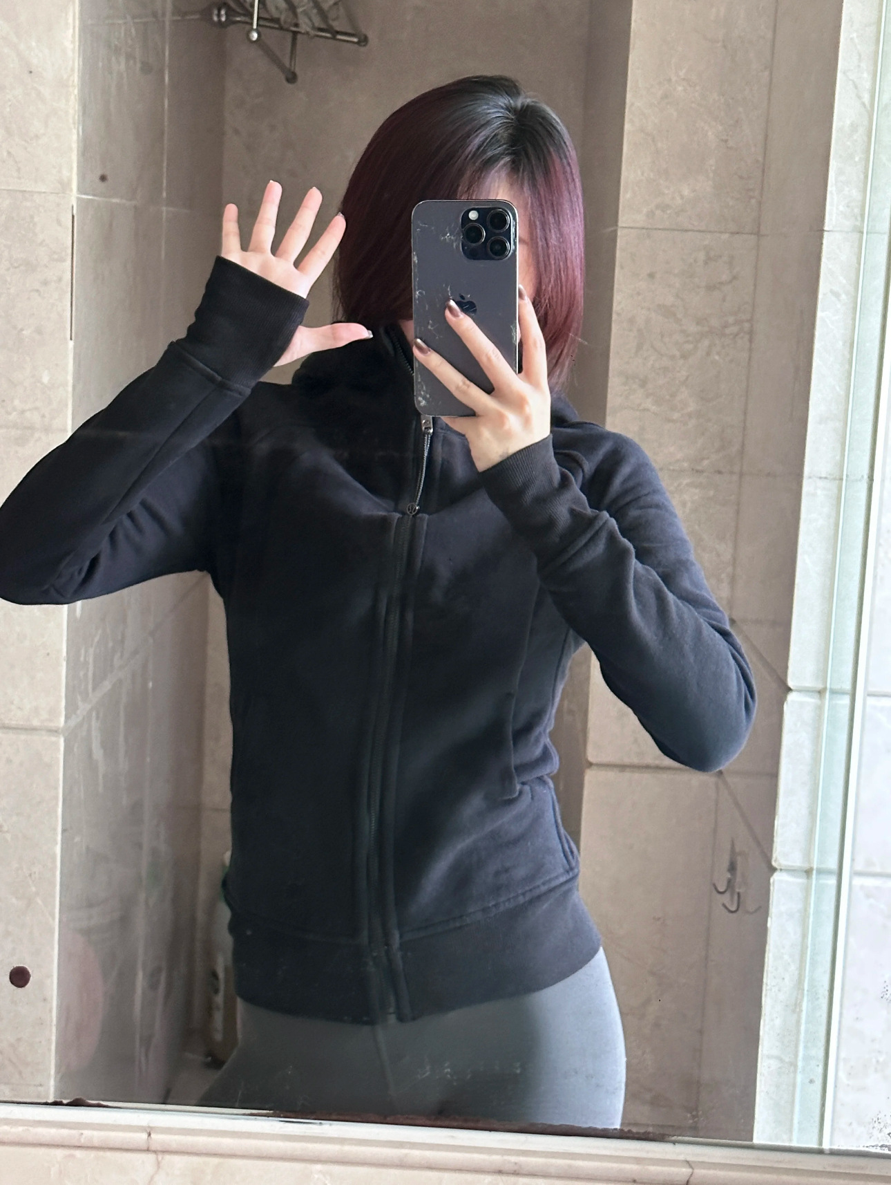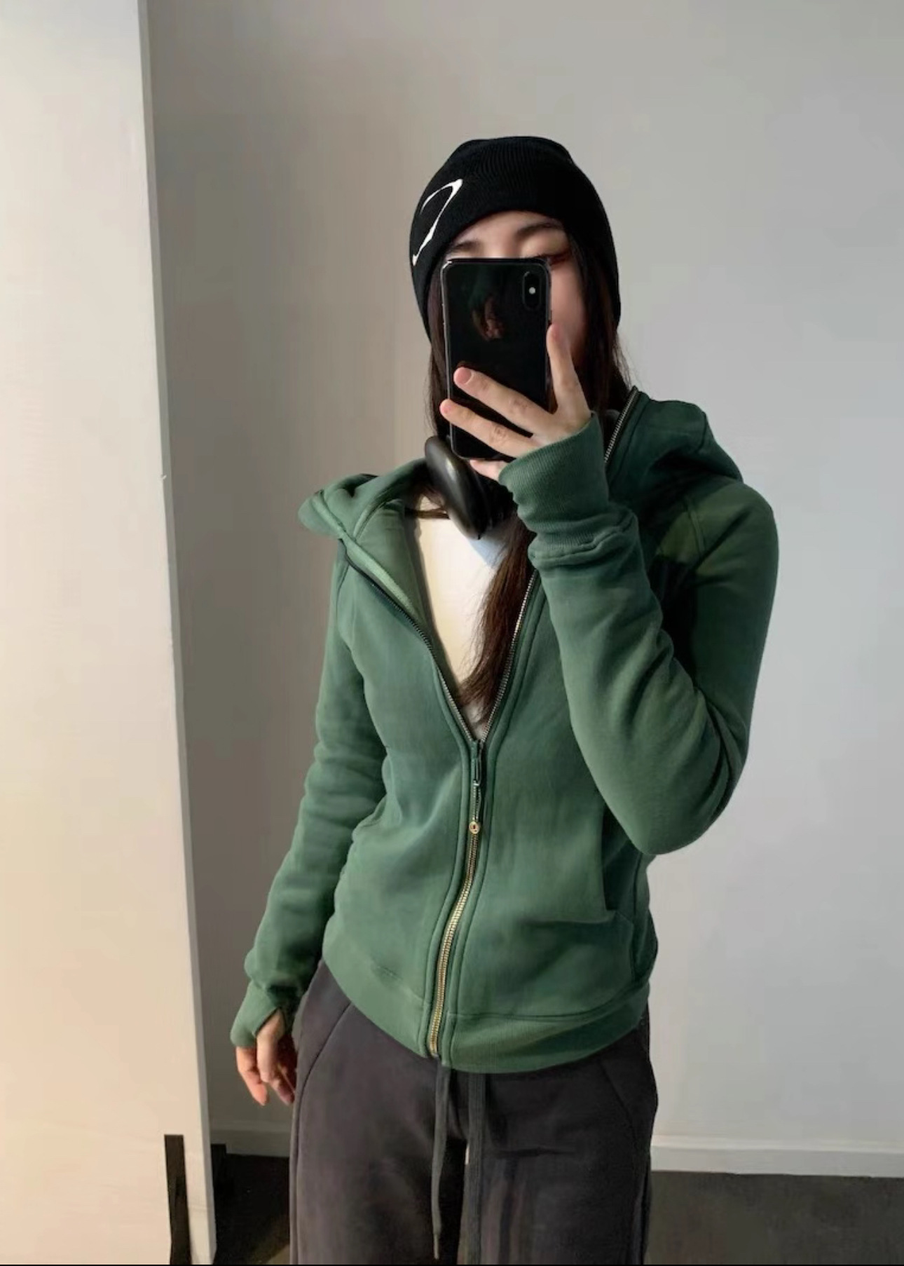 오리지널 루루 스쿠바 스타일 스포츠 요가 후드티 슬림핏 후드 가디건 여성용 플리스 안감 보온 상의스토어 가기