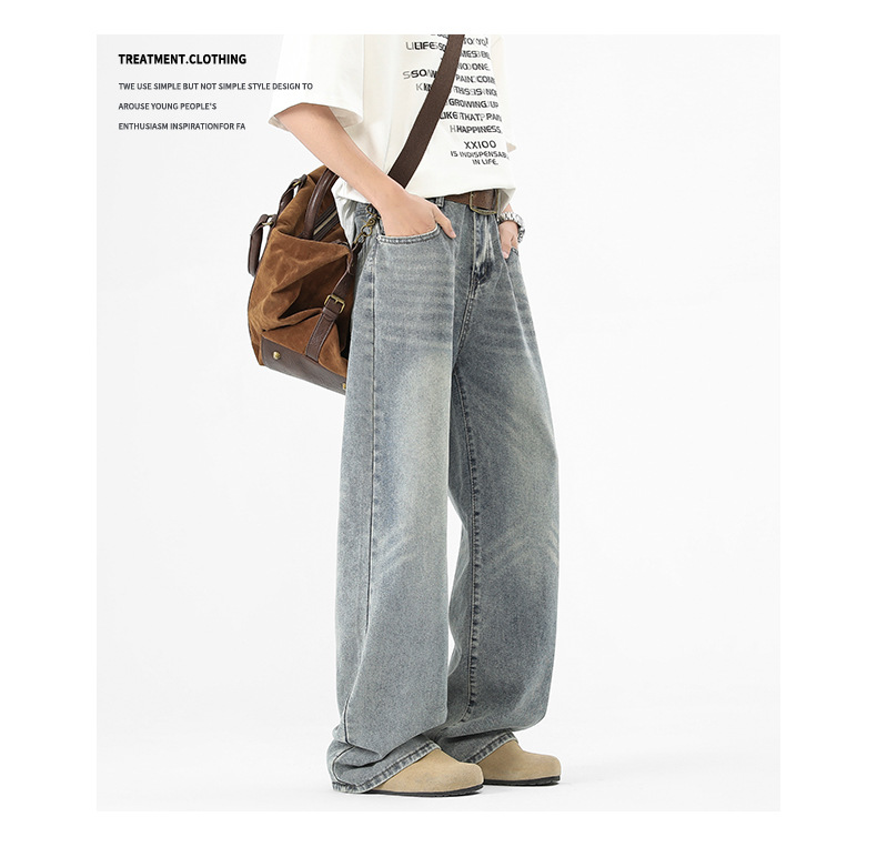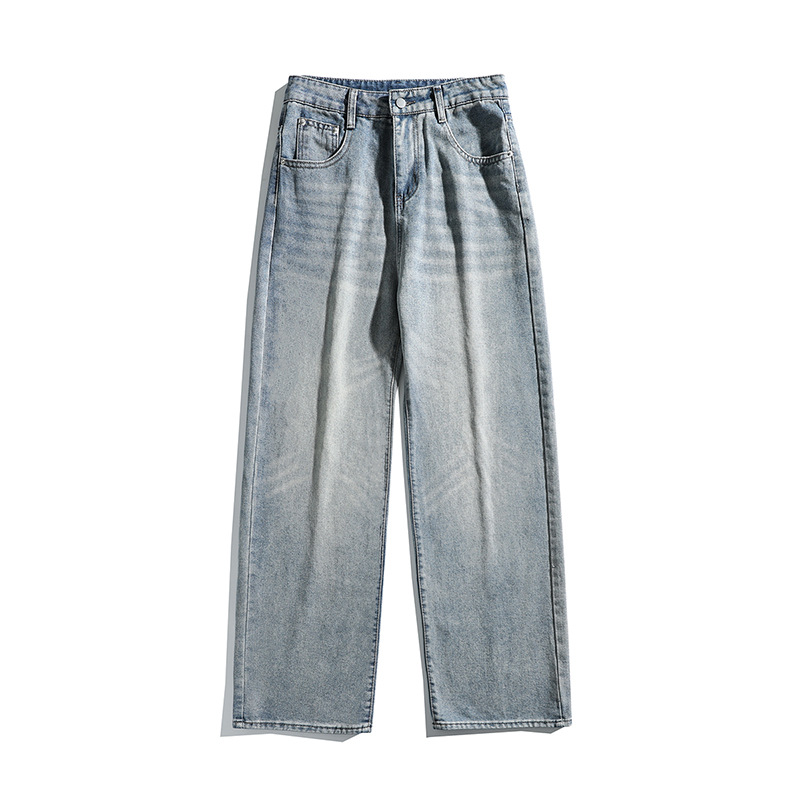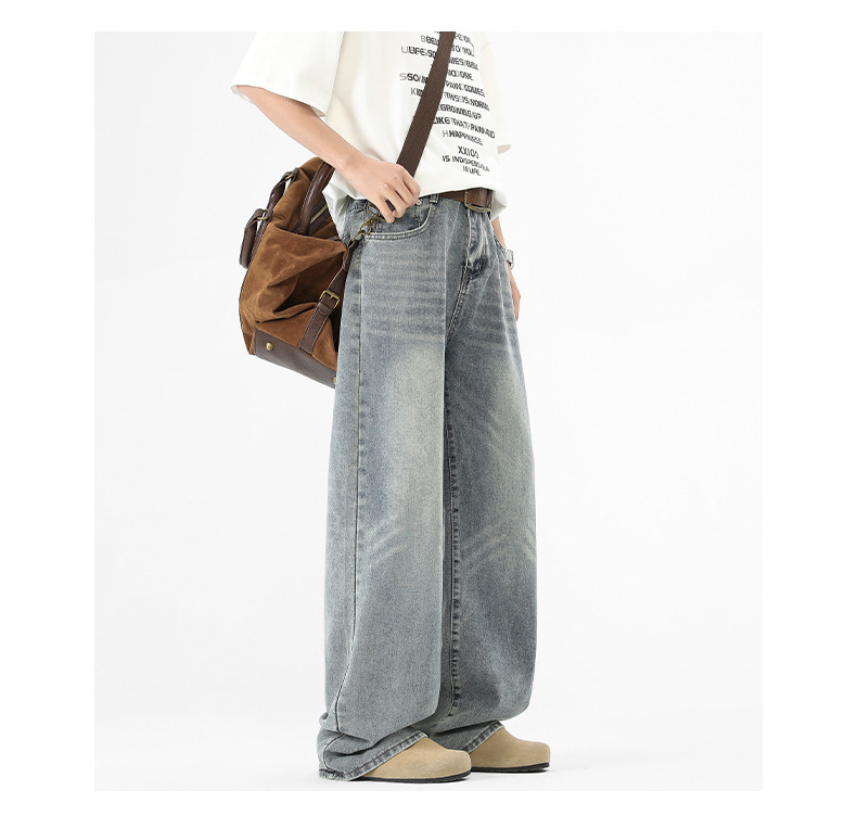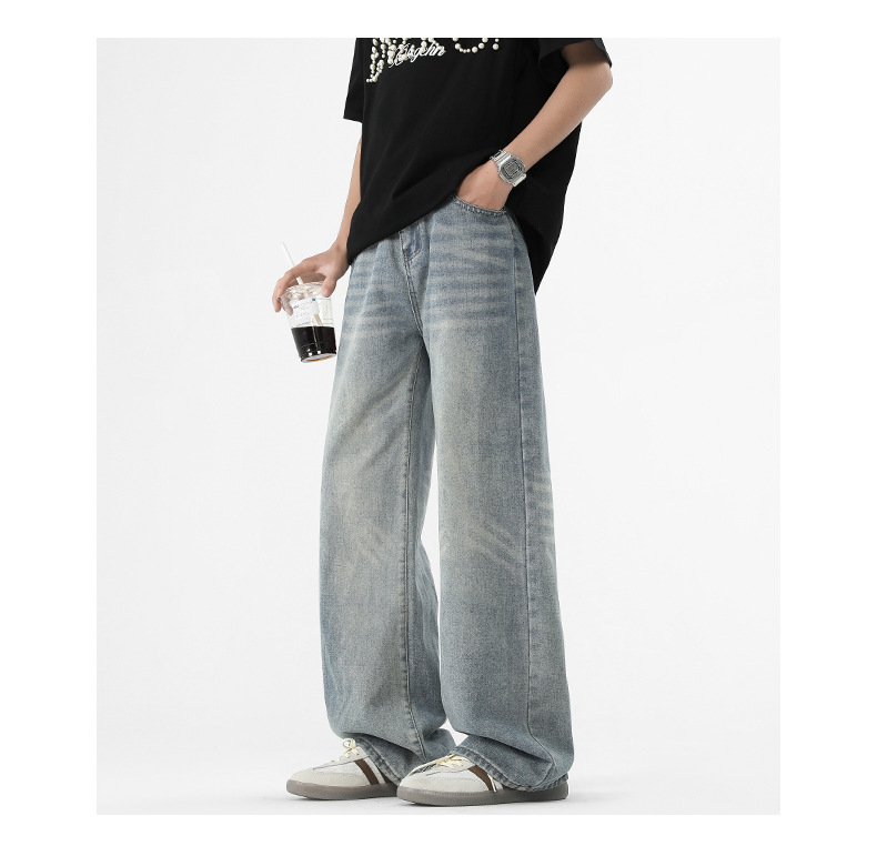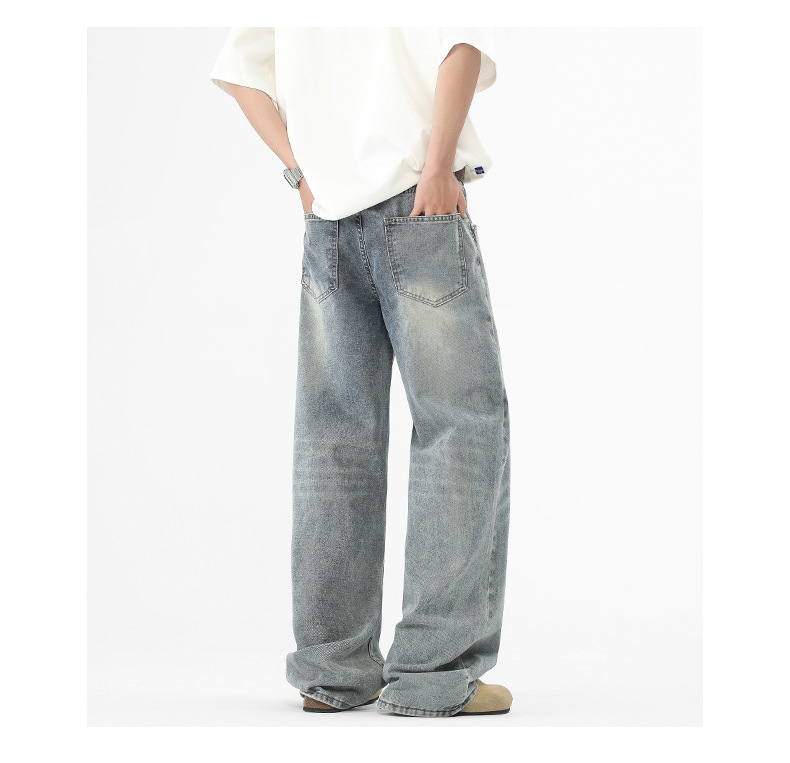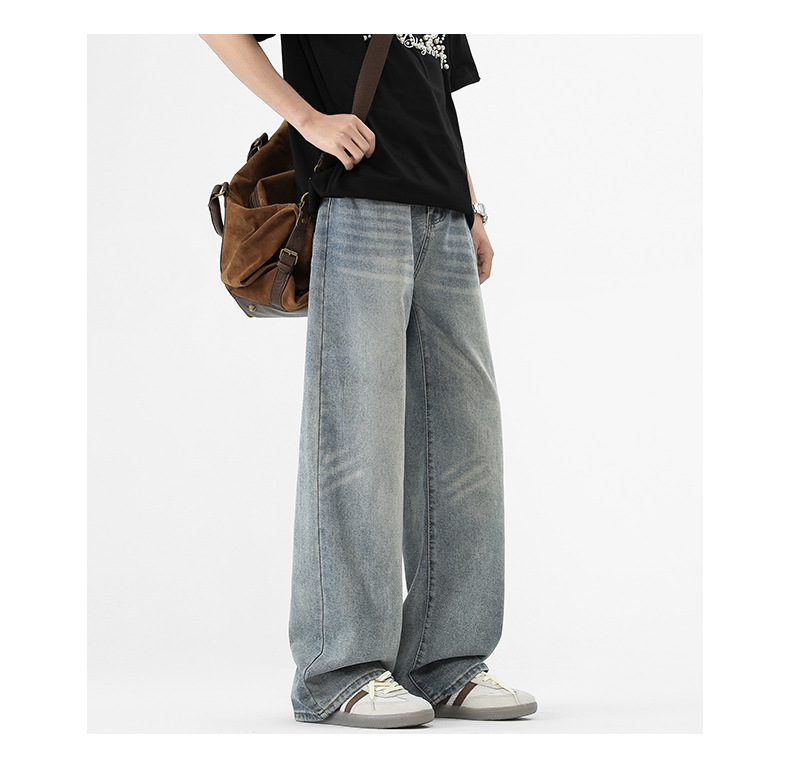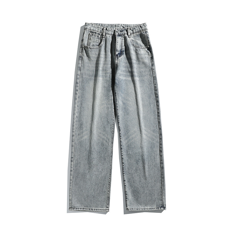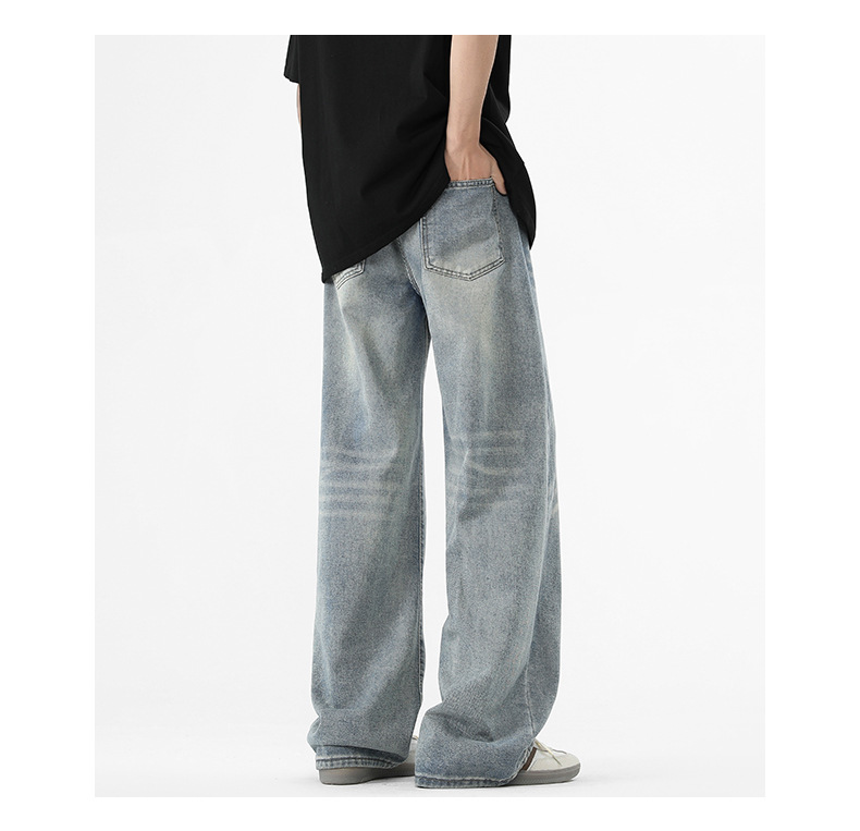 아메리칸 스타일 하이 스트리트 트렌디 브랜드 청바지 남성 봄과 가을 새로운 느슨한 캐주얼 와이드 레그 스트레이트 튜브 세척 오래 된 긴 바지스토어 가기