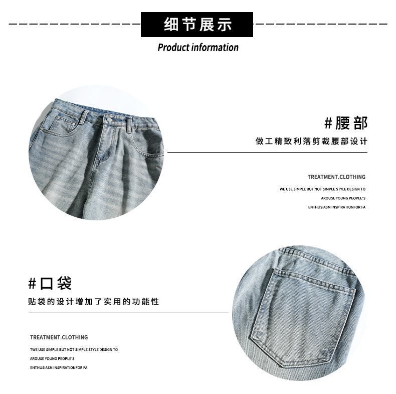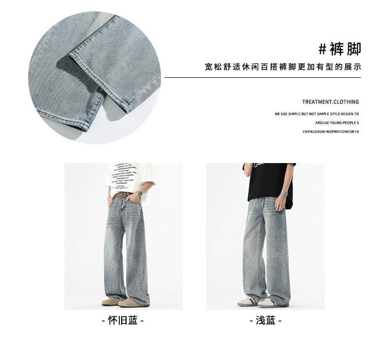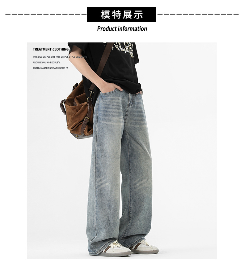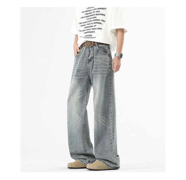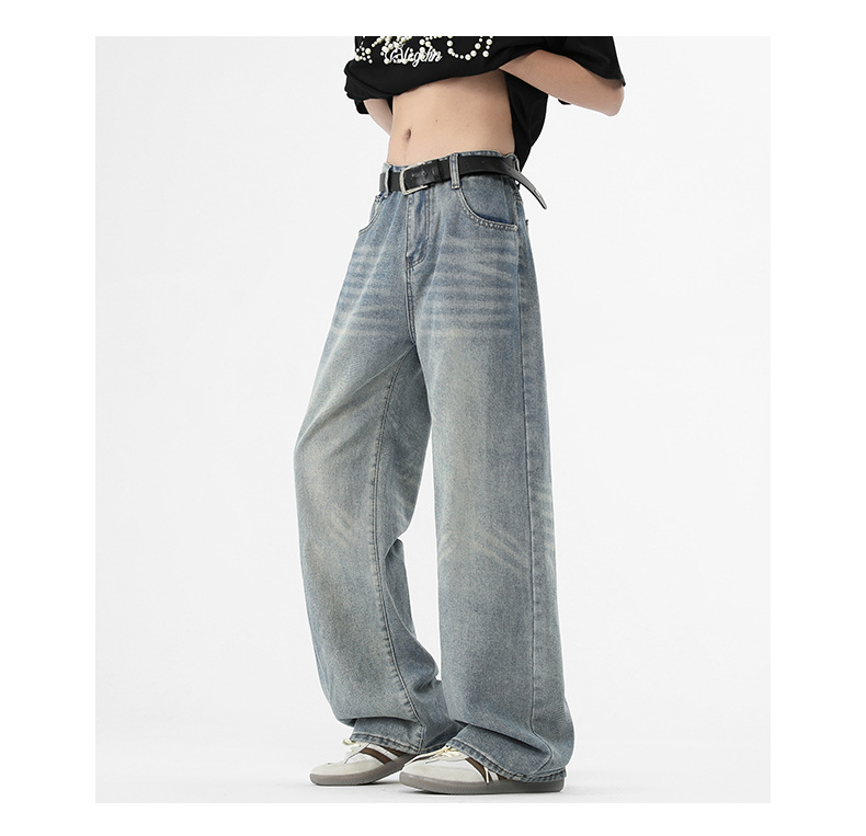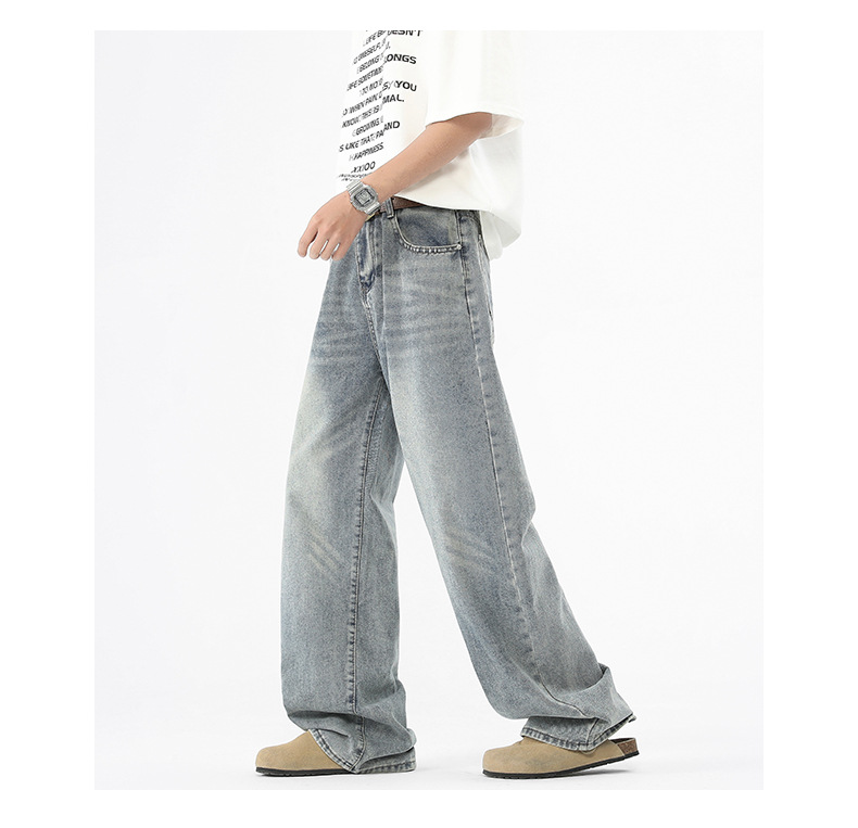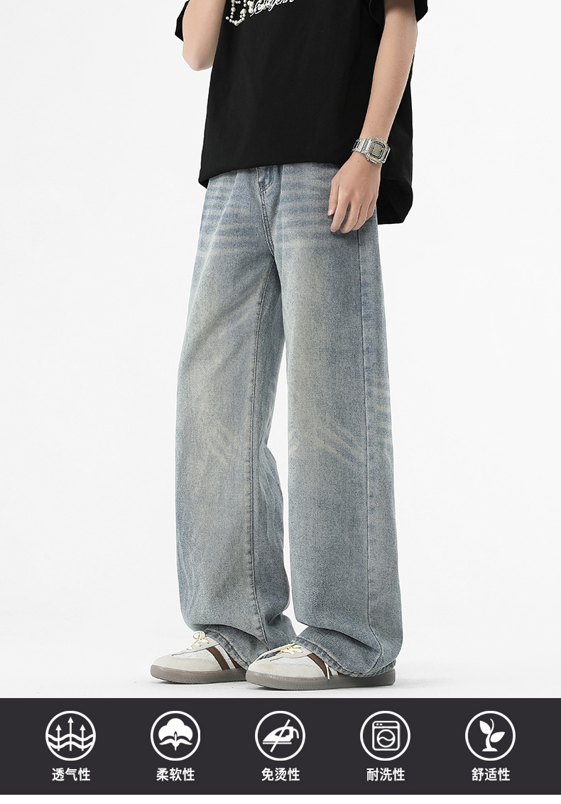 아메리칸 스타일 하이 스트리트 트렌디 브랜드 청바지 남성 봄과 가을 새로운 느슨한 캐주얼 와이드 레그 스트레이트 튜브 세척 오래 된 긴 바지스토어 가기