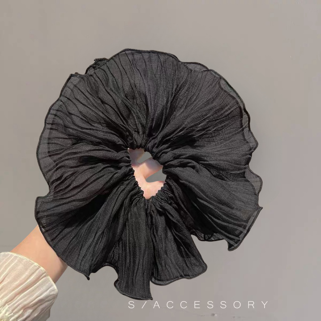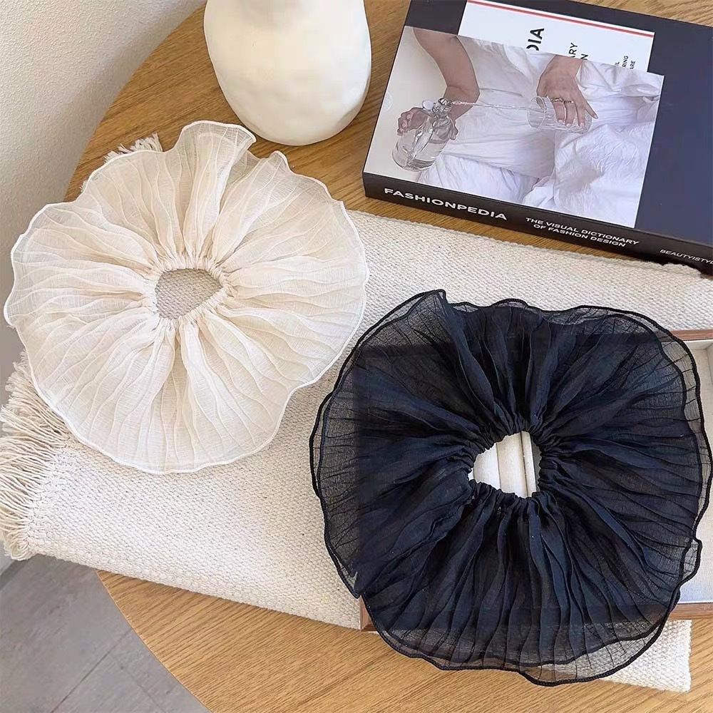 한국 접힌 슈퍼 대형 헤어 링 고급 빅 볼 링 흑백 헤어 로프 헤드 플라워 올 매치 헤어 액세서리 간단한 빅 볼 헤어 로프스토어 가기