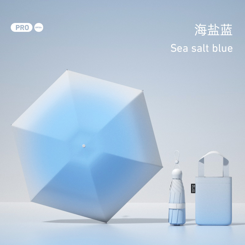 • 8본 그라데이션 씨솔트 블루 [업그레이드된 보강 + 고출력 자외선 차단] 플라스틱 포장 - 무료 휴대용 우산 커버