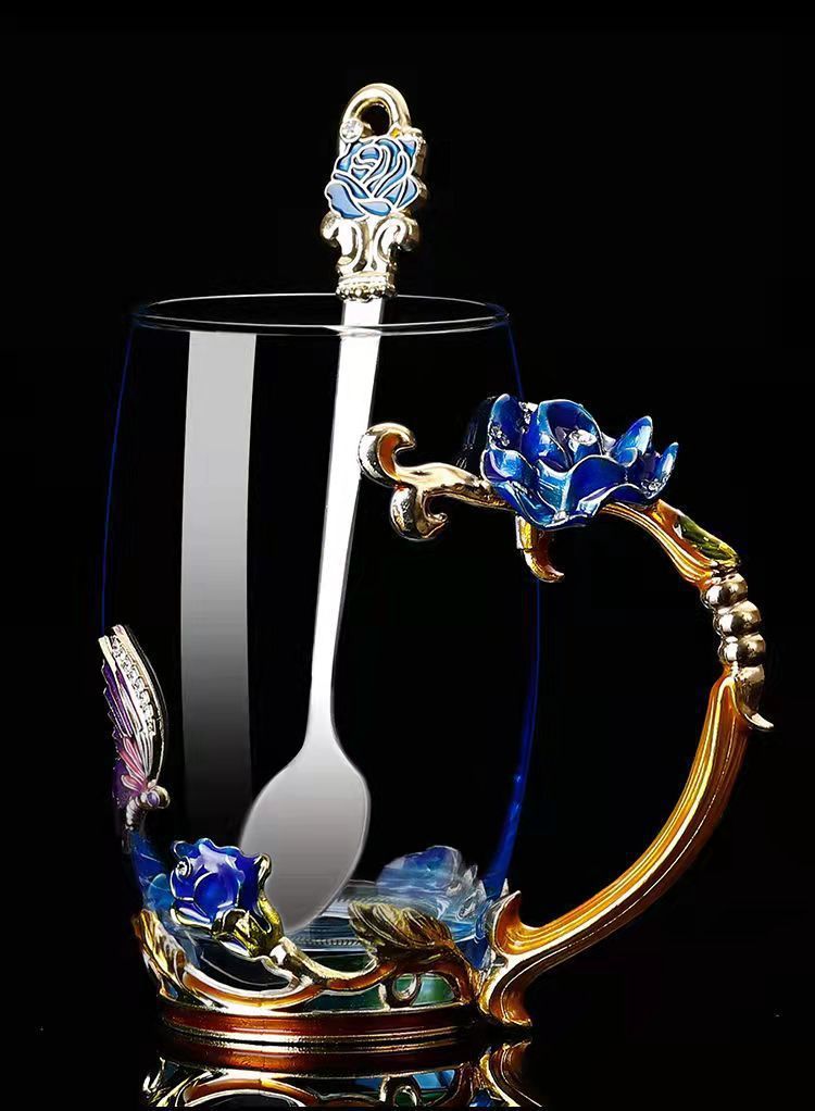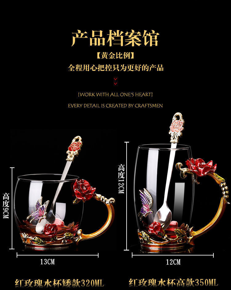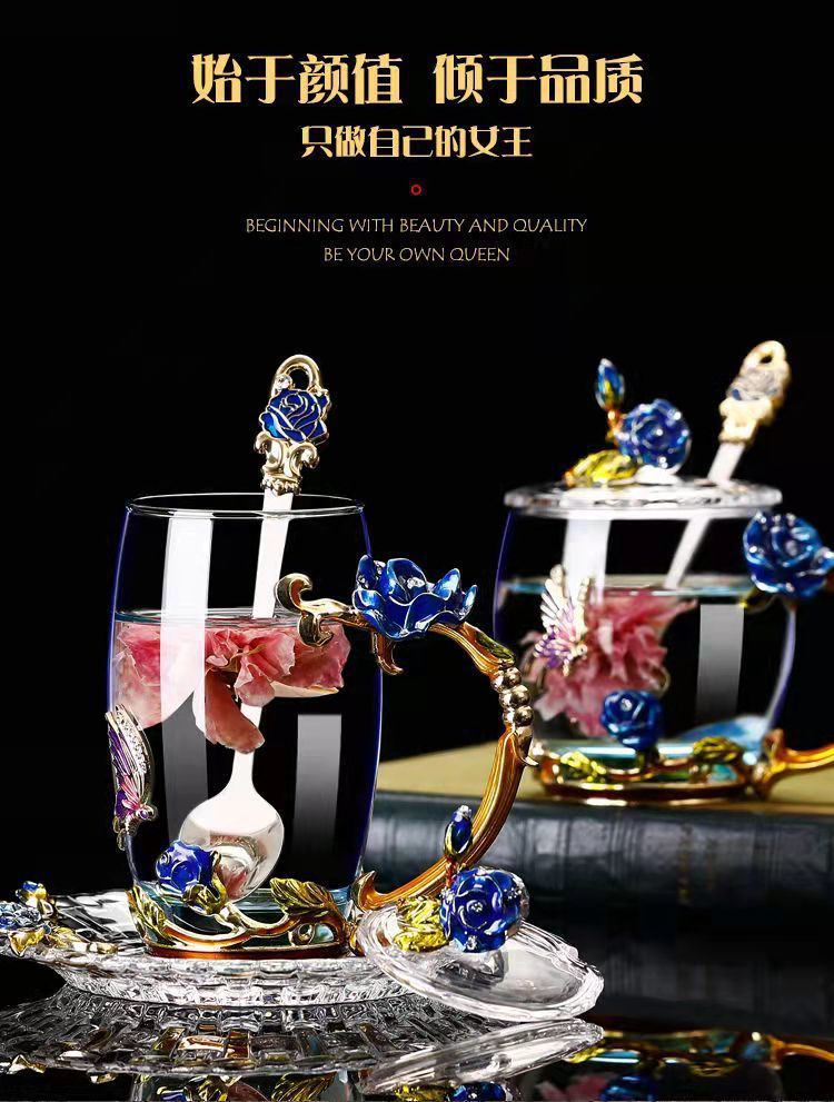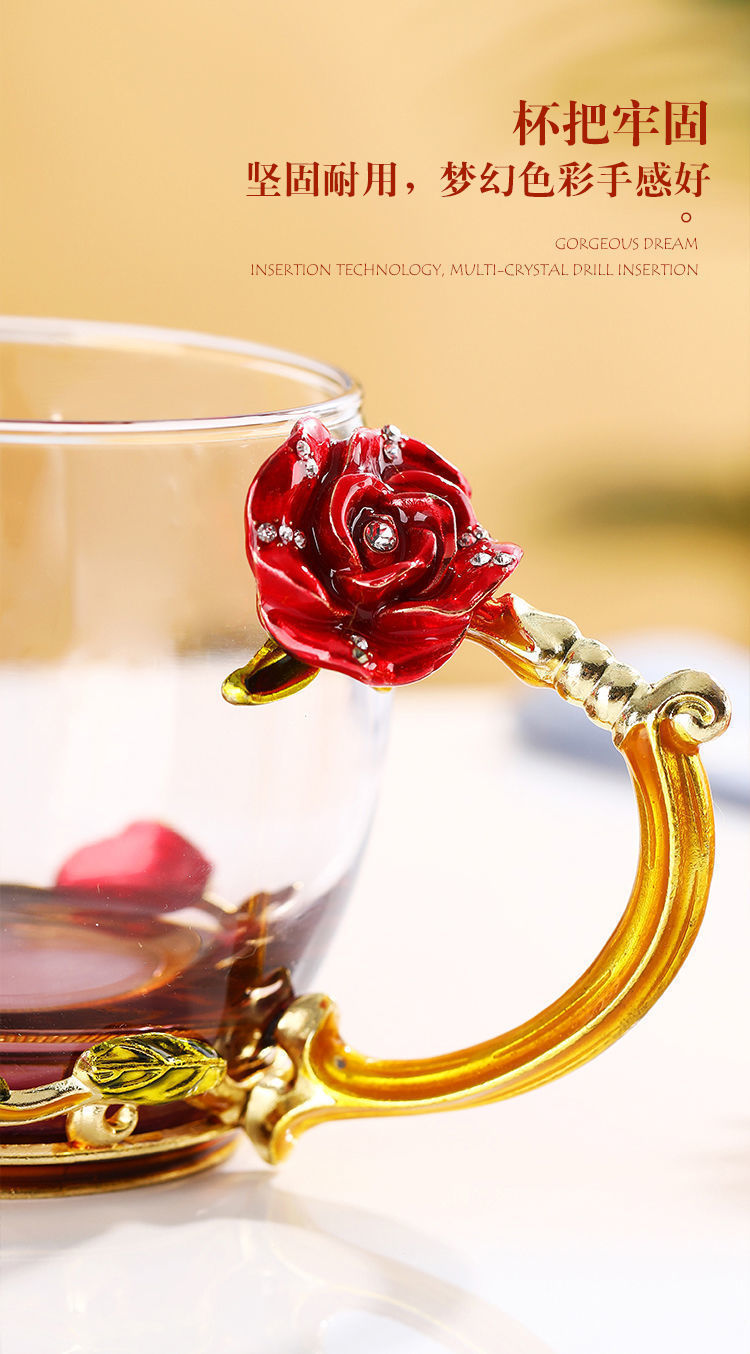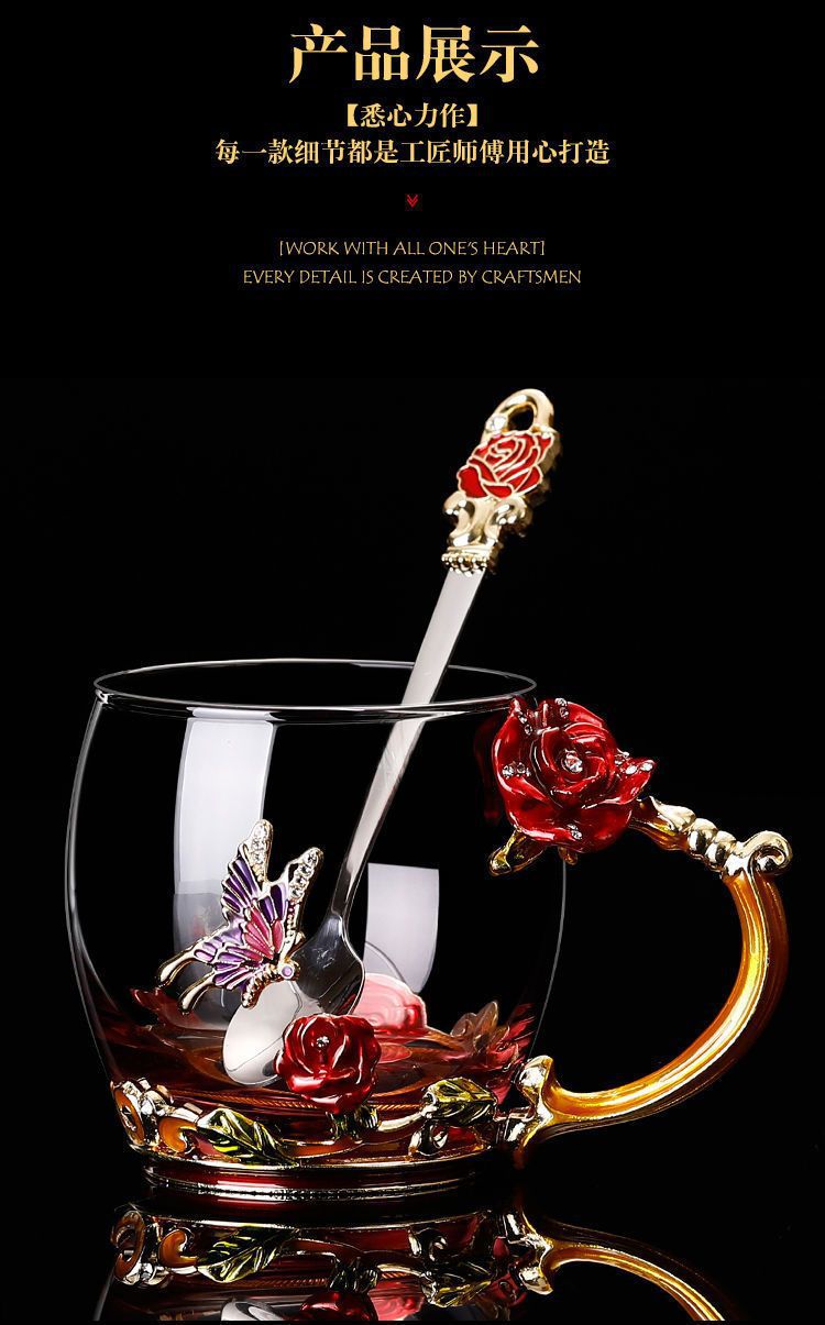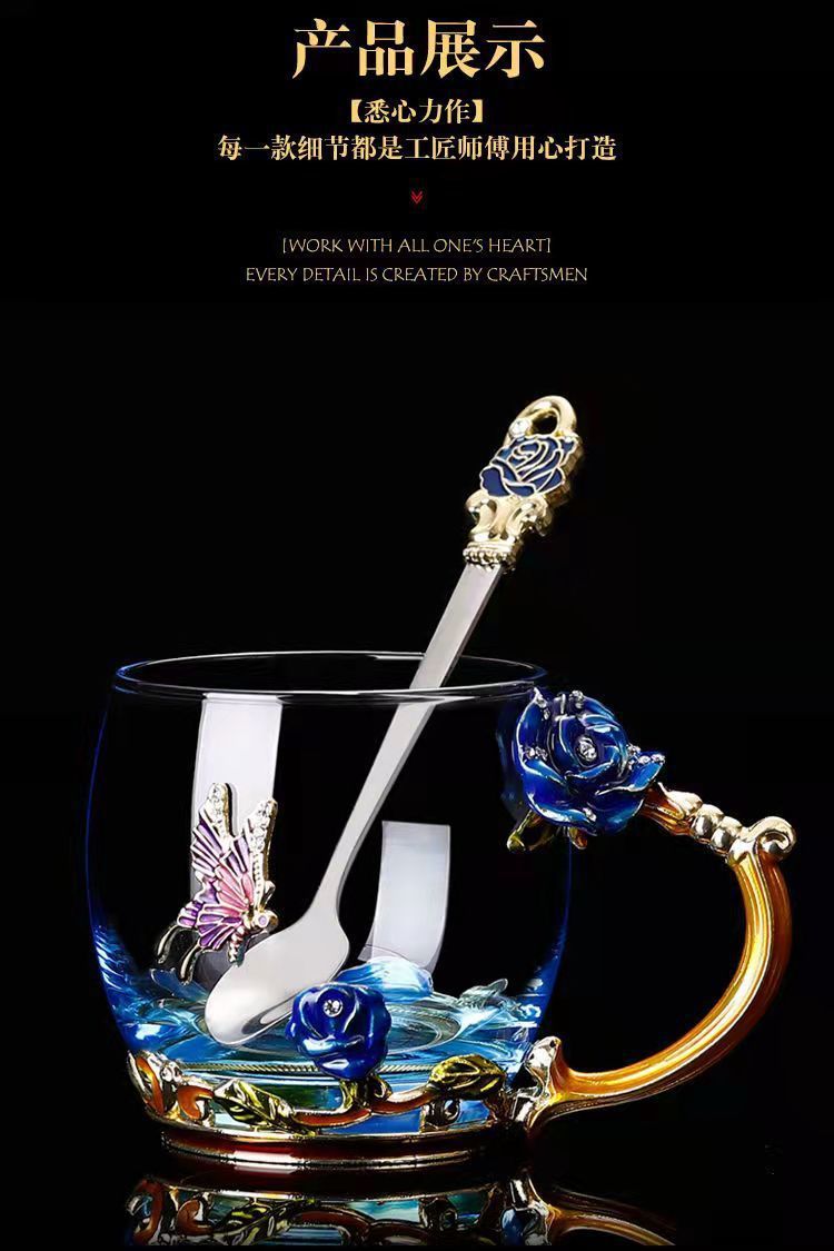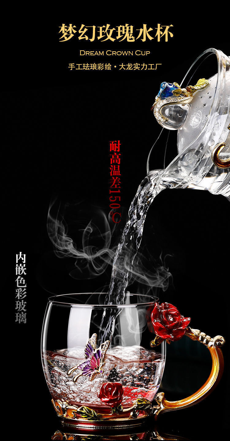 에나멜 컬러 워터 컵 창조적 인 높은 색상 값 높은 온도 저항 커피 컵 어린이 꽃 티 컵 유리 물 컵 모양의 Wo Yu
