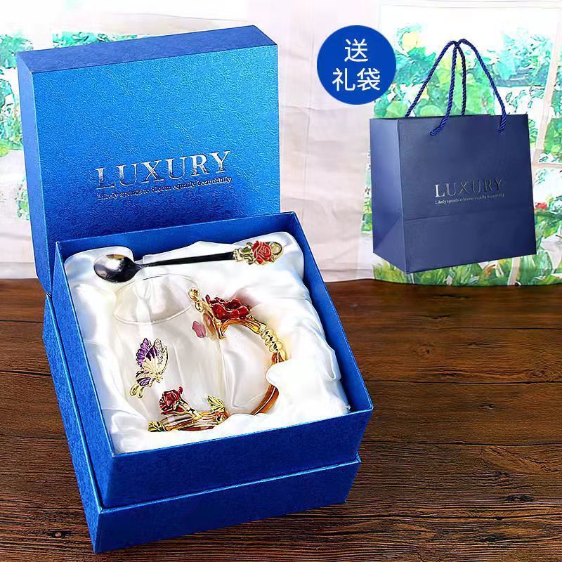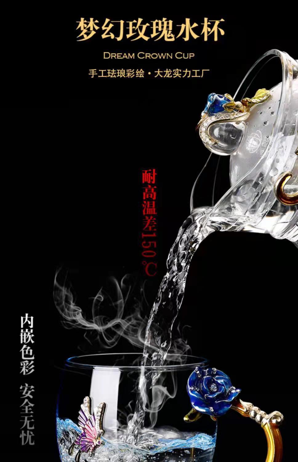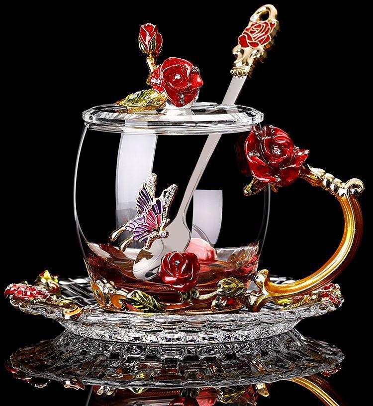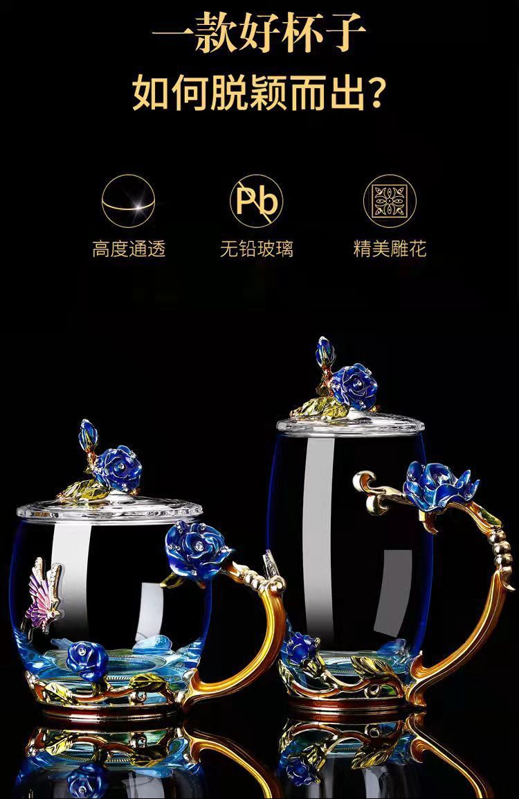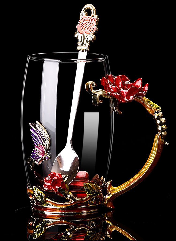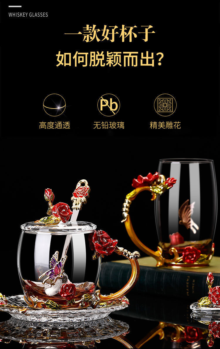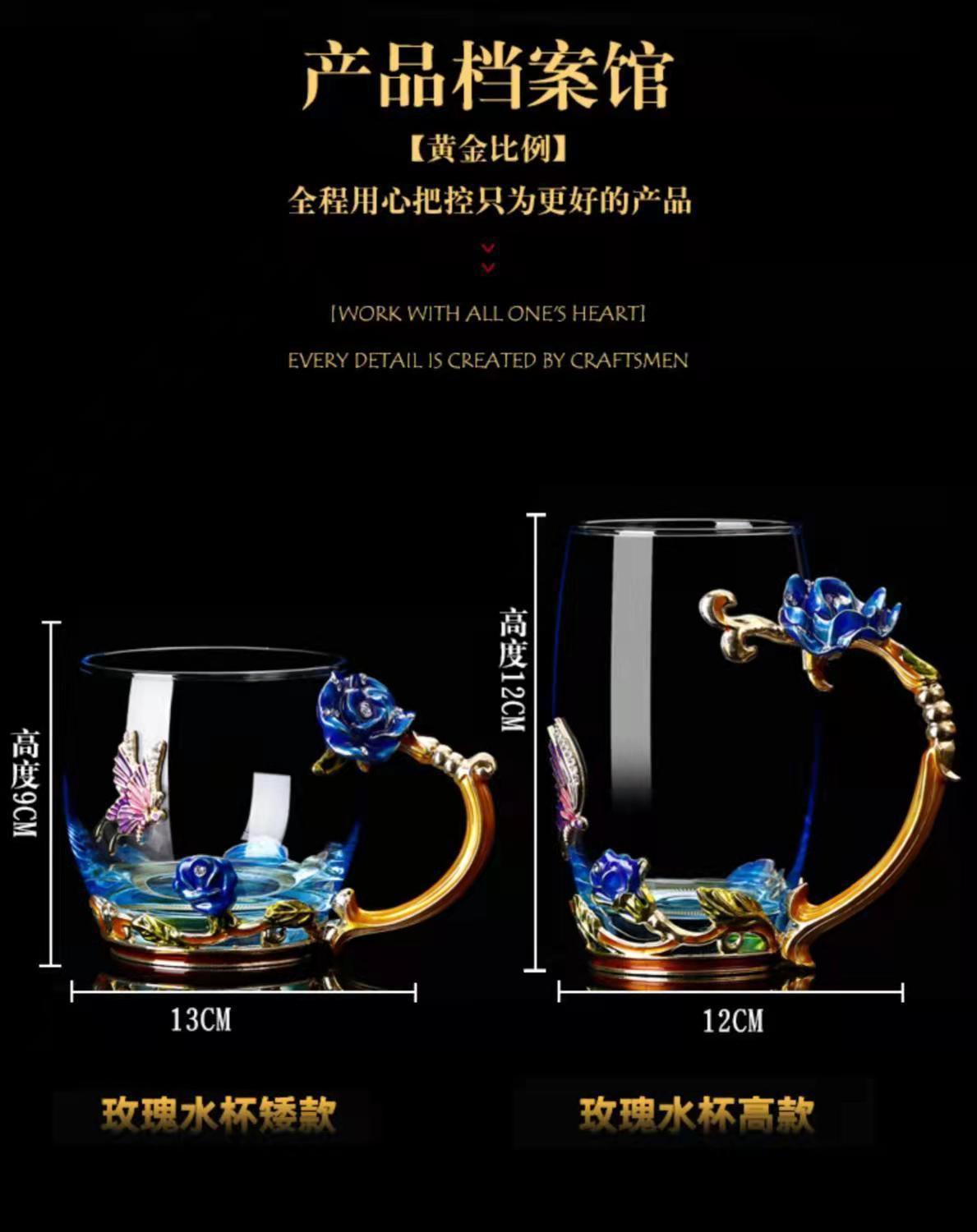 에나멜 컬러 워터 컵 창조적 인 높은 색상 값 높은 온도 저항 커피 컵 어린이 꽃 티 컵 유리 물 컵 모양의 Wo Yu