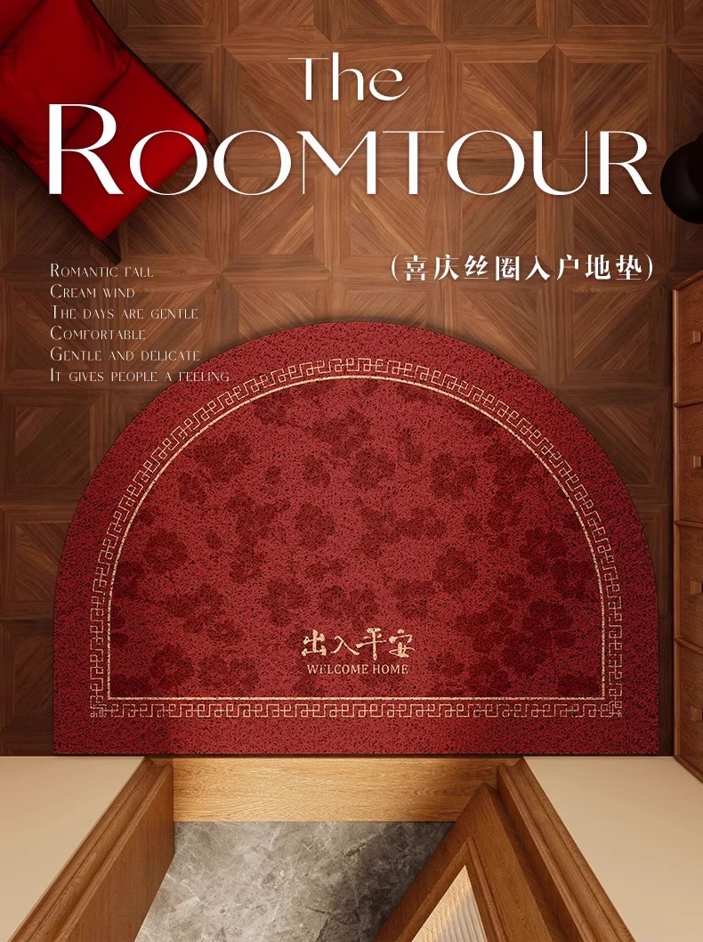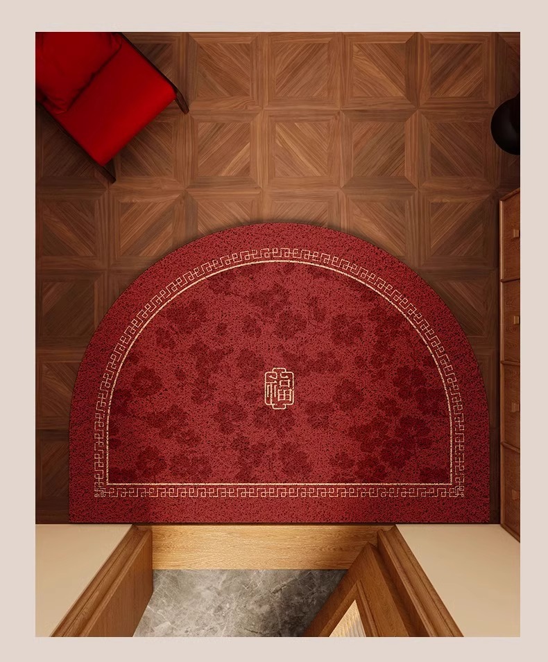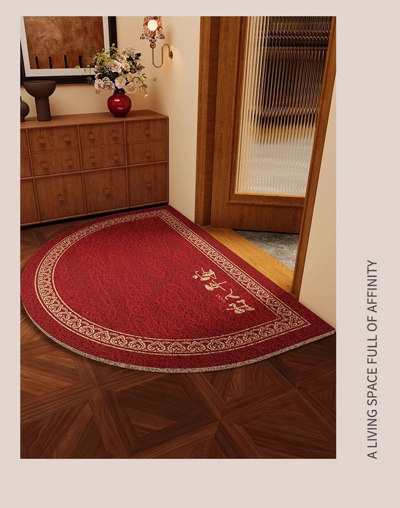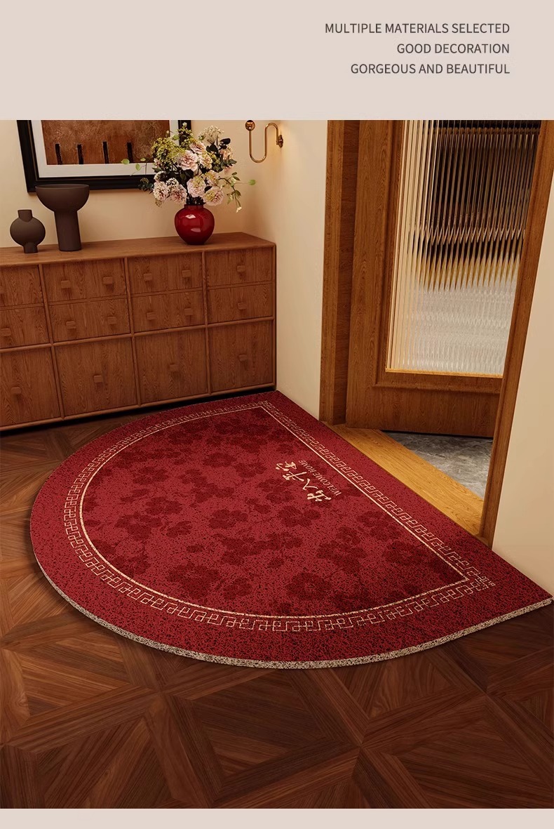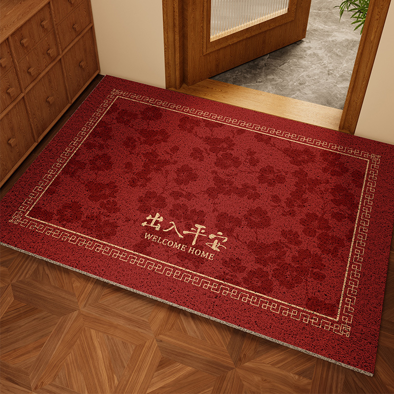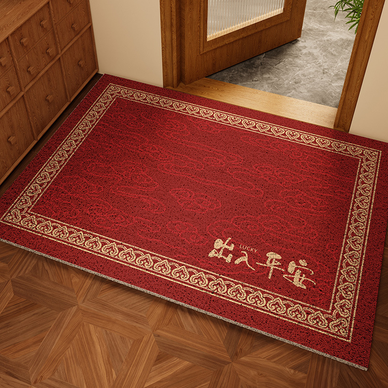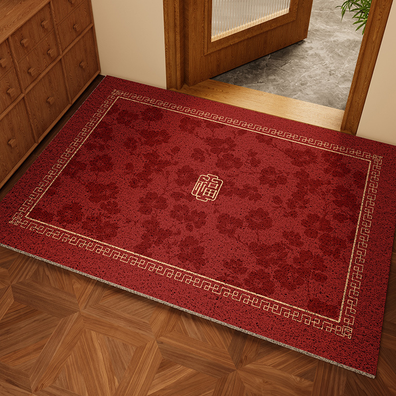 레드 카펫 새로운 중국 축제 도어 매트 먼지 방지 도어 가정용 절단기 쉬운 실크 링 풋 매트