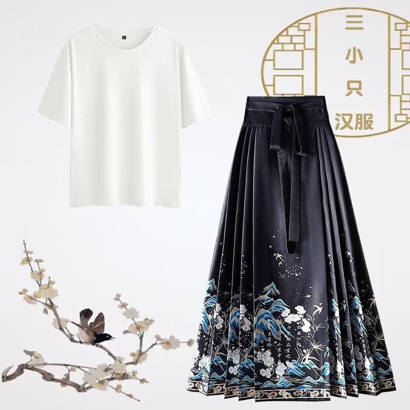 새로운 중국 스타일 국가 스타일 여성 2025 여름 새로운 한후 셔츠 톱 한 요소 스커트 투피스 세트스토어 가기