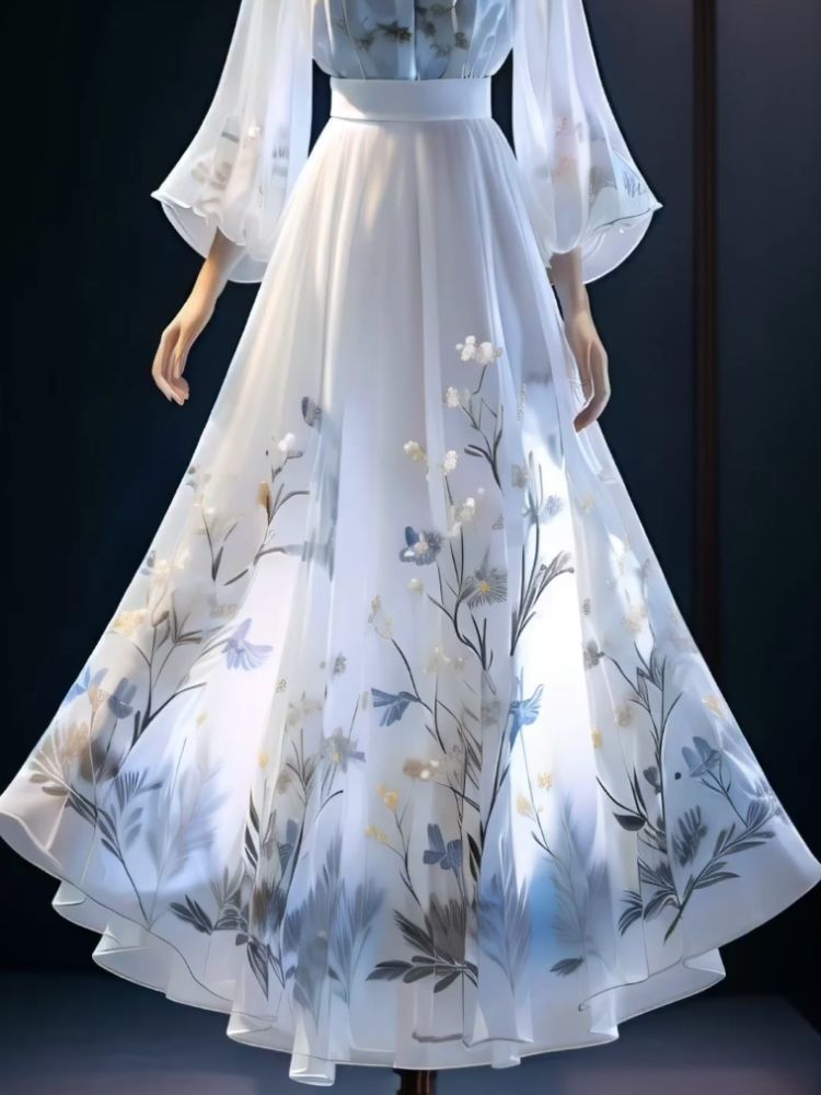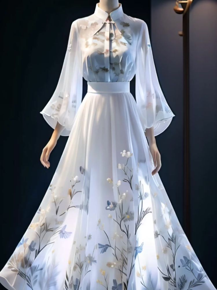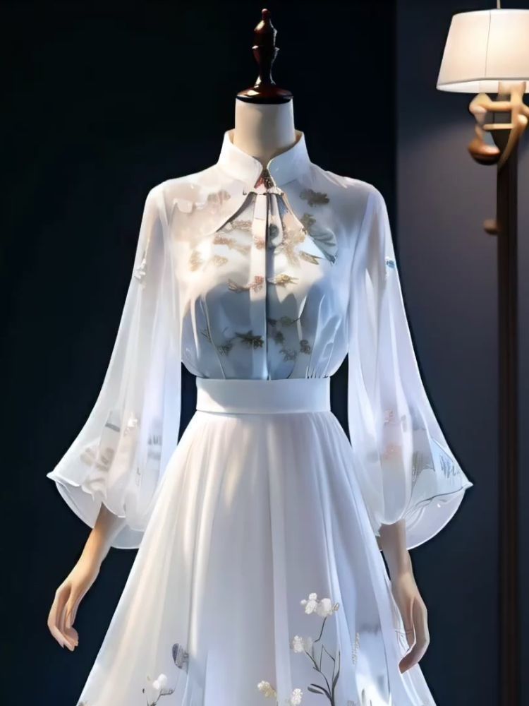 • 화이트 셔츠 + 중국풍 스커트 투피스 세트