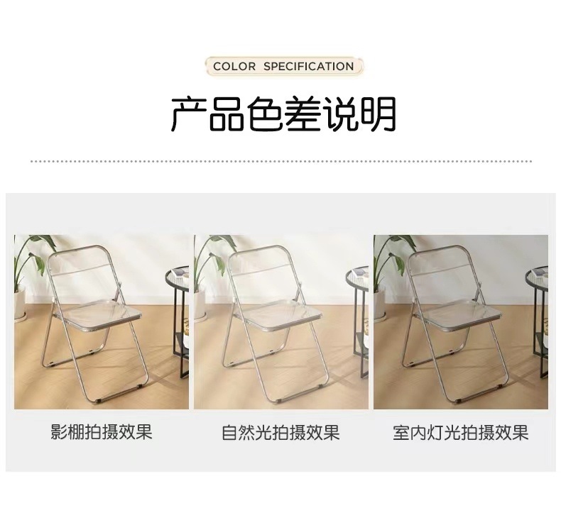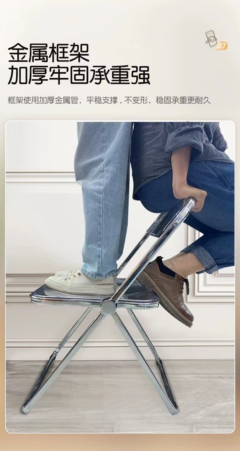 간단한 접이식 의자 인터넷 연예인 투명 아크릴 사진 의자 메이크업 다이닝 의자 크리스탈 등받이 의자스토어 가기